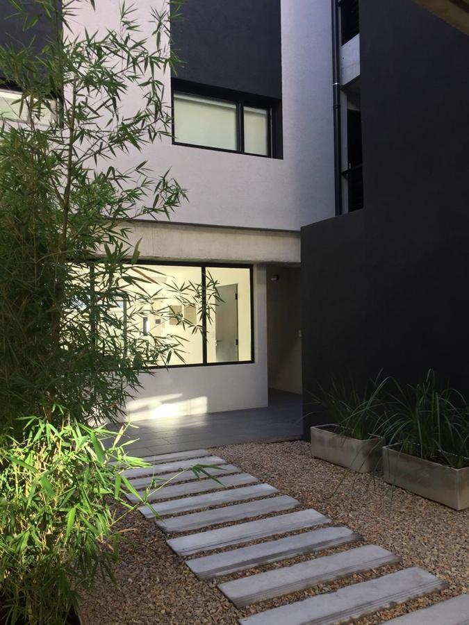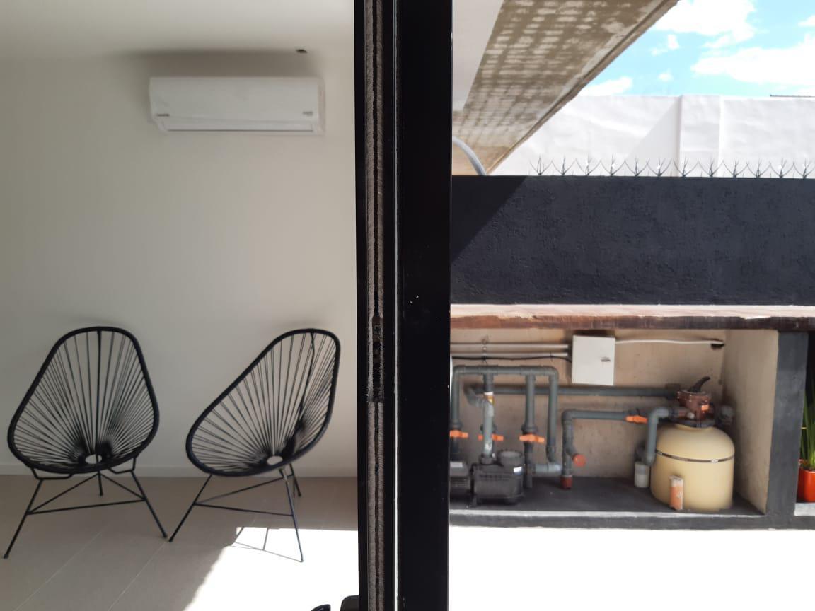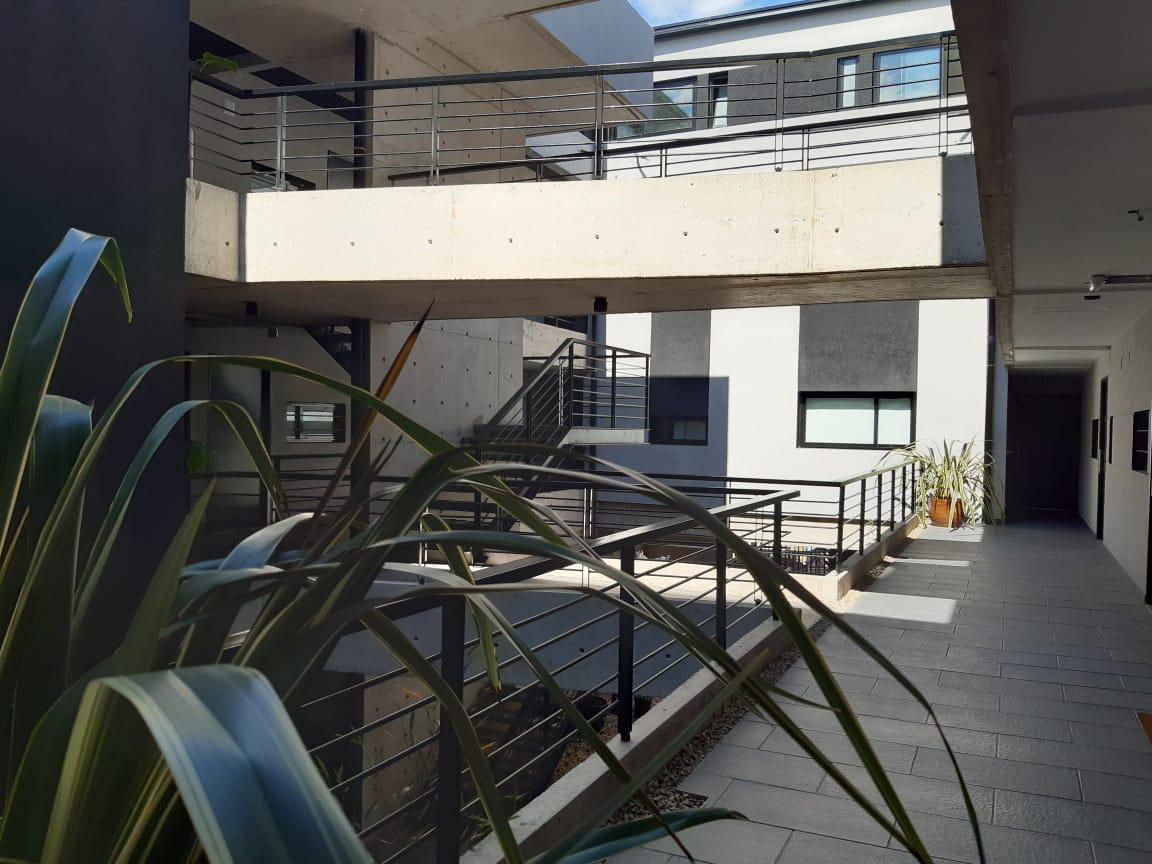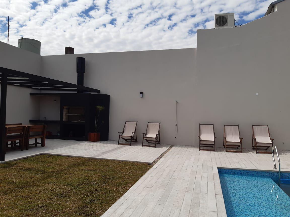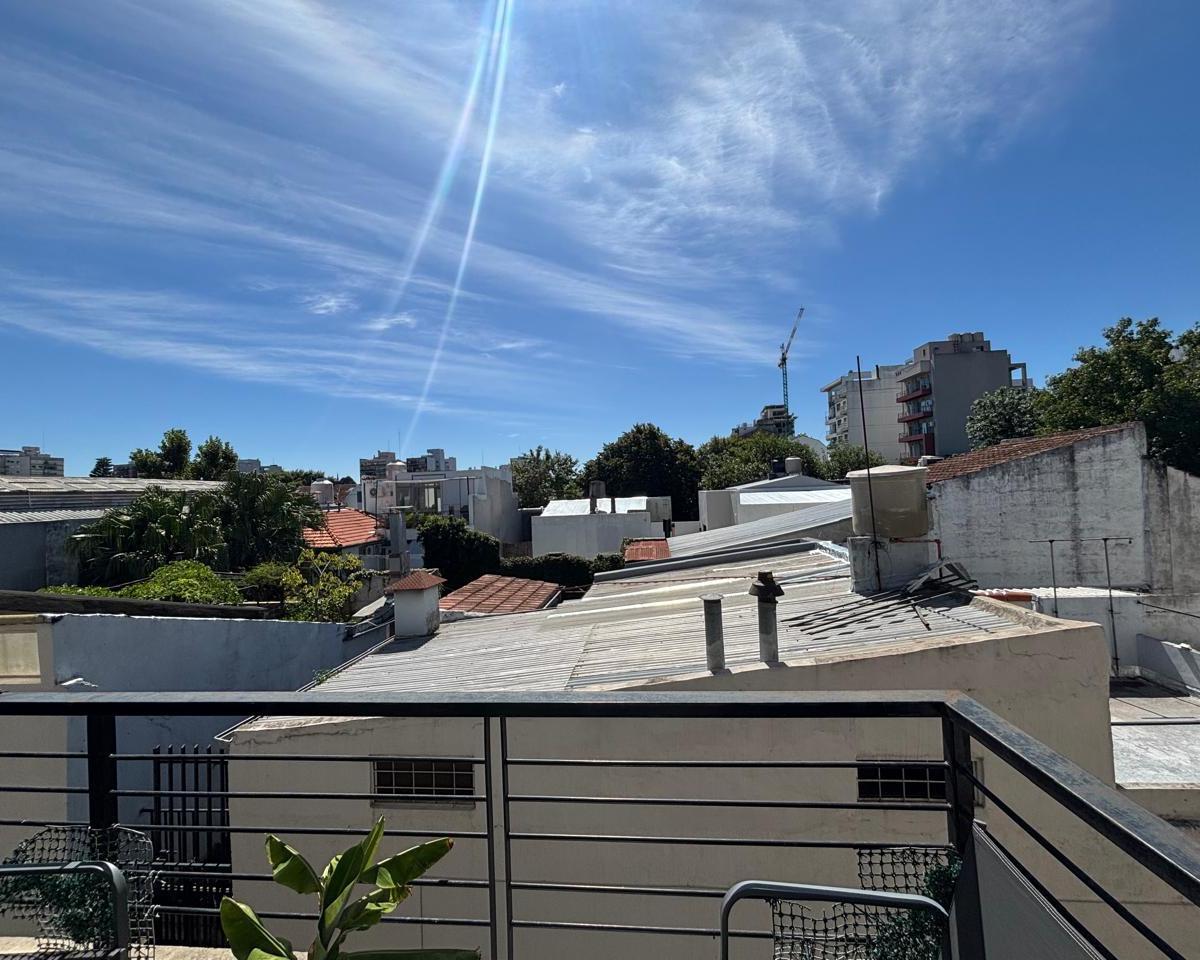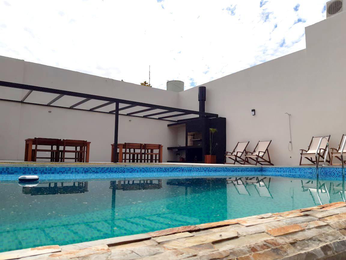 Apartamento duplex de 3 ambientes em Florida, com 2 dormitórios, sala e área de jantar, cozinha equipada e 2 banheiros completos. O complexo oferece piscina, SUM com envidraçamento e vista para o parque, área de churrasco, bicicletário, solarium e elevador. O texto menciona expensas baixas e segurança com câmeras e alarme perimetral.