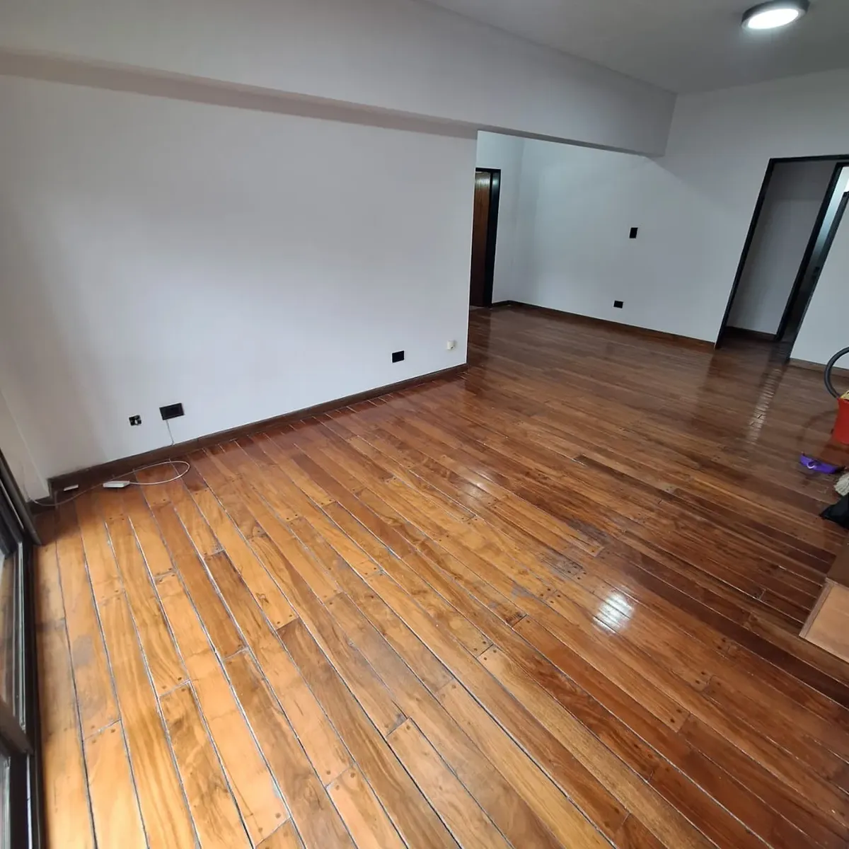 Apartamento de três ambientes com 90 m² cobertos, com 2 dormitórios com armários, um deles com ventilador de teto. Tem living com mesa de jantar e sala de estar com ar-condicionado e estufa, lavabo e cozinha com saída para varanda corrida. Inclui área de lavanderia e não tem condomínio (sem expensas).