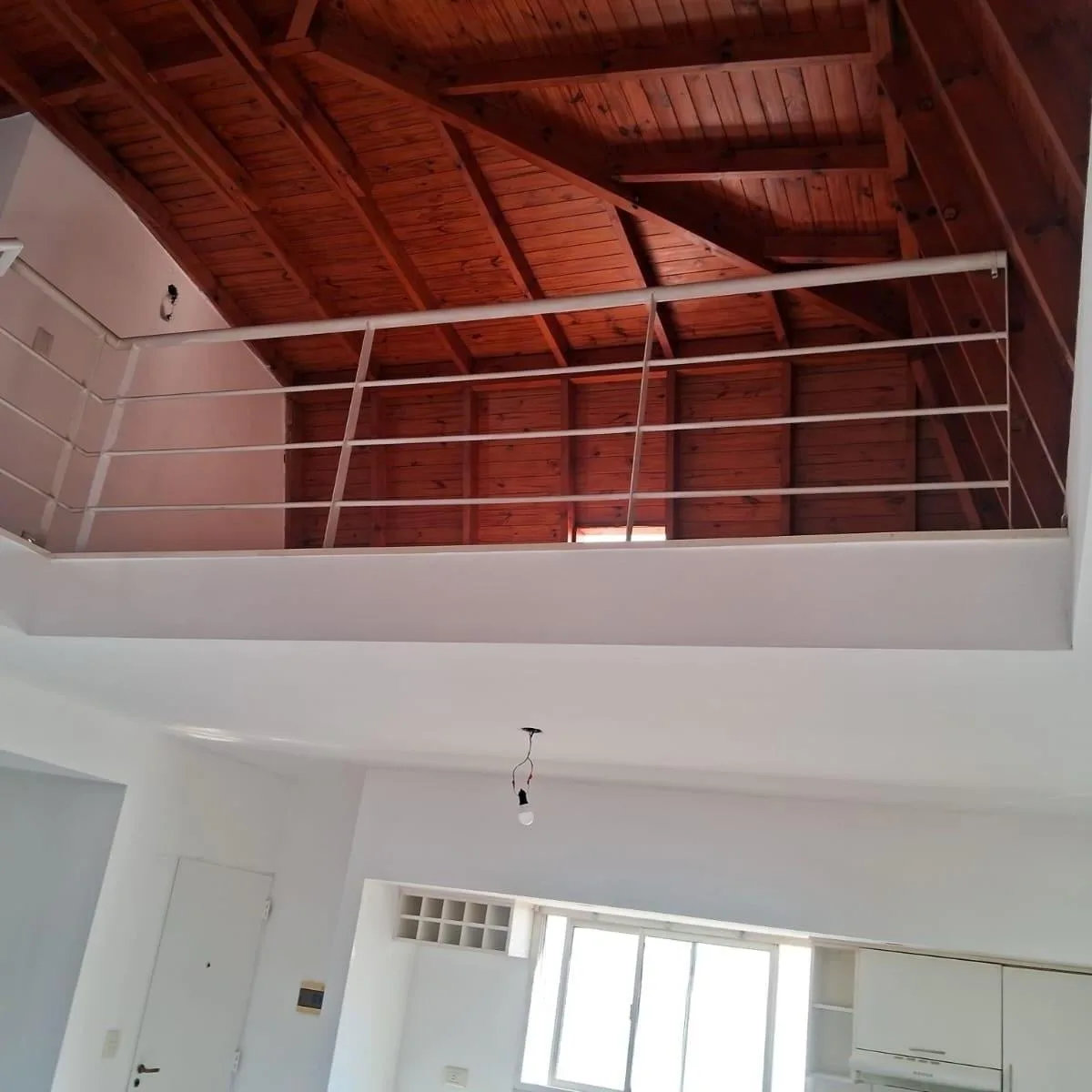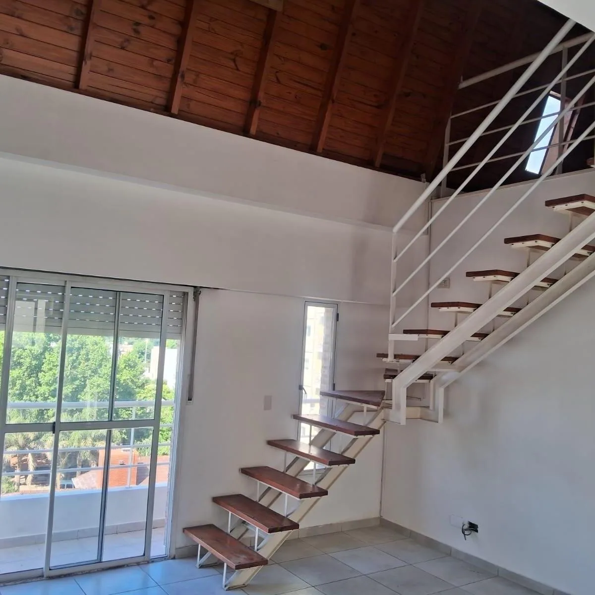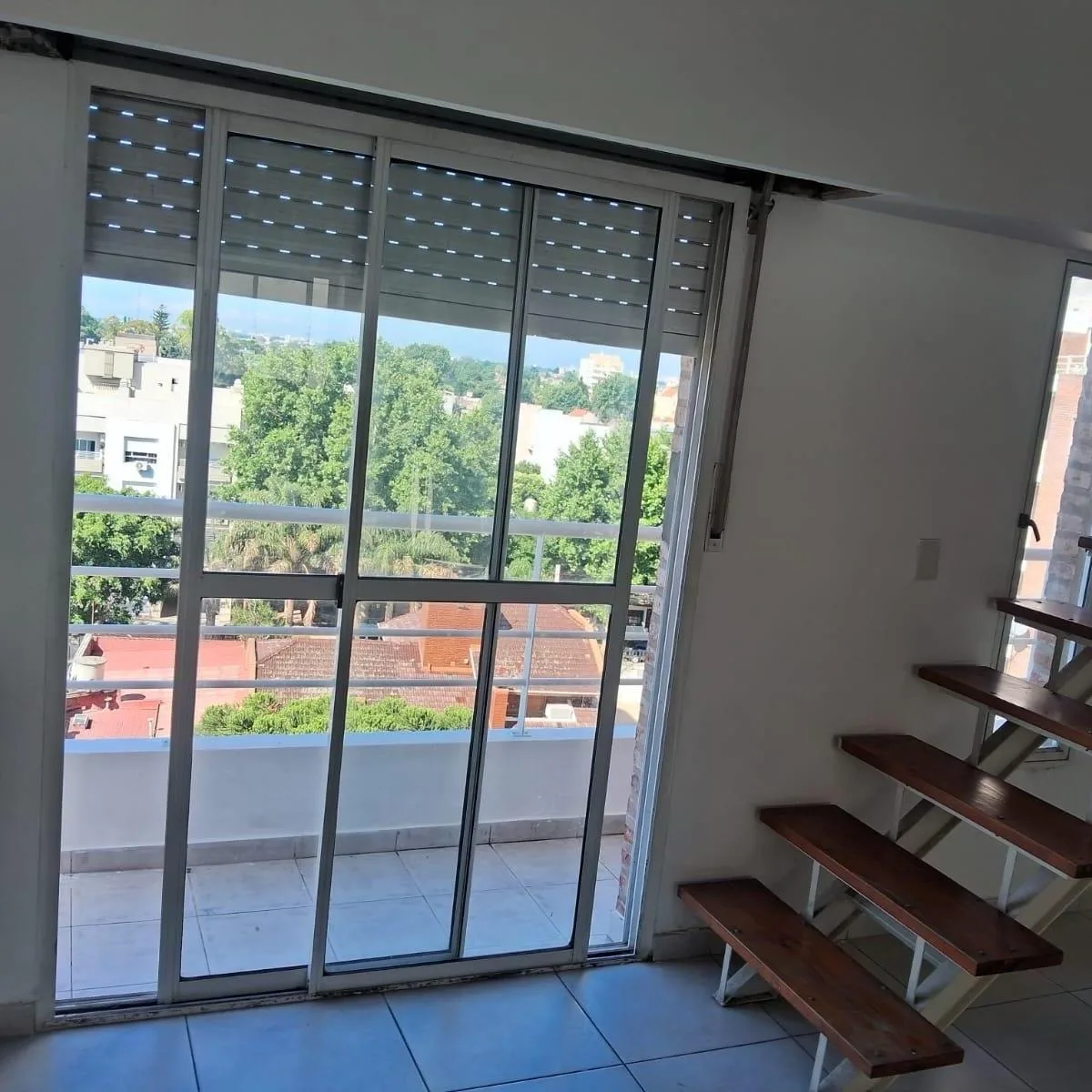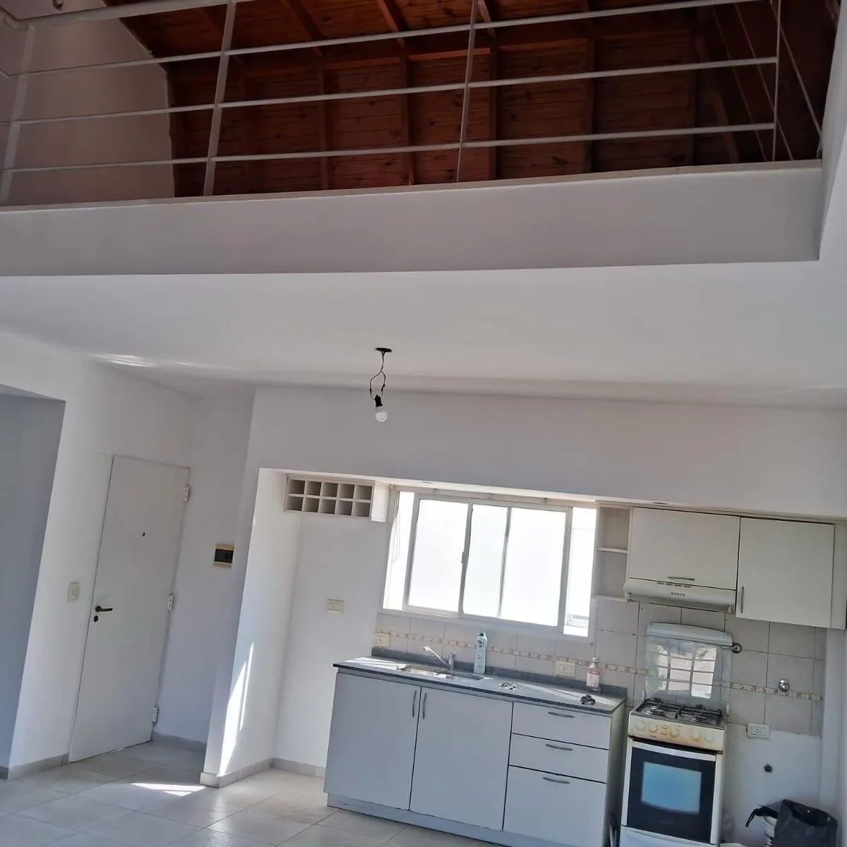Apartamento em estilo dúplex no 6º andar. A planta baixa reúne um ambiente com cozinha moderna e sala com grandes janelas; há vista panorâmica. No piso superior, o layout permite dividir o espaço em dormitório principal e área de trabalho. Há 1 banheiro e acabamentos com pisos de cerâmica ou laminados.
