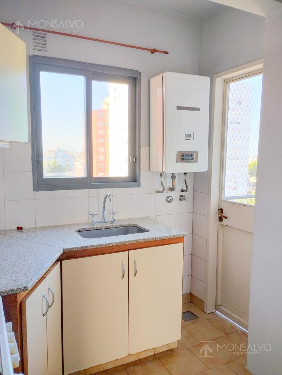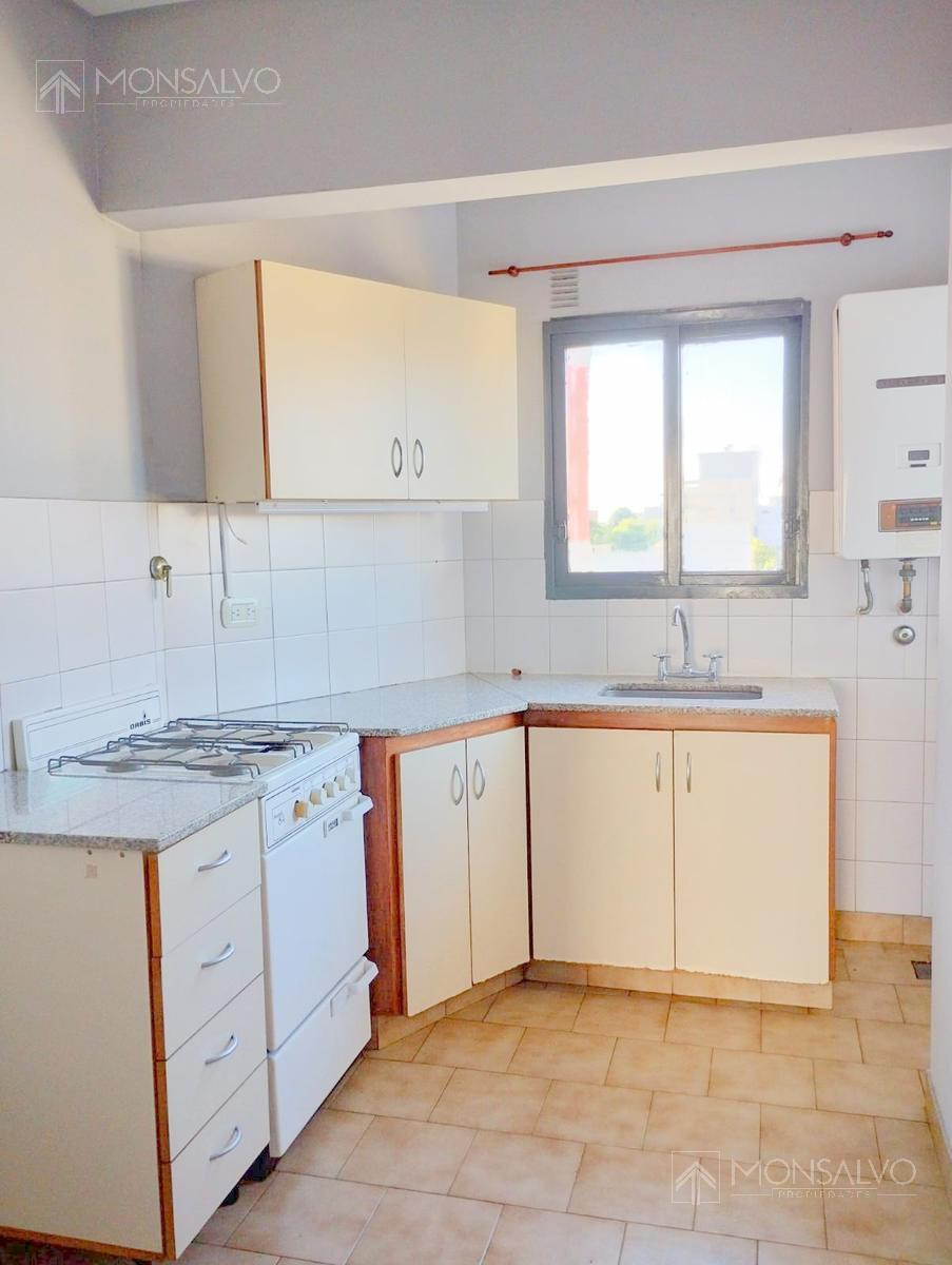 Apartamento para alugar no centro de General San Martín, com vaga de garagem. A unidade tem sala de jantar com varanda contínua voltada para a rua, cozinha completa independente e uma segunda varanda com área de lavanderia. Possui 1 banheiro completo e 2 dormitórios com armários embutidos. Não são aceitos animais de estimação. Disponível a partir de junho de 2026.