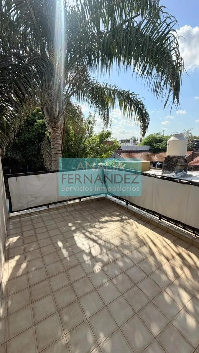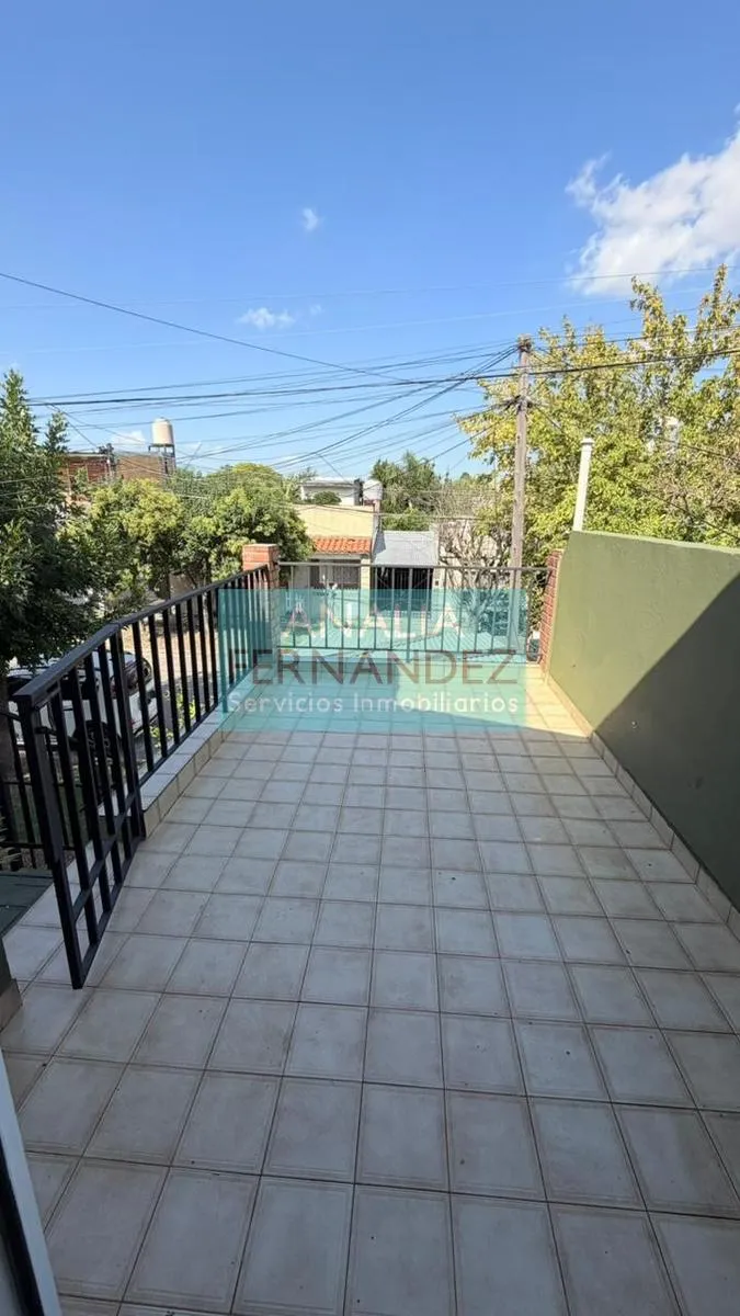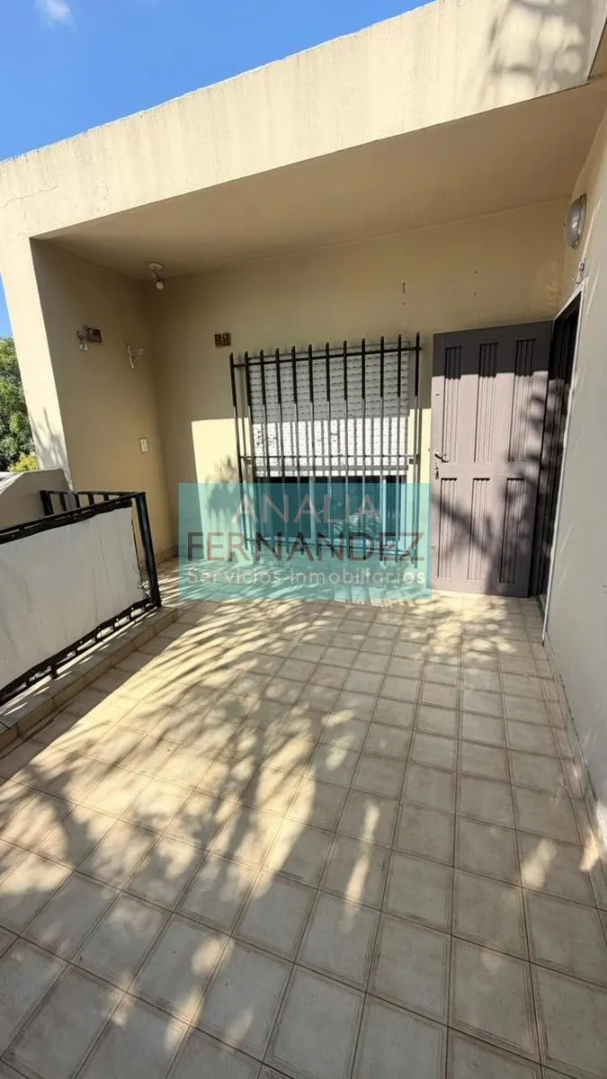 Apartamento no primeiro andar, com acesso por escada, em Hurlingham. Sala de estar e jantar com piso de cerâmica e cozinha integrada para refeições, com bancada e armários inferiores de madeira. Dispõe de 2 dormitórios com armários embutidos, 1 banheiro completo e área de serviço (lavadero). Varanda de frente para a rua e varanda de fundos.