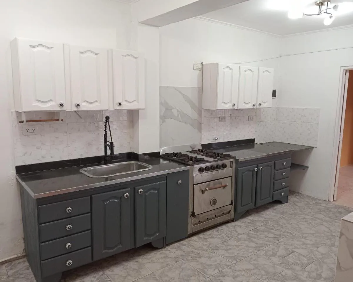 Casa de três ambientes em Villa Tesei, Hurlingham, sobre a rua N. Waksman, com 2 quartos e pátio. A unidade tem sala de estar e jantar, cozinha semi-integrada com móveis sob a bancada, armários superiores, área de cozinha e barra para café da manhã, além de área de lavanderia interna. Há 1 banheiro completo com banheira e vanitory, e vaga de garagem. O aluguel mensal é de $1.000.000, incluindo serviços (luz, água, gás e municipal). Contrato de 2 anos com reajustes trimestrais; exige comprovação