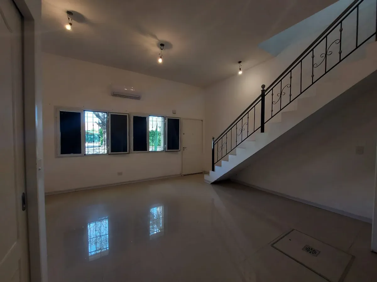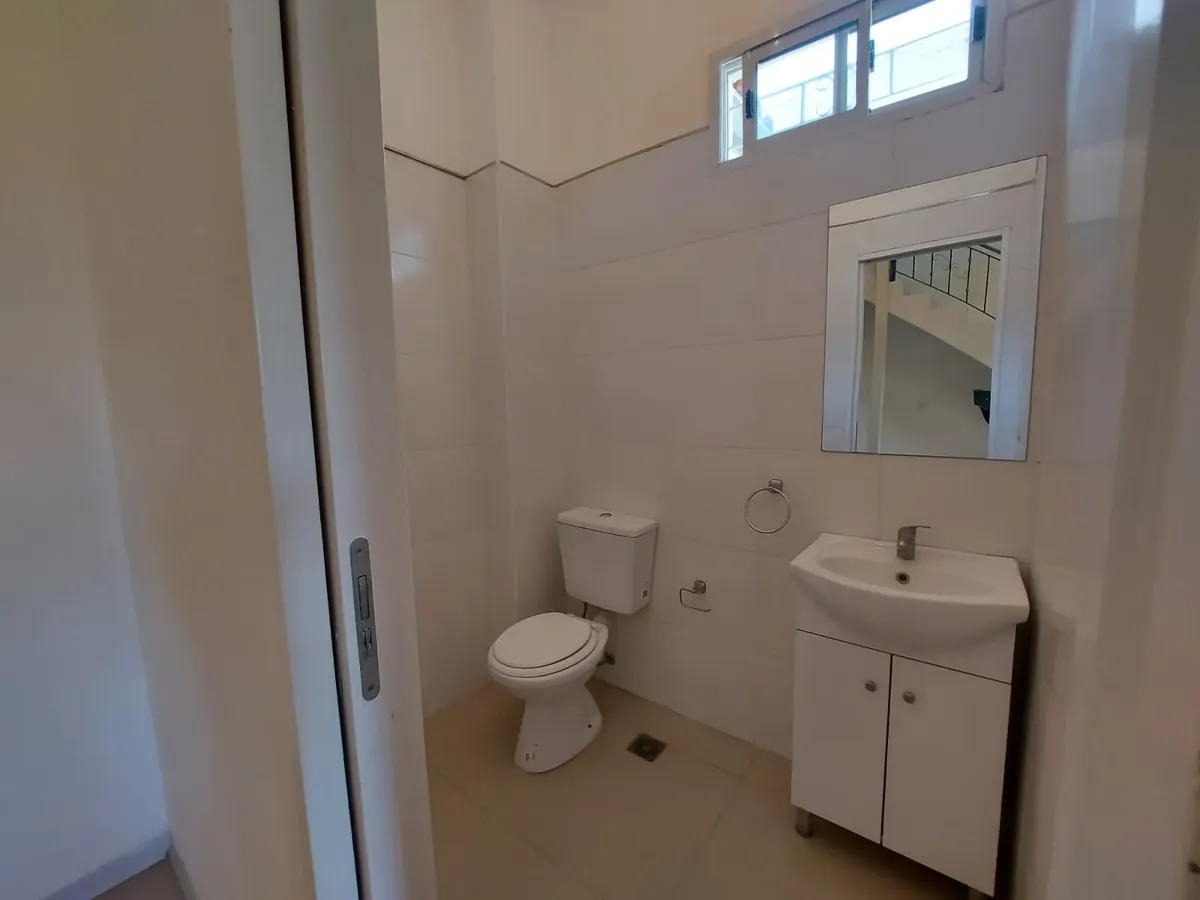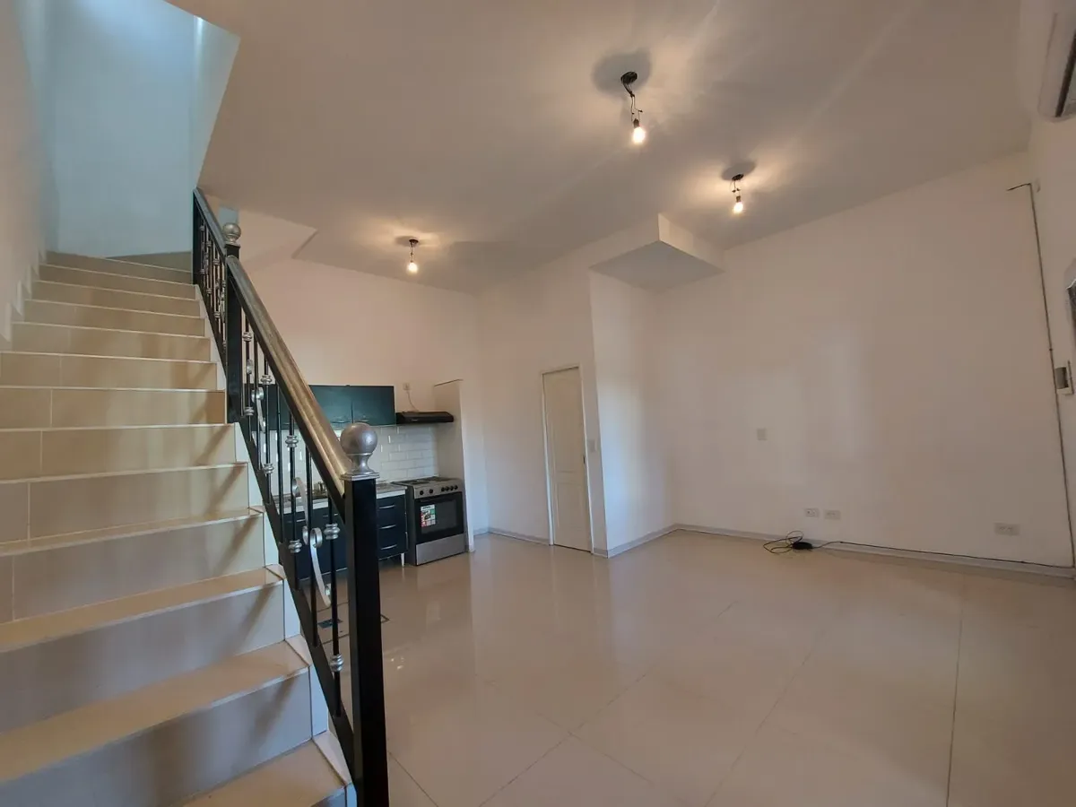 Dúplex de 3 ambientes em Barrio Inglés, novo (nunca habitado), com 2 dormitórios. Na planta baixa há cozinha com área de refeições, piso de porcelanato, ar-condicionado frio/calor, conexão para máquina de lavar e um lavabo. Na planta alta há banheiro completo com antebanheiro e 2 dormitórios com armários embutidos; o dormitório principal tem closet e ar-condicionado frio. Unidade 100% elétrica, com vaga de garagem na frente e acesso a porão para armazenamento. Máximo de 3 pessoas; aceita animal