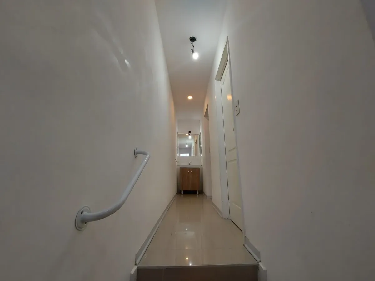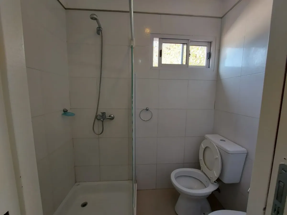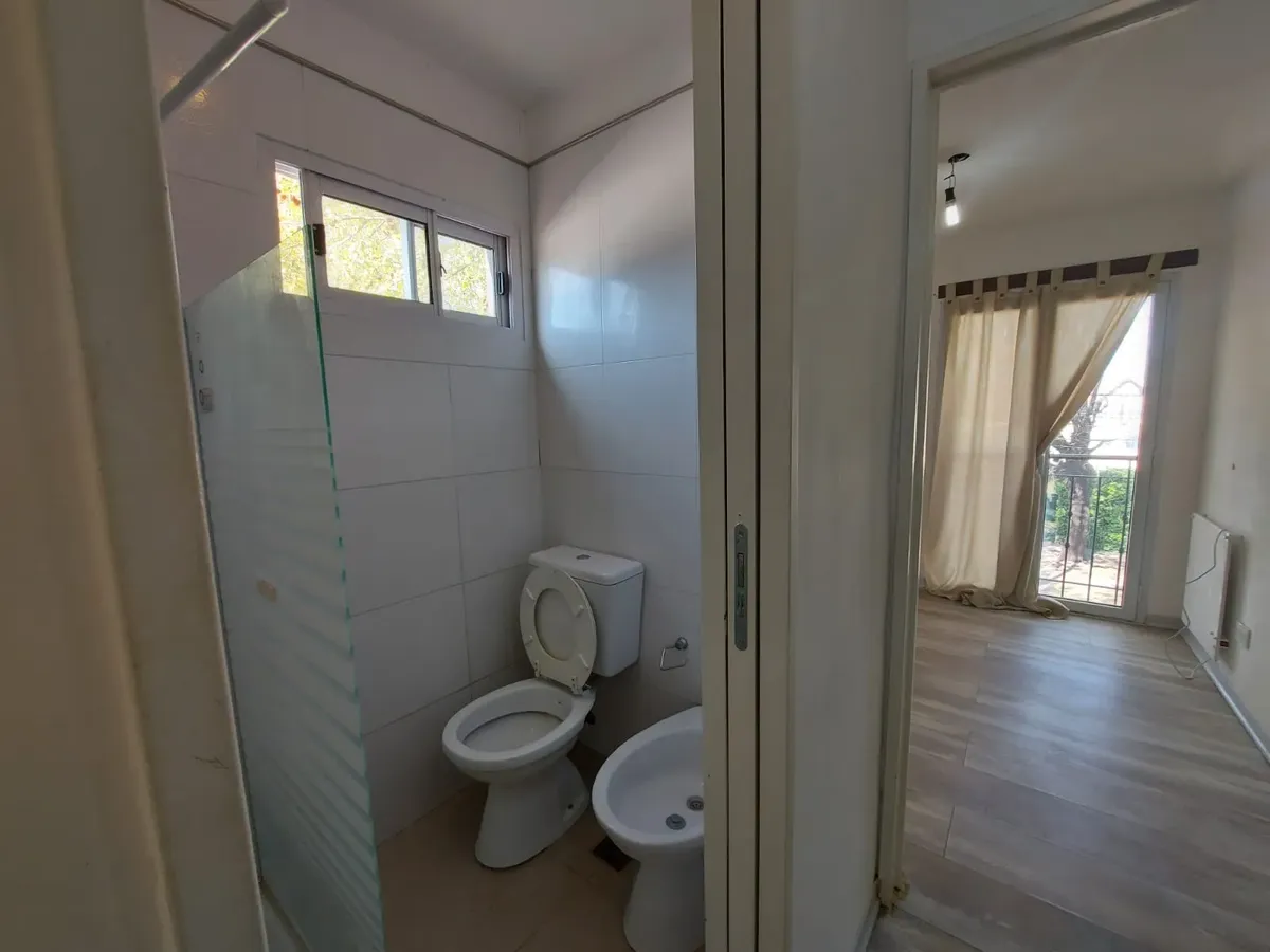 Dúplex de 3 ambientes em Barrio Inglés, novo (nunca habitado), com 2 dormitórios. Na planta baixa há cozinha com área de refeições, piso de porcelanato, ar-condicionado frio/calor, conexão para máquina de lavar e um lavabo. Na planta alta há banheiro completo com antebanheiro e 2 dormitórios com armários embutidos; o dormitório principal tem closet e ar-condicionado frio. Unidade 100% elétrica, com vaga de garagem na frente e acesso a porão para armazenamento. Máximo de 3 pessoas; aceita animal