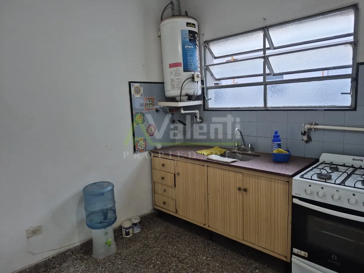 Apartamento de 3 ambientes no primeiro andar por escada. Sala de estar e jantar com acesso a varanda contínua, cozinha independente com armários na parte inferior e hall de distribuição que leva a 1 banheiro completo e 2 dormitórios sem armários embutidos. Na cobertura há área coberta com conexão para máquina de lavar. Não aceita animais. Fica na Av. Vergara, em área comercial central de Hurlingham.