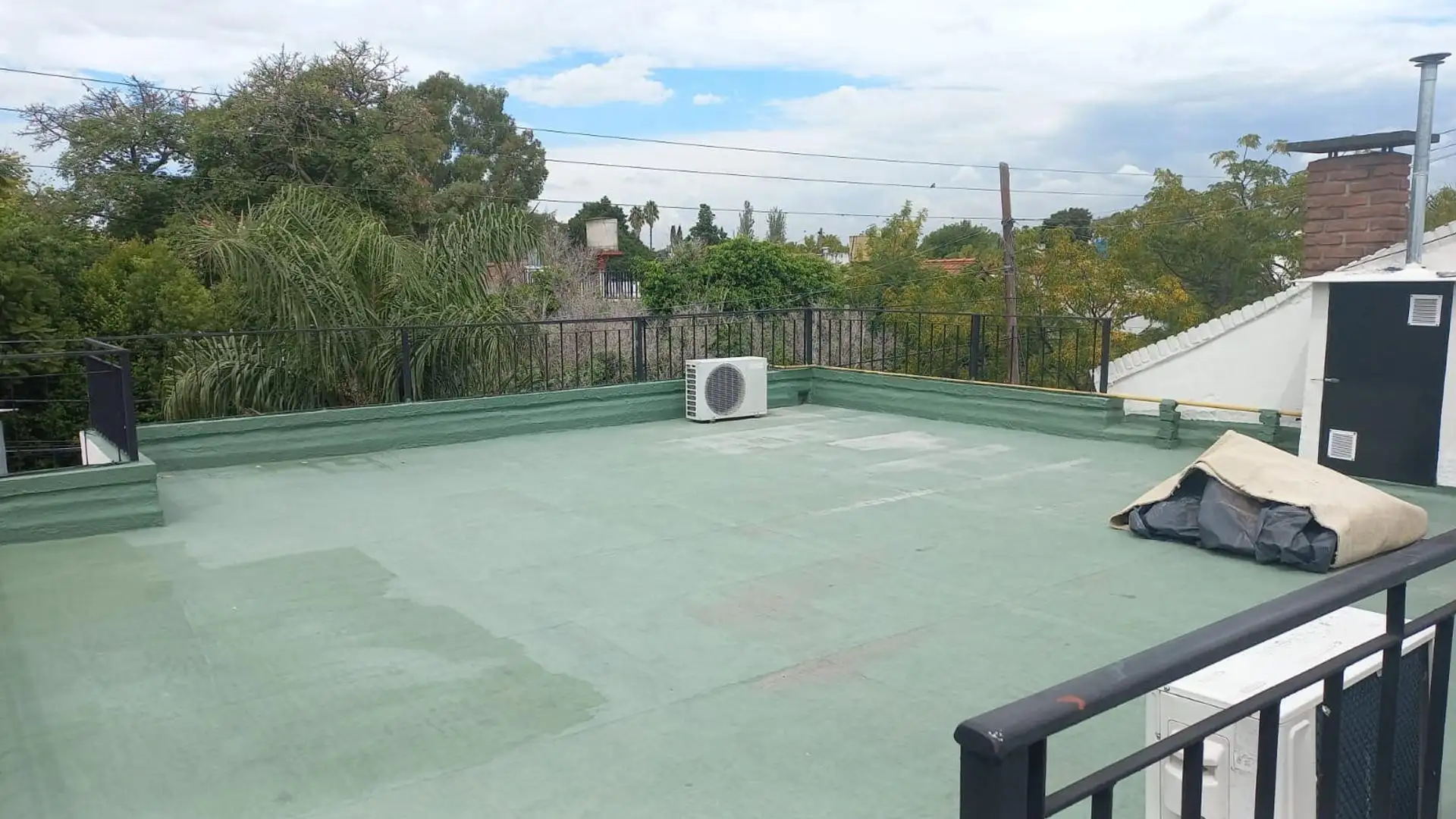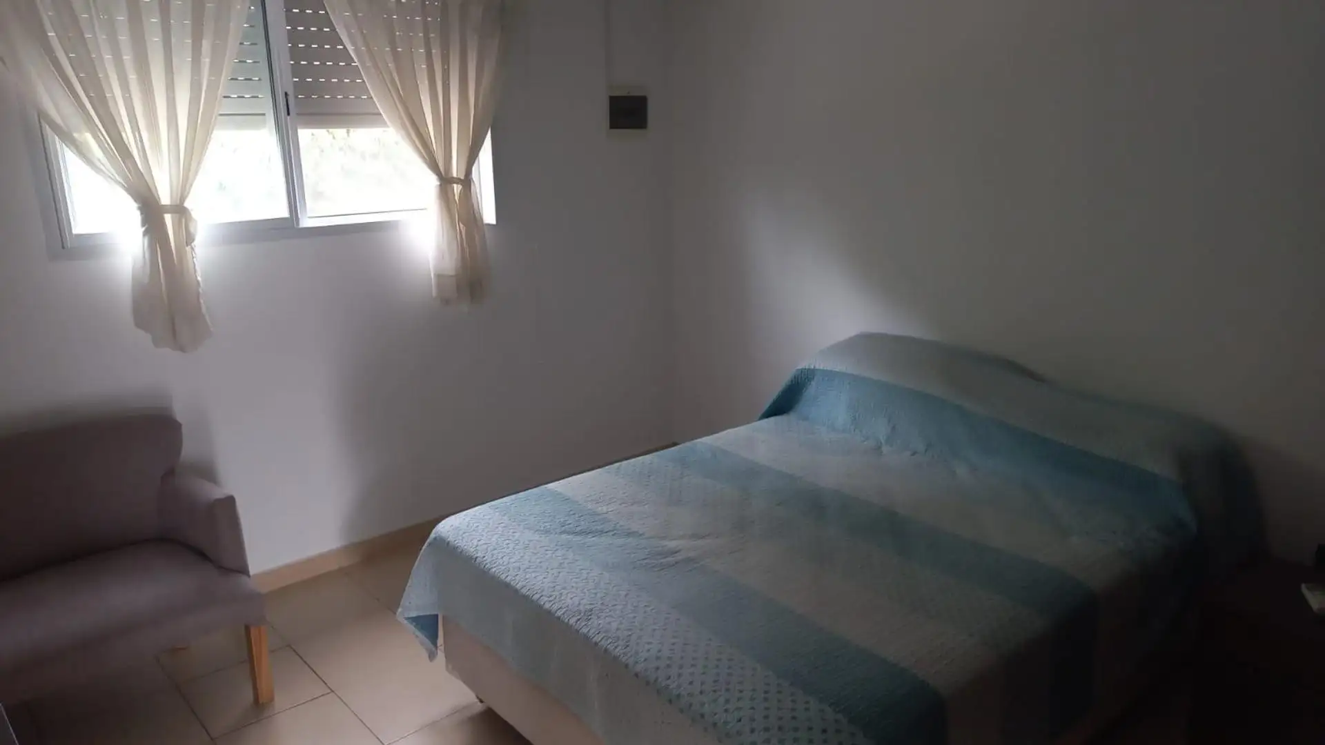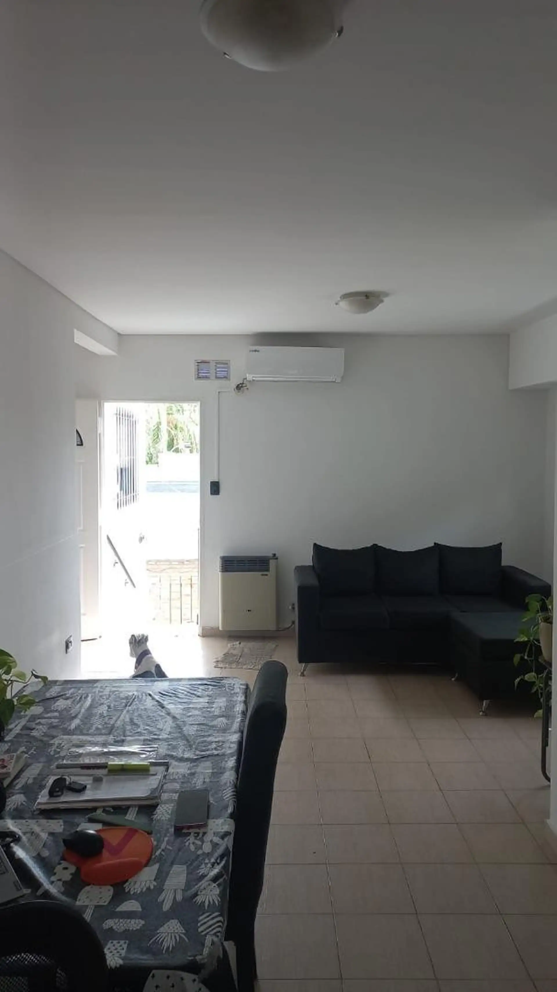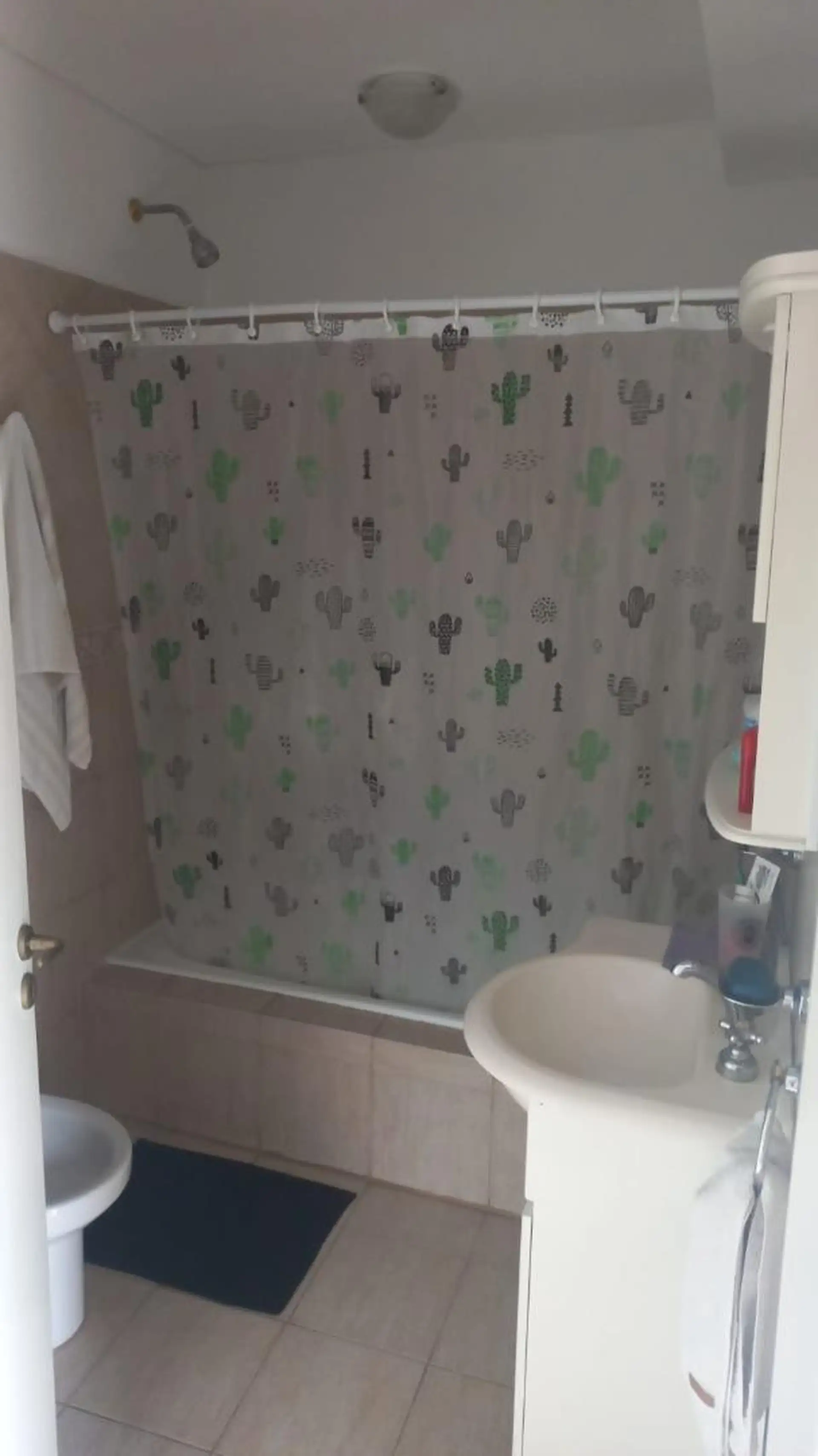 Apartamento tipo kitnet com living, 2 dormitórios com armários embutidos (ambos), banheiro com vaso sanitário, bidê, ducha e lavatório de pé. Cozinha com área de refeições, armário inferior e três estufas, além de 2 ventiladores de teto. Terraço. O anúncio menciona ar-condicionado de 3500 frigorias e água por bomba. Disponibilidade: entrada em 1 de maio de 2026. Requer fiança/garantia própria e comprovação de renda, além de recibos de salário (mínimo 2 anos de antigüidade). Aceita apenas 1 pet p