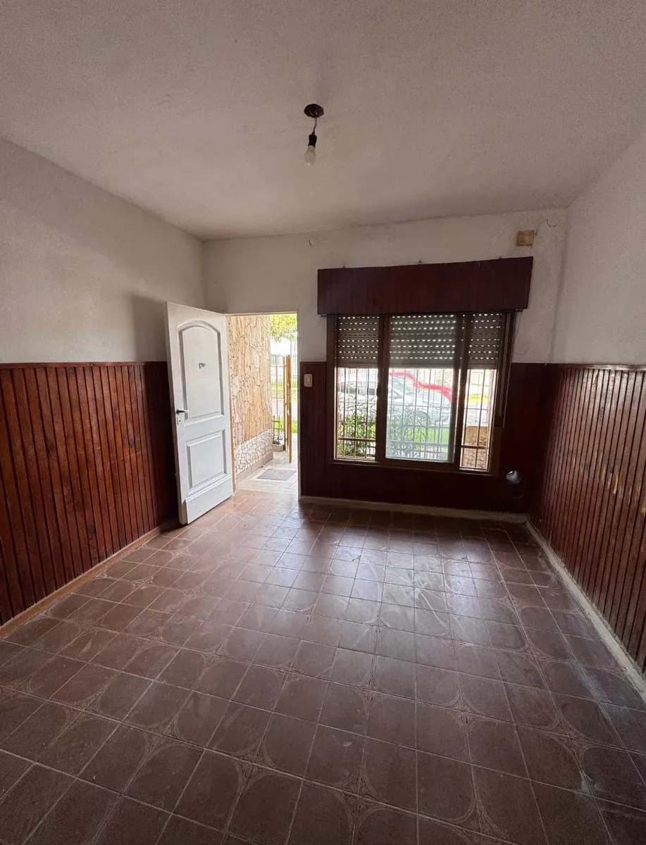 Casa com 3 ambientes e pequeno jardim na frente, em Villa Tesei, Hurlingham. O imóvel tem entrada para sala de estar e jantar, cozinha, 1 banheiro completo, 2 dormitórios e saída para pátio com área de lavanderia e toilette.