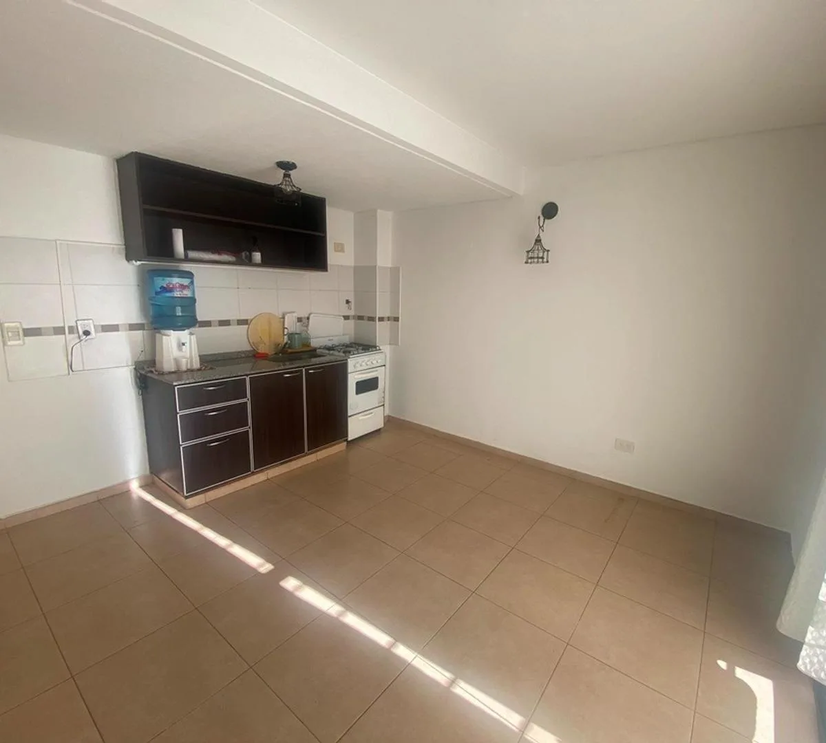 Duplex de 3 ambientes em Ituzaingó. No piso térreo: sala com vista para a rua, cozinha com área de refeições, lavabo de recepção e depósito. No andar superior: 2 dormitórios com armários e 1 banheiro completo. Há vaga de garagem para 1 carro, jardim individual e área de lavanderia externa. O aluguel é mediante fiança de aluguel (caución) pela Finaer. Serviços informados: eletricidade, pavimentação, rede de esgoto, gás e água corrente.