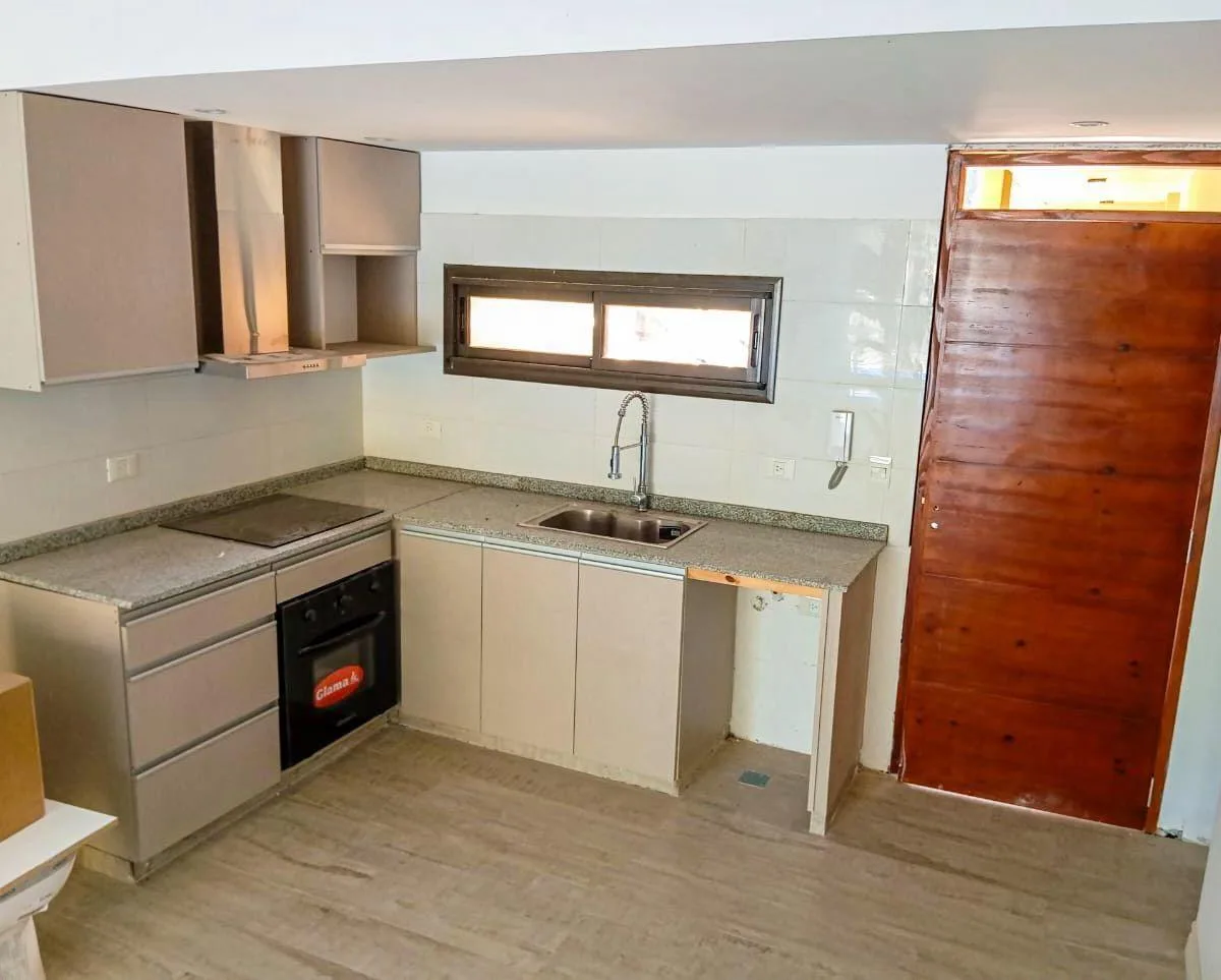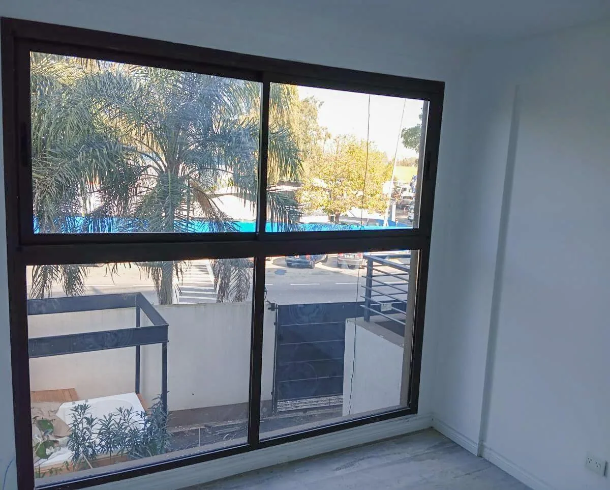 Apartamento de 3 ambientes novo (nunca habitado) em Vista Leloir, com 2 quartos, sendo 1 suíte com closet. Possui living e área de jantar com cozinha integrada, 2 banheiros completos e varanda voltada para o acesso. O condomínio inclui balcão-terrace com churrasqueira, piscina, salão de festas, lavanderia e elevador, com opção de vaga de garagem. O aluguel menciona opção de compra com entrada e parcelas.