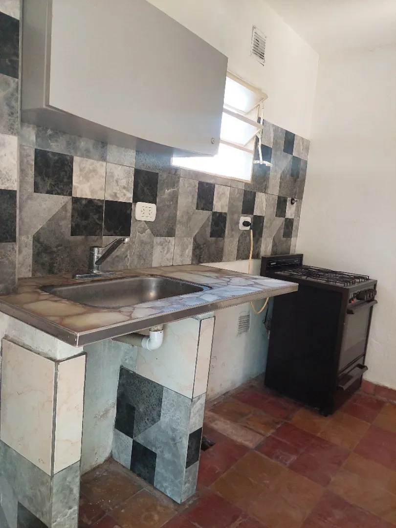 Casa para alugar em Villa Udaondo, Ituzaingó. Possui 2 dormitórios, sala de jantar, cozinha com móveis sob a bancada e armário superior, pátio frontal e galeria. Tem alarme. Fica a 1 quadra da Av. Martin Fierro e a algumas quadras da Autopista Del Buen Ayre. Não aceita animais.