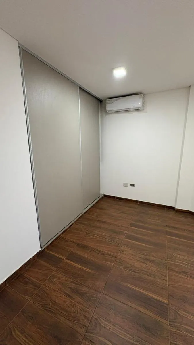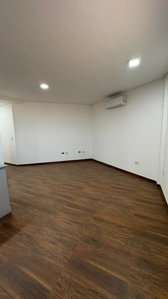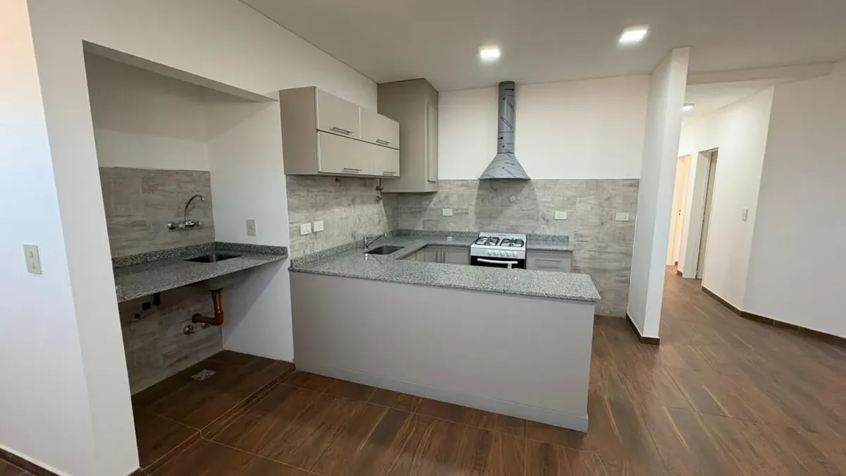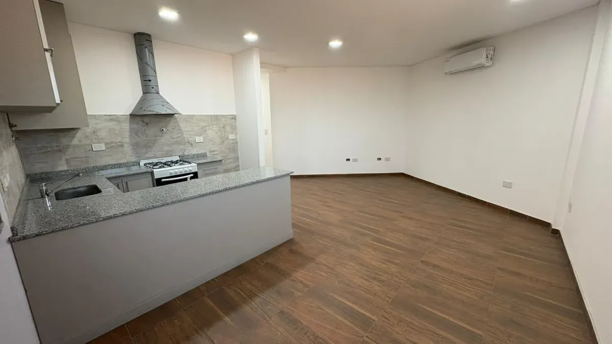 Apartamento de três ambientes para aluguel em Ituzaingó, no 1º andar por escada, unidade sem mobília. Possui living com cozinha integrada e barra para café da manhã, móveis planejados na área da cozinha, coifa/extrator de ar, um dormitório com armário e espaço de guarda. Há lavabo de recepção, banheiro completo e área de serviço (lavanderia). Unidade nova (nunca habitada), com ar-condicionado, luminárias e cortinas blackout instaladas. Fica na interseção das ruas Parral e Cuyo.