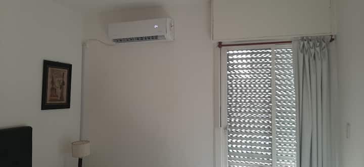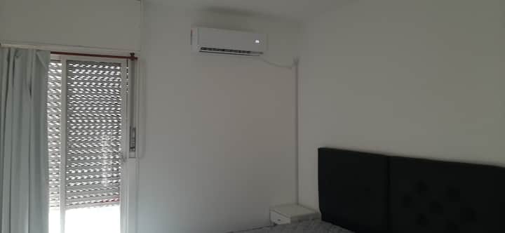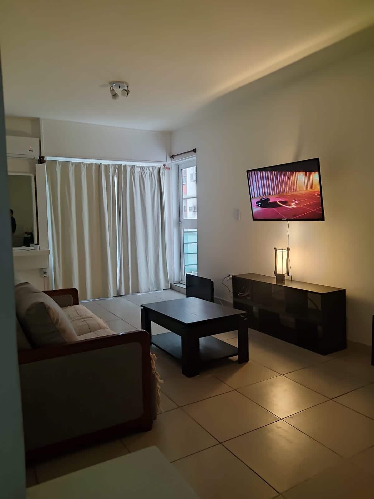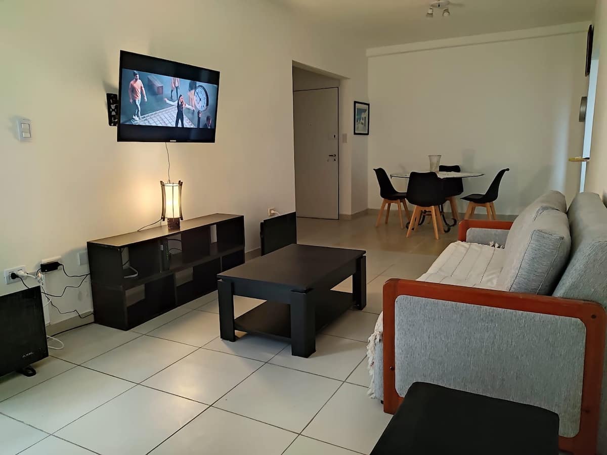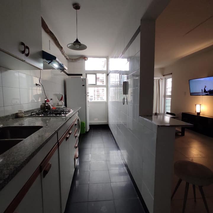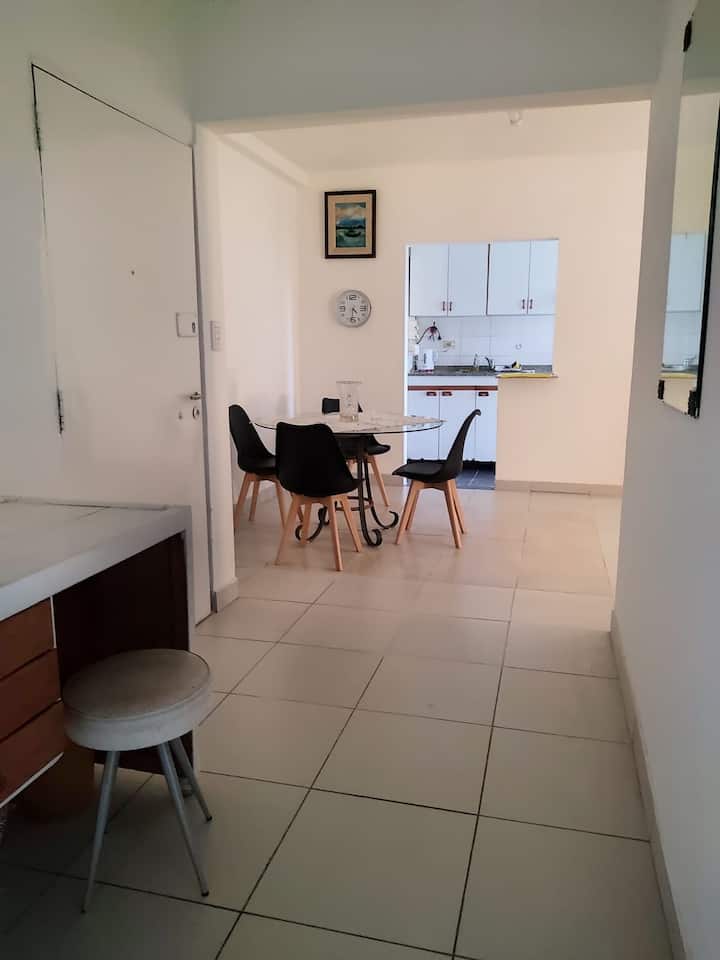 Apartamento reformado, com 75 m². Possui 2 quartos, sala de jantar e cozinha equipada com geladeira, cafeteira, liquidificador e chaleira elétrica. Inclui banheiro completo e TV inteligente com Netflix, além de área com Wi-Fi gratuito e varanda.