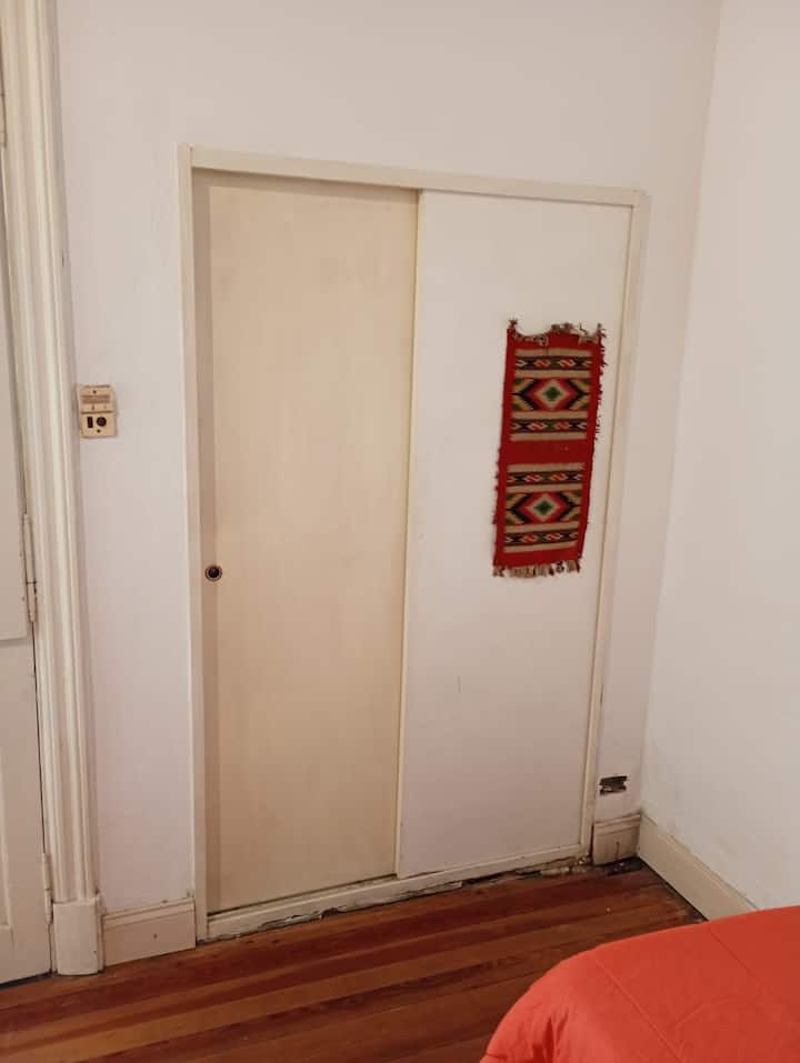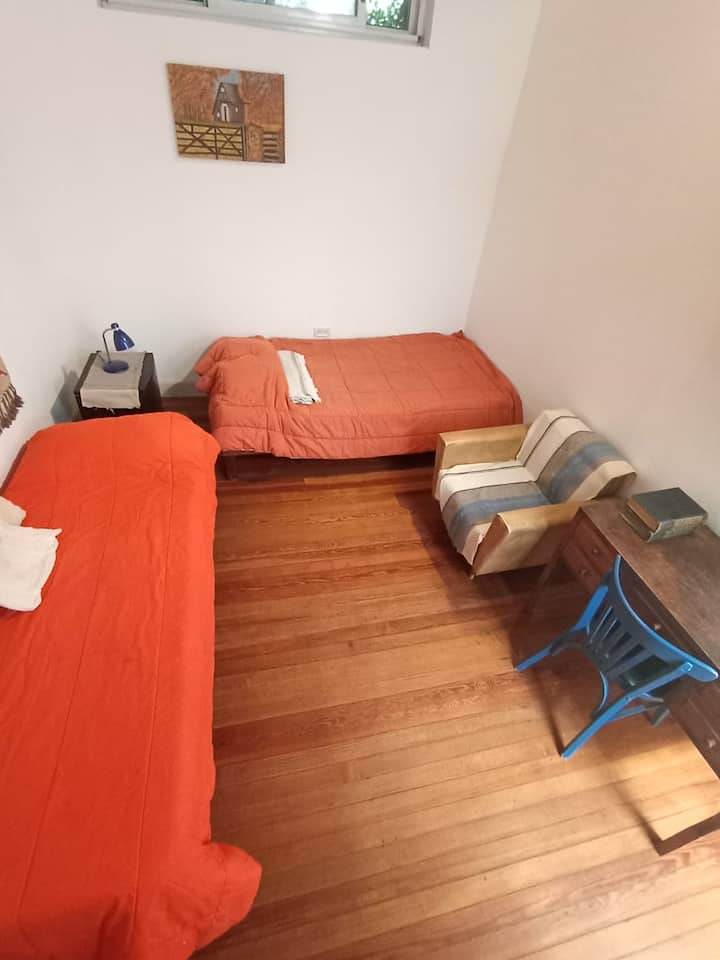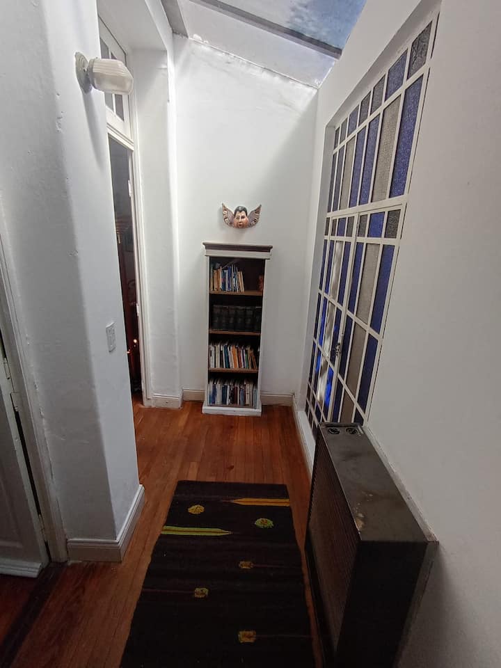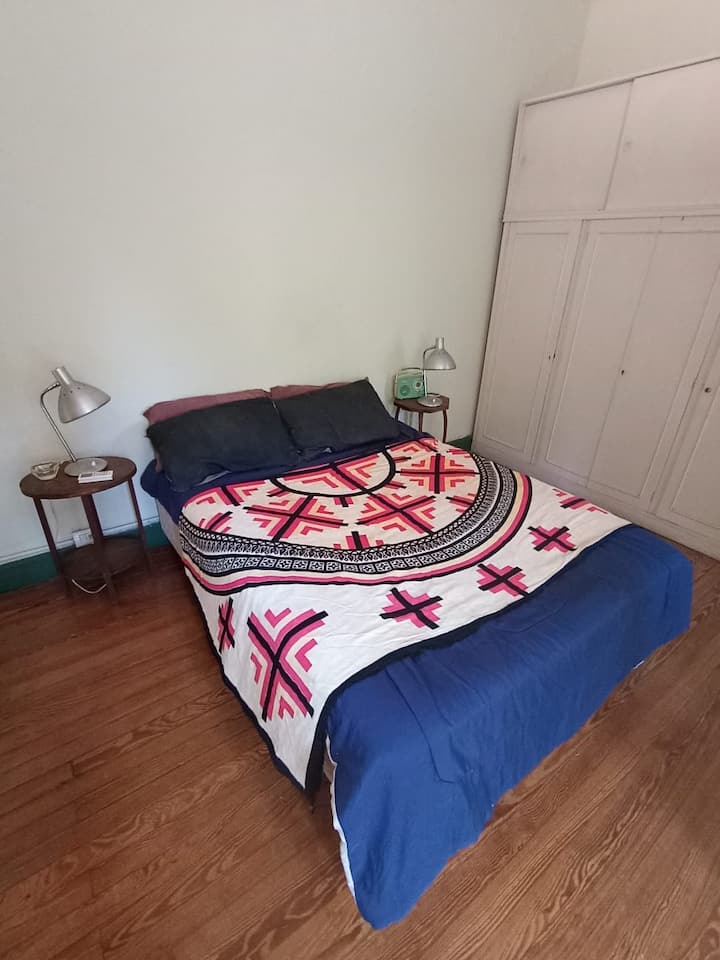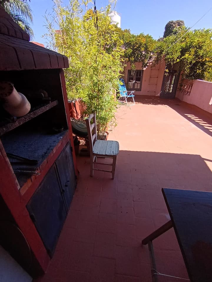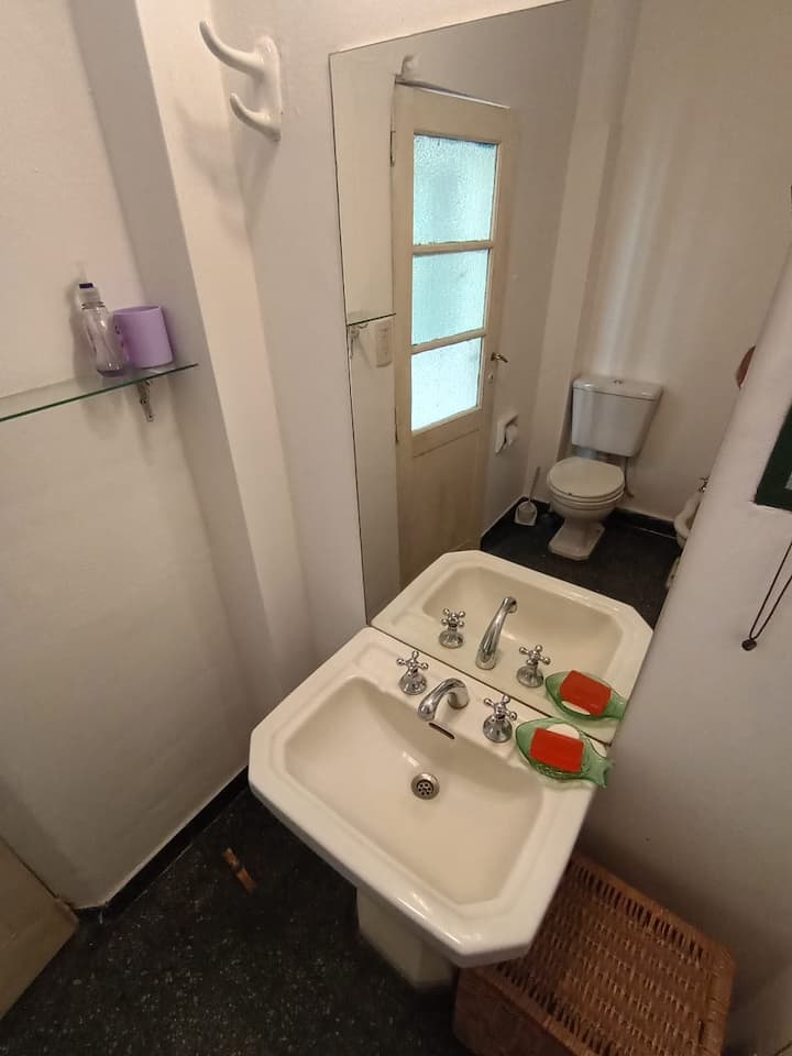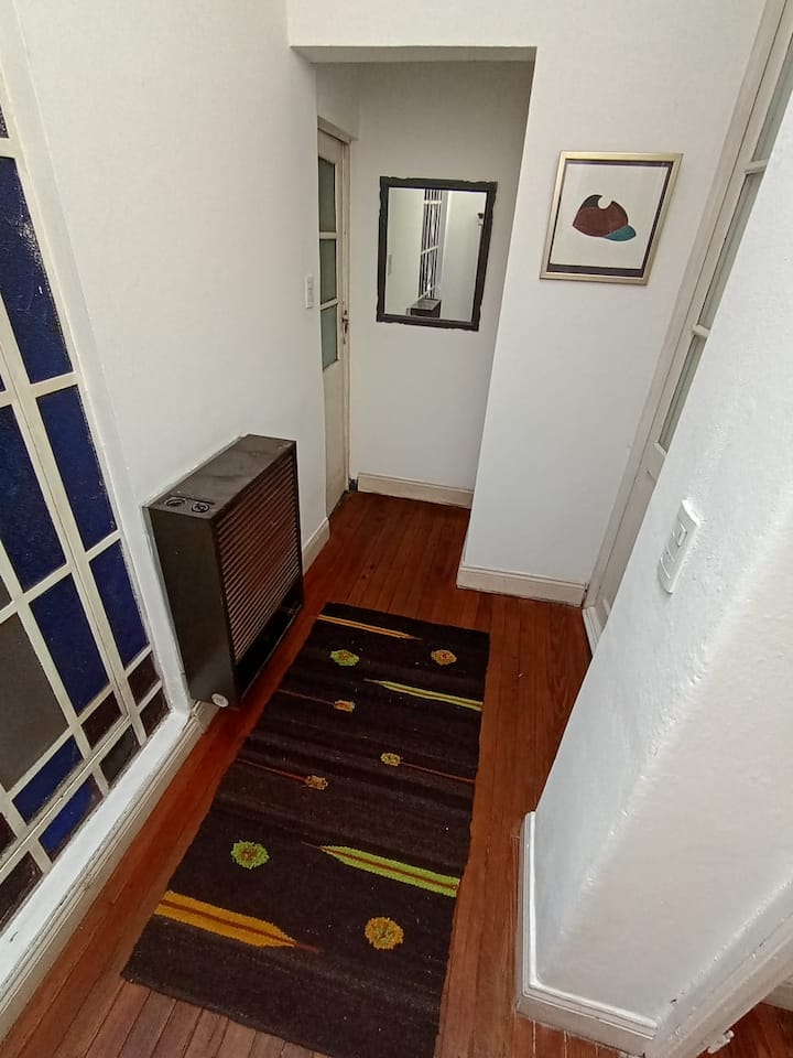 Apartamento em La Paternal, em Buenos Aires. O anúncio descreve o imóvel como adequado para estadias em grupo e para ocasiões familiares e com amigos.