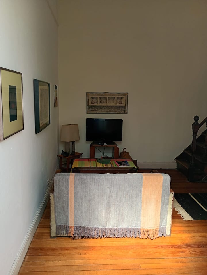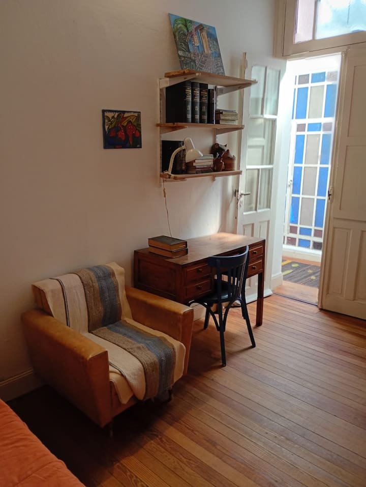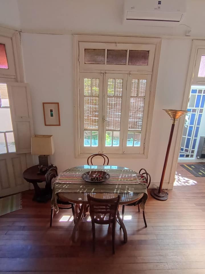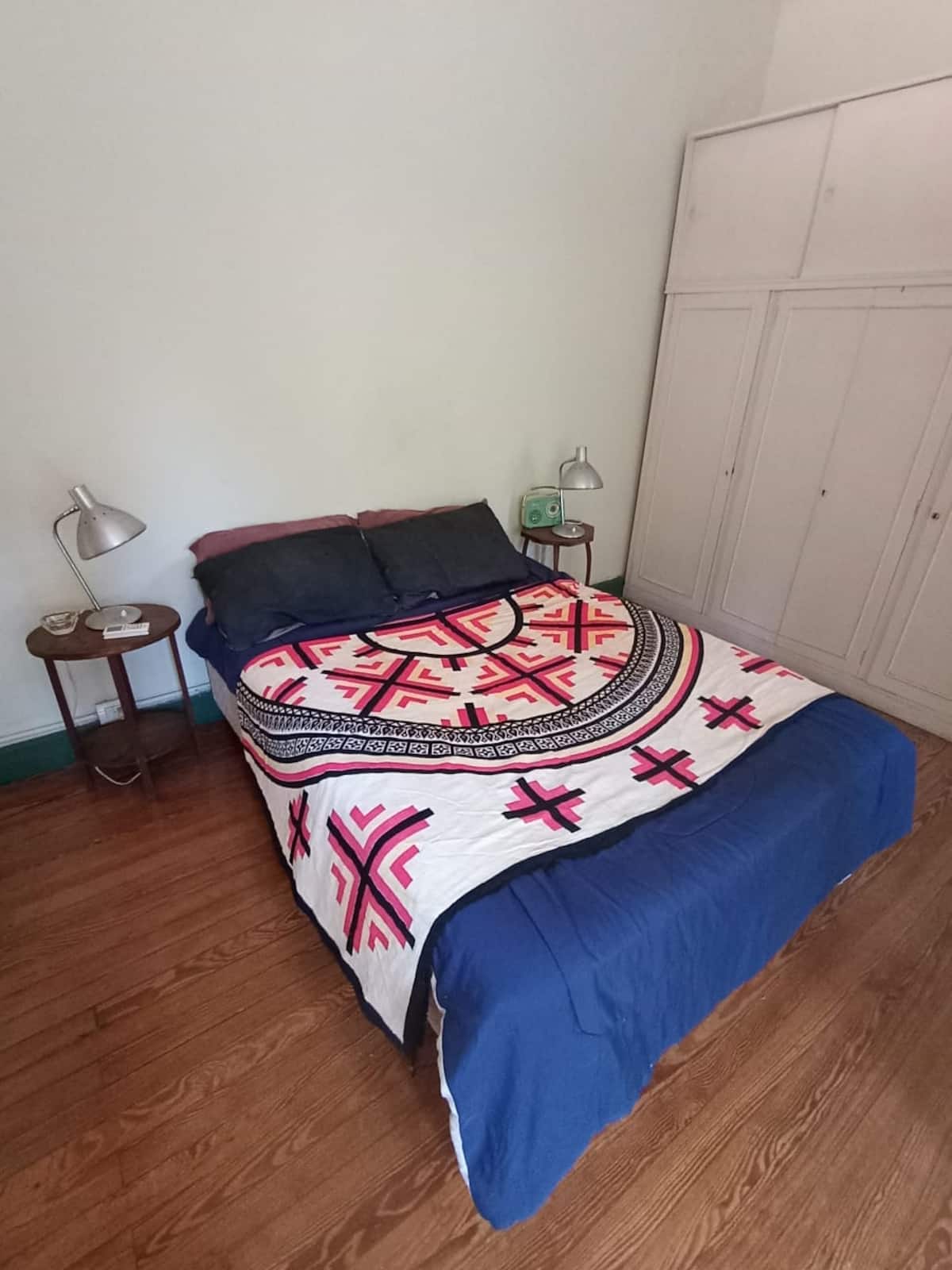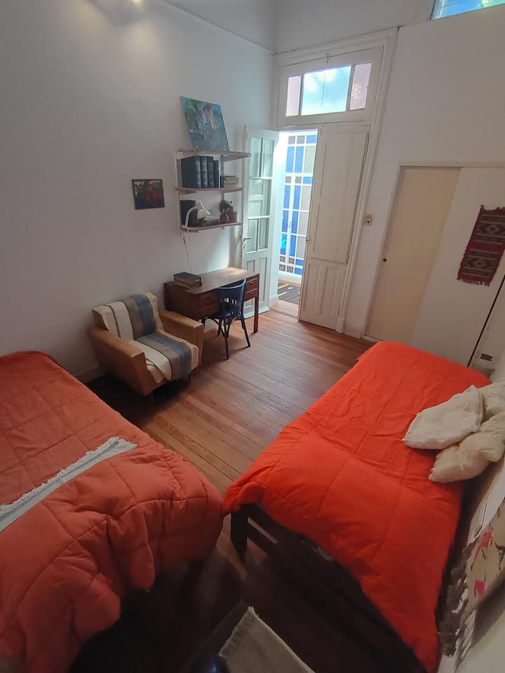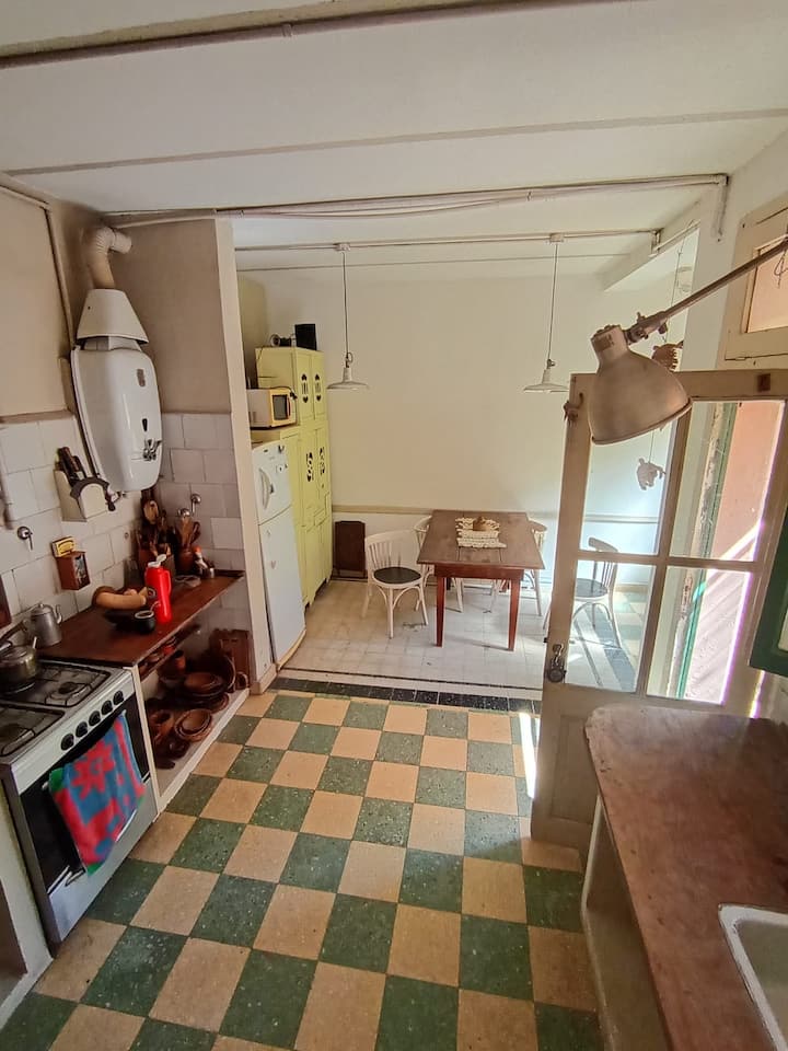 Apartamento em La Paternal, em Buenos Aires. O anúncio descreve o imóvel como adequado para estadias em grupo e para ocasiões familiares e com amigos.