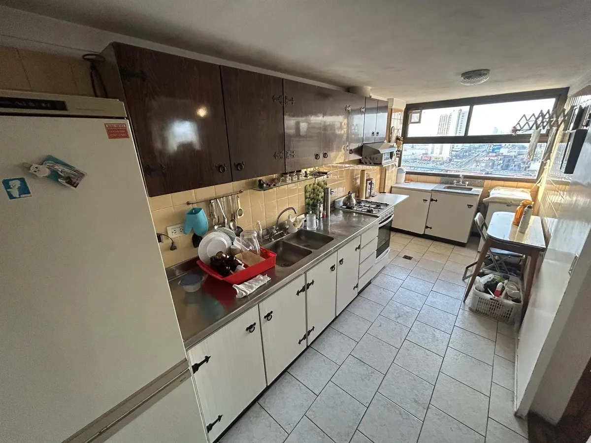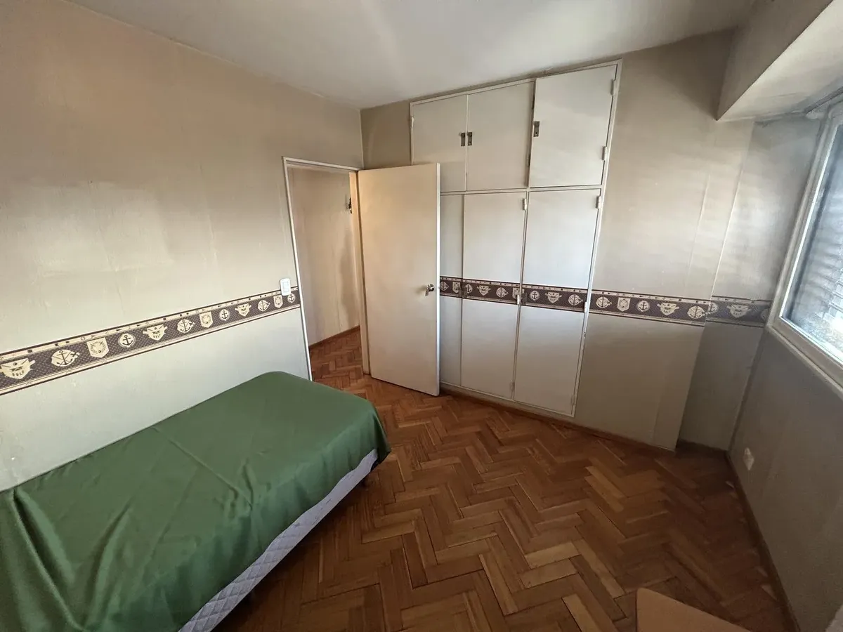 Apartamento de 4 ambientes com 2 dormitórios e um quarto para escritório em Lanús, em frente à Av. Hipólito Yrigoyen. O living-comedor tem piso de parquet e vista para a rua. Cozinha completa com área de serviço integrada, dormitórios com armários, e aquecimento por piso radiante. O condomínio é compatível com o tamanho do imóvel.
