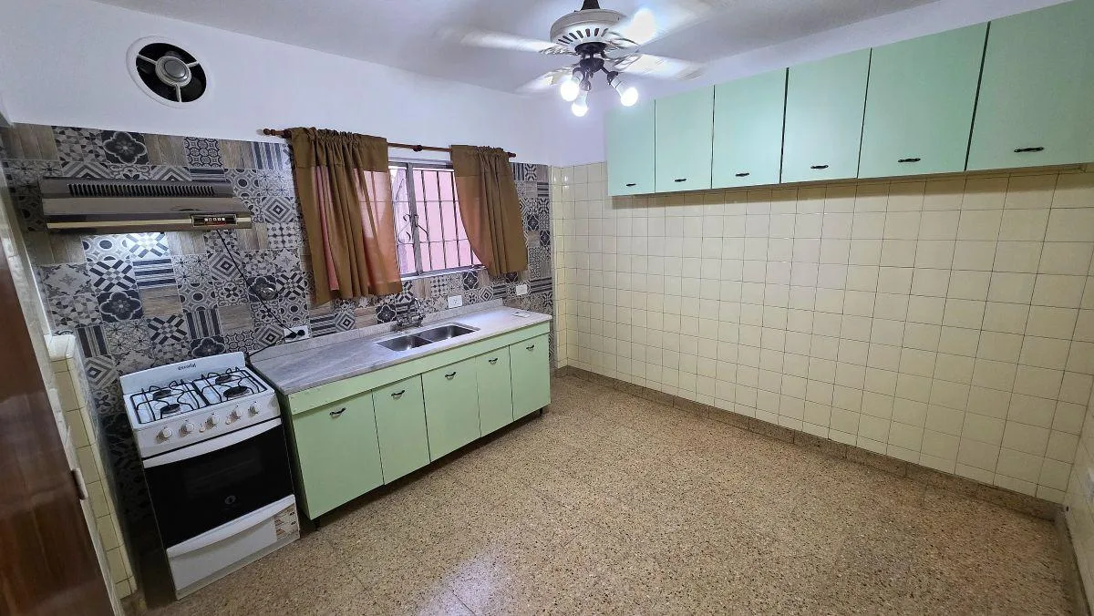 Apartamento de 3 ambientes com 85 m² em Lanús, de frente para a rua, reformado. Possui living com área de jantar (7 m x 3,5 m), cozinha com área de refeições (4 m x 3 m), lavadero e banheiro novo. Inclui 2 quartos com piso de parquet de pinotea e armários embutidos em madeira, além de depósito (baulera) e porta de serviço.