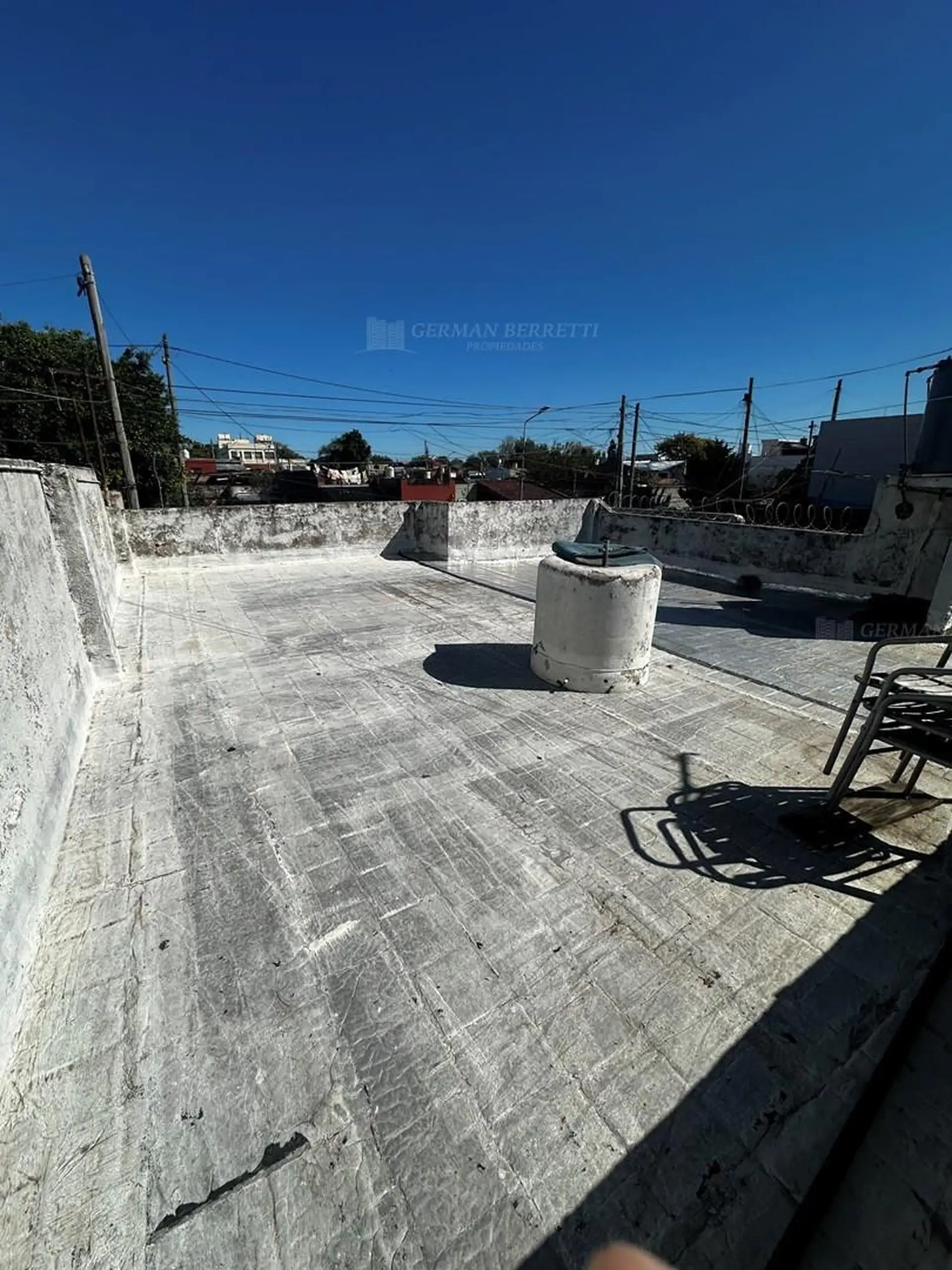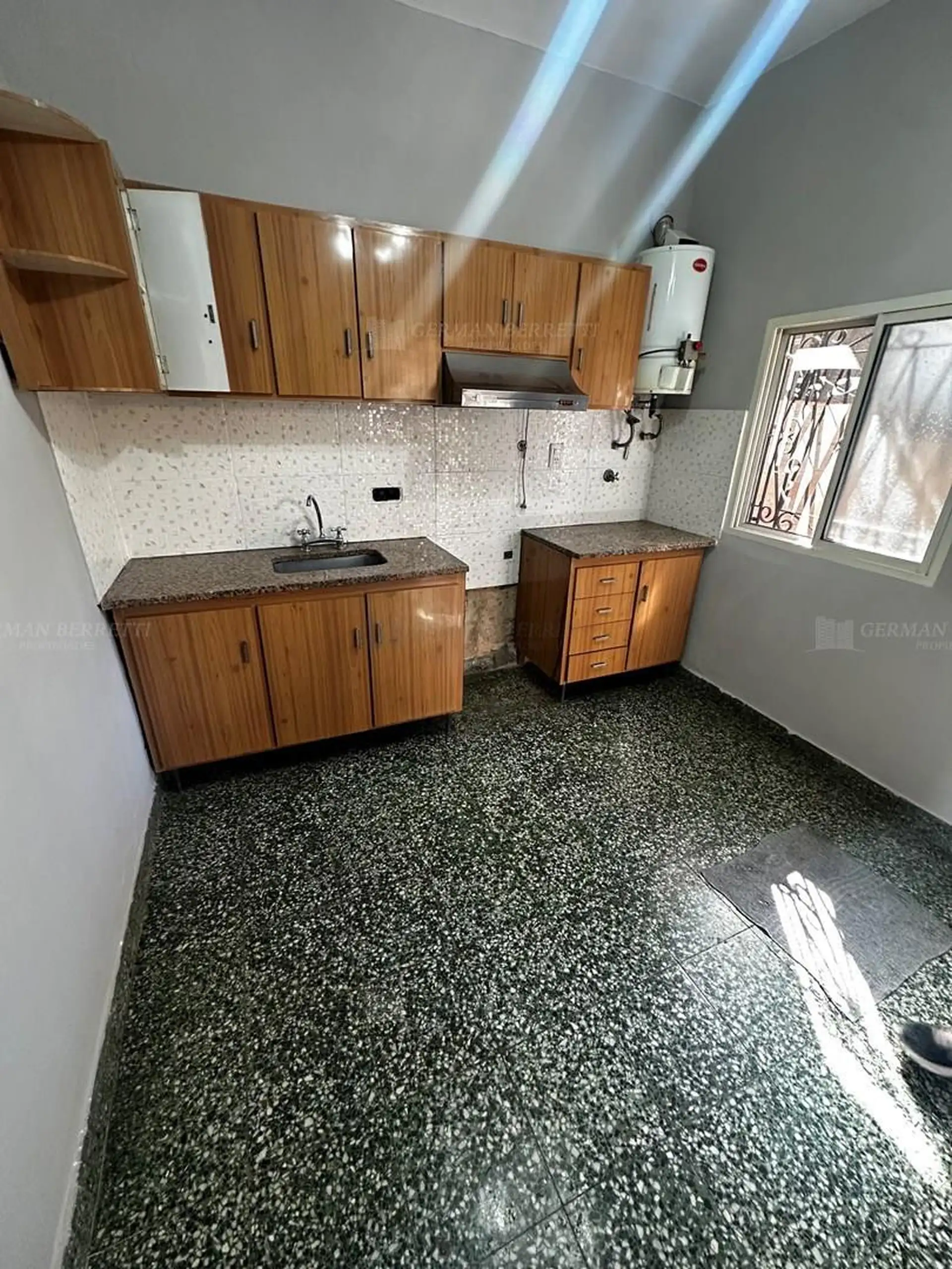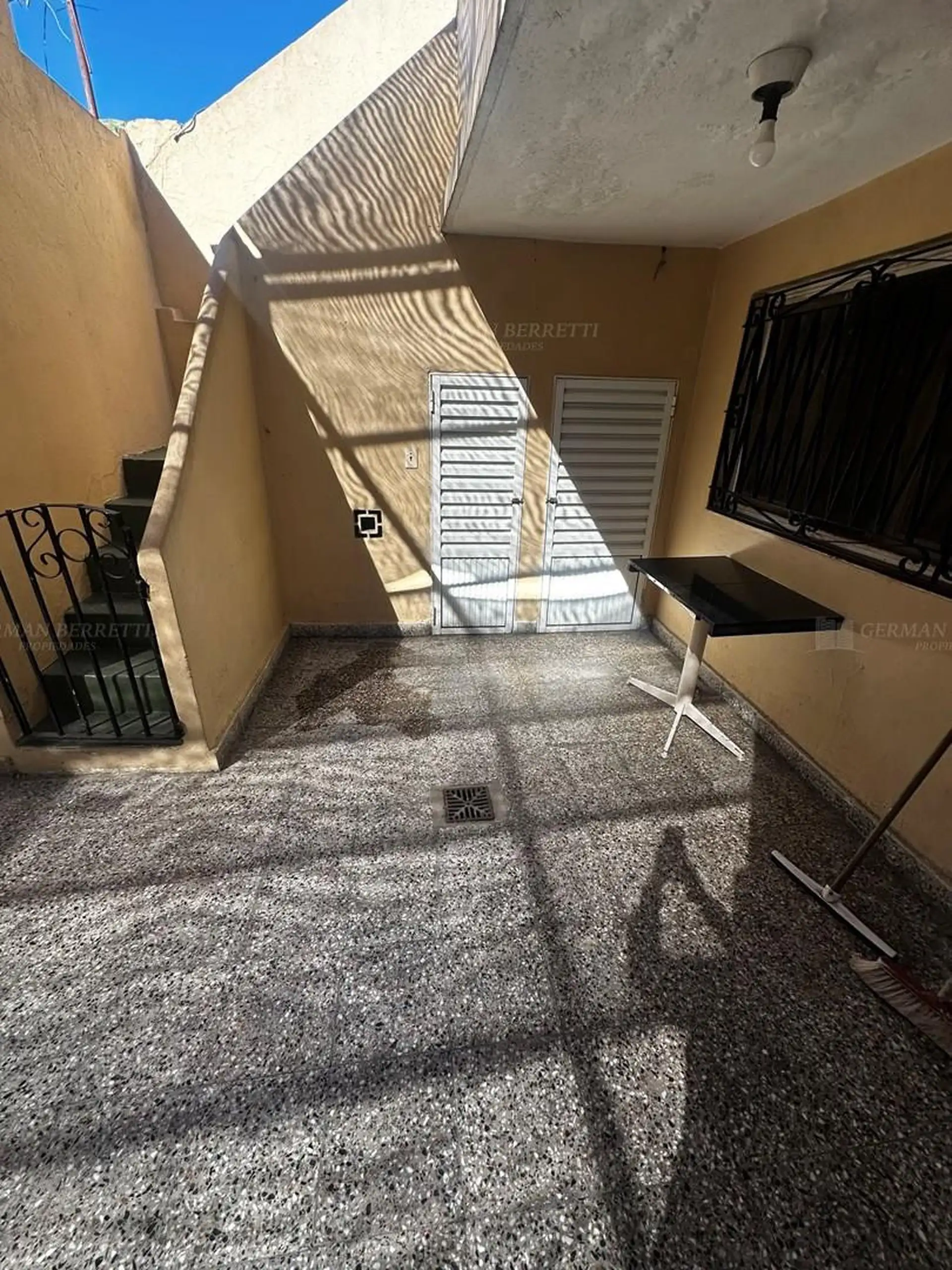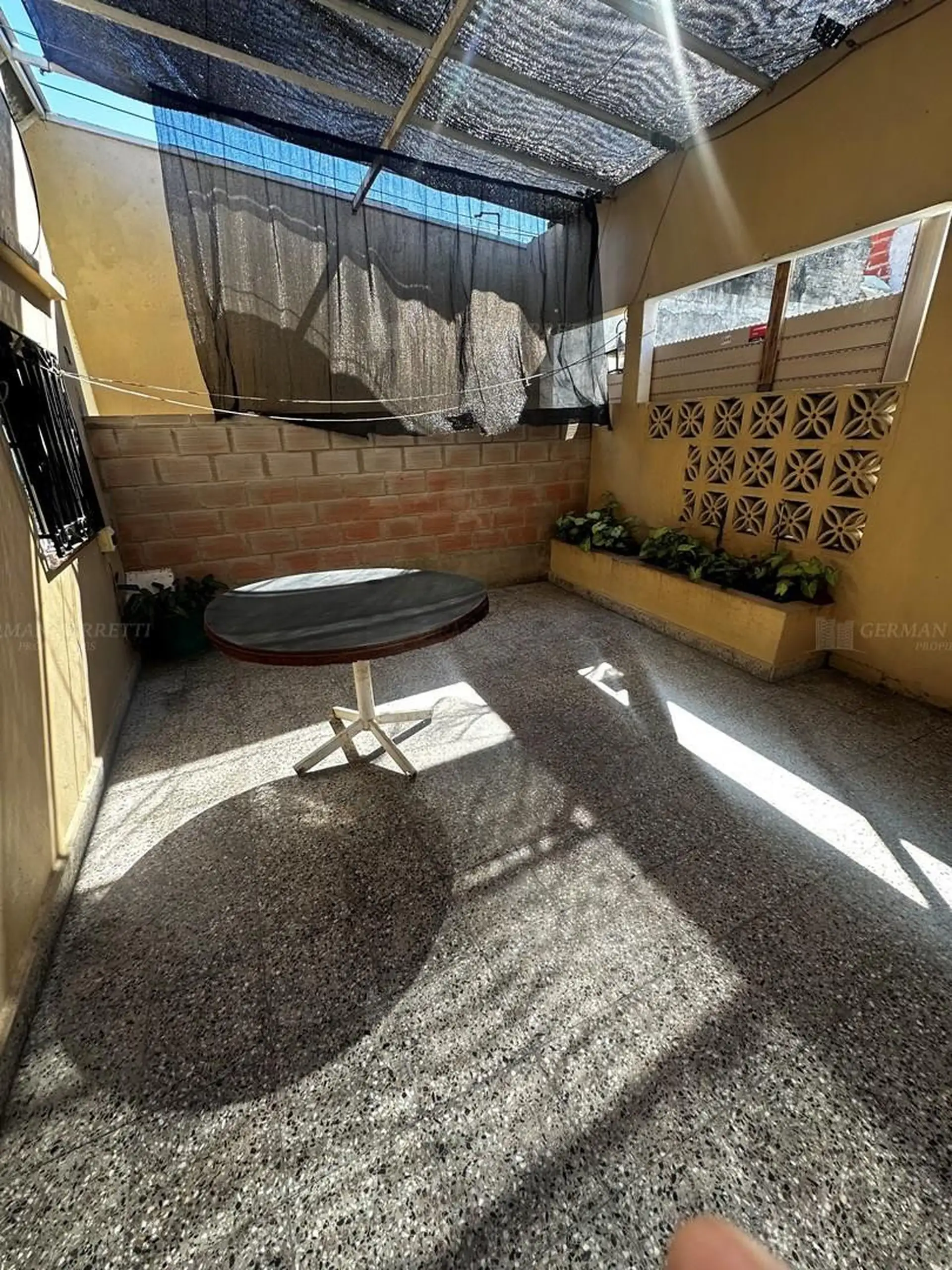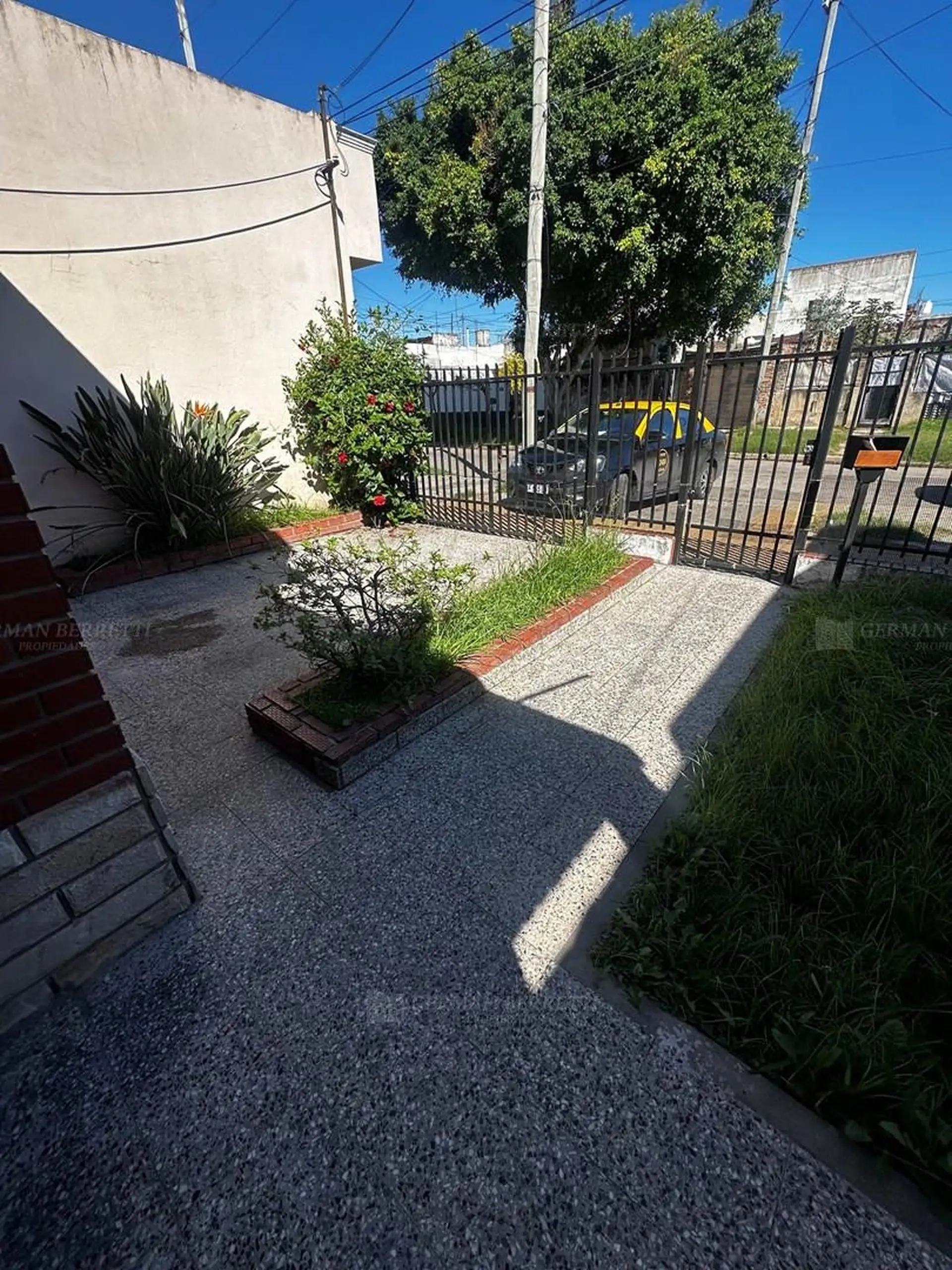 Casa de 3 ambientes com pátio em Lanús, com entrada compartilhada com a unidade do fundo por jardim na frente. Possui sala de jantar e estar, cozinha mobiliada e banheiro completo. Dois dormitórios com armários; pátio grande com área de lavanderia.