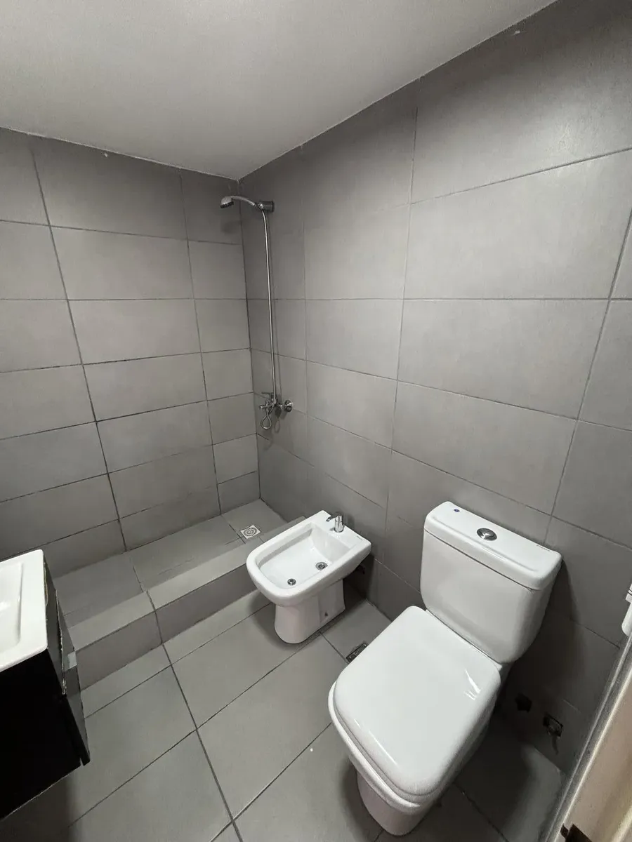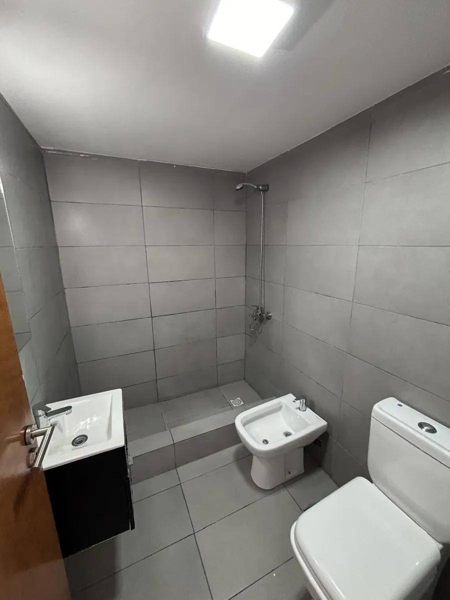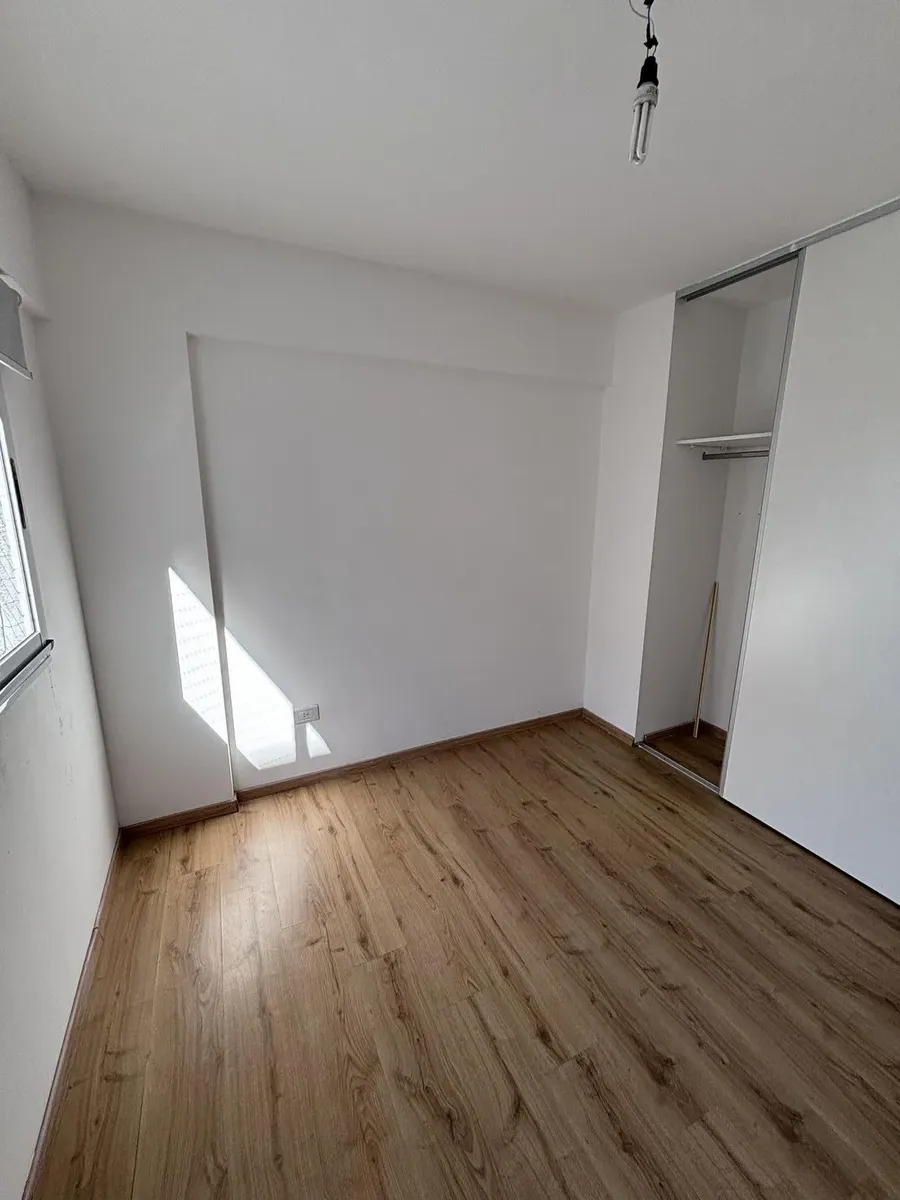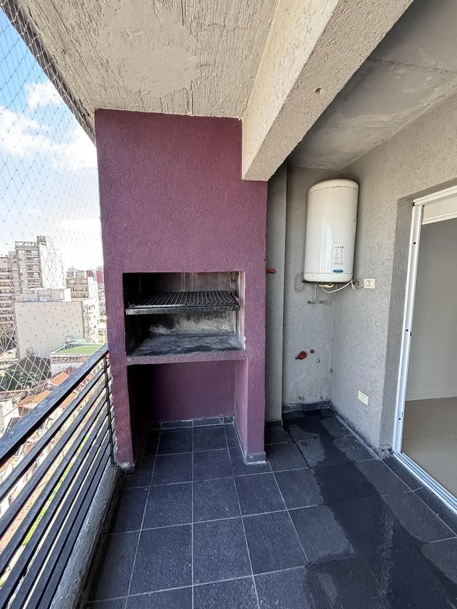 Apartamento de 3 ambientes em Lanús Este, com 2 dormitórios, 2 banheiros e varanda com área de churrasco (parrilla). Conta com living com cortinas blackout, cozinha com armários completos e piso em porcelanato. O imóvel inclui vaga de garagem e salão de usos múltiplos (SUM) com parrilla.