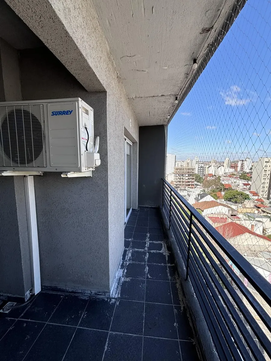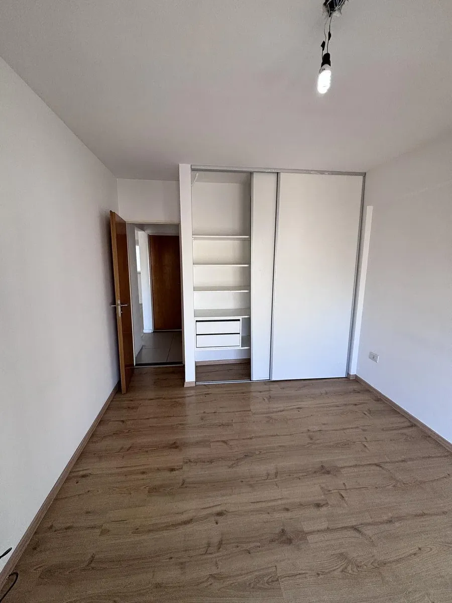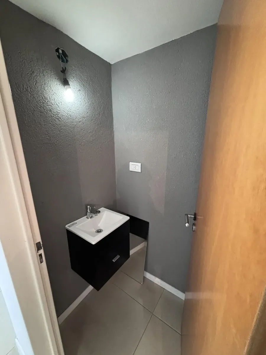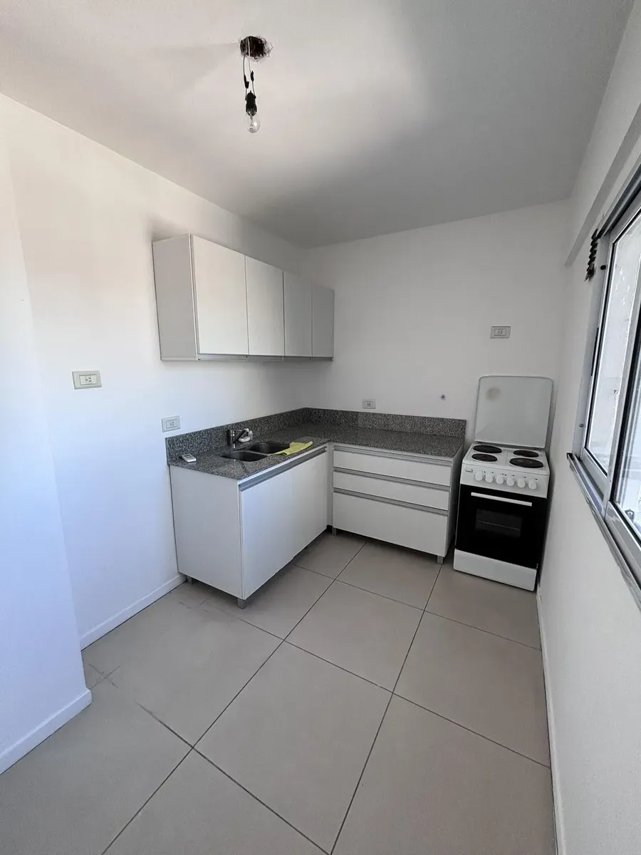 Apartamento de 3 ambientes em Lanús Este, com 2 dormitórios, 2 banheiros e varanda com área de churrasco (parrilla). Conta com living com cortinas blackout, cozinha com armários completos e piso em porcelanato. O imóvel inclui vaga de garagem e salão de usos múltiplos (SUM) com parrilla.
