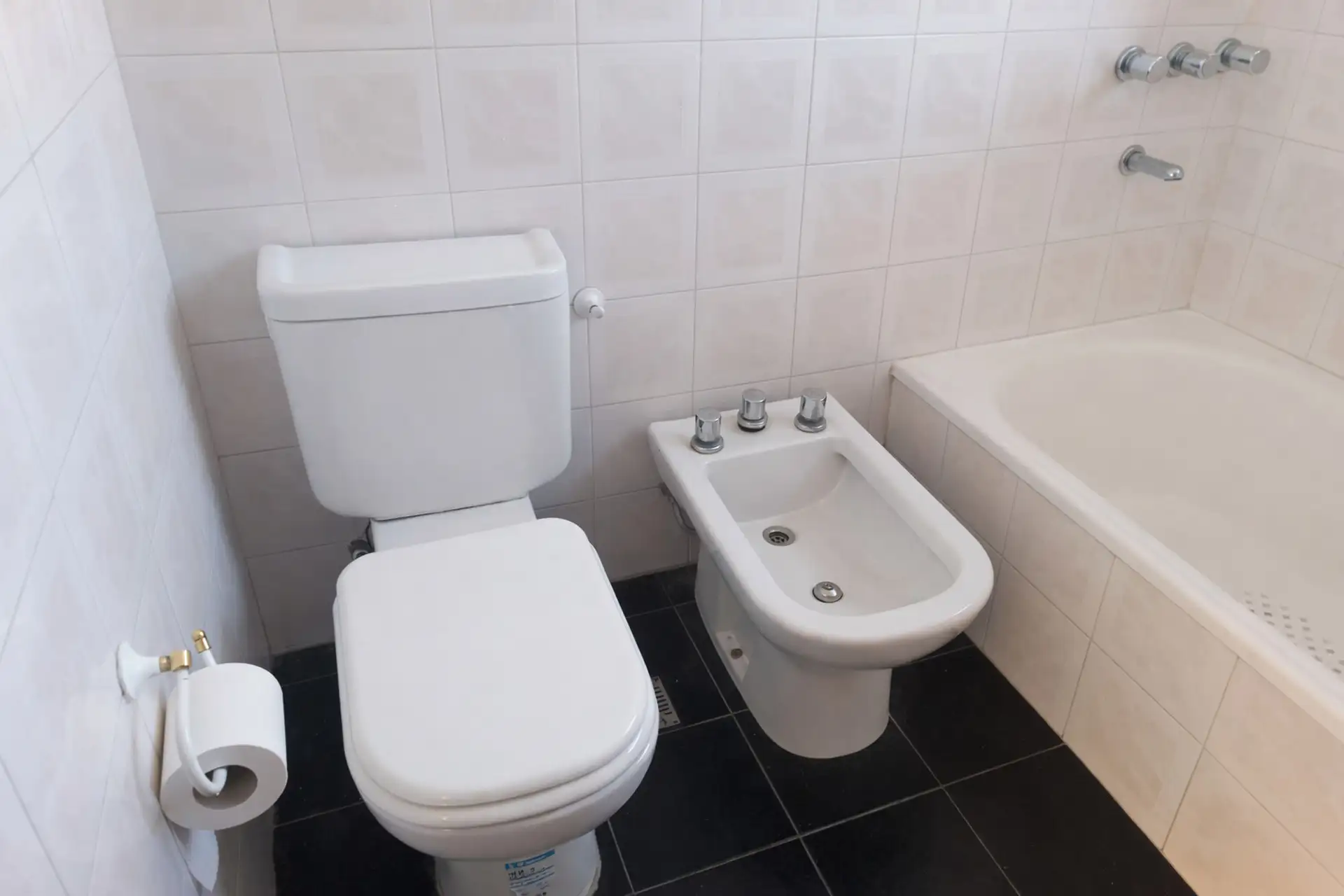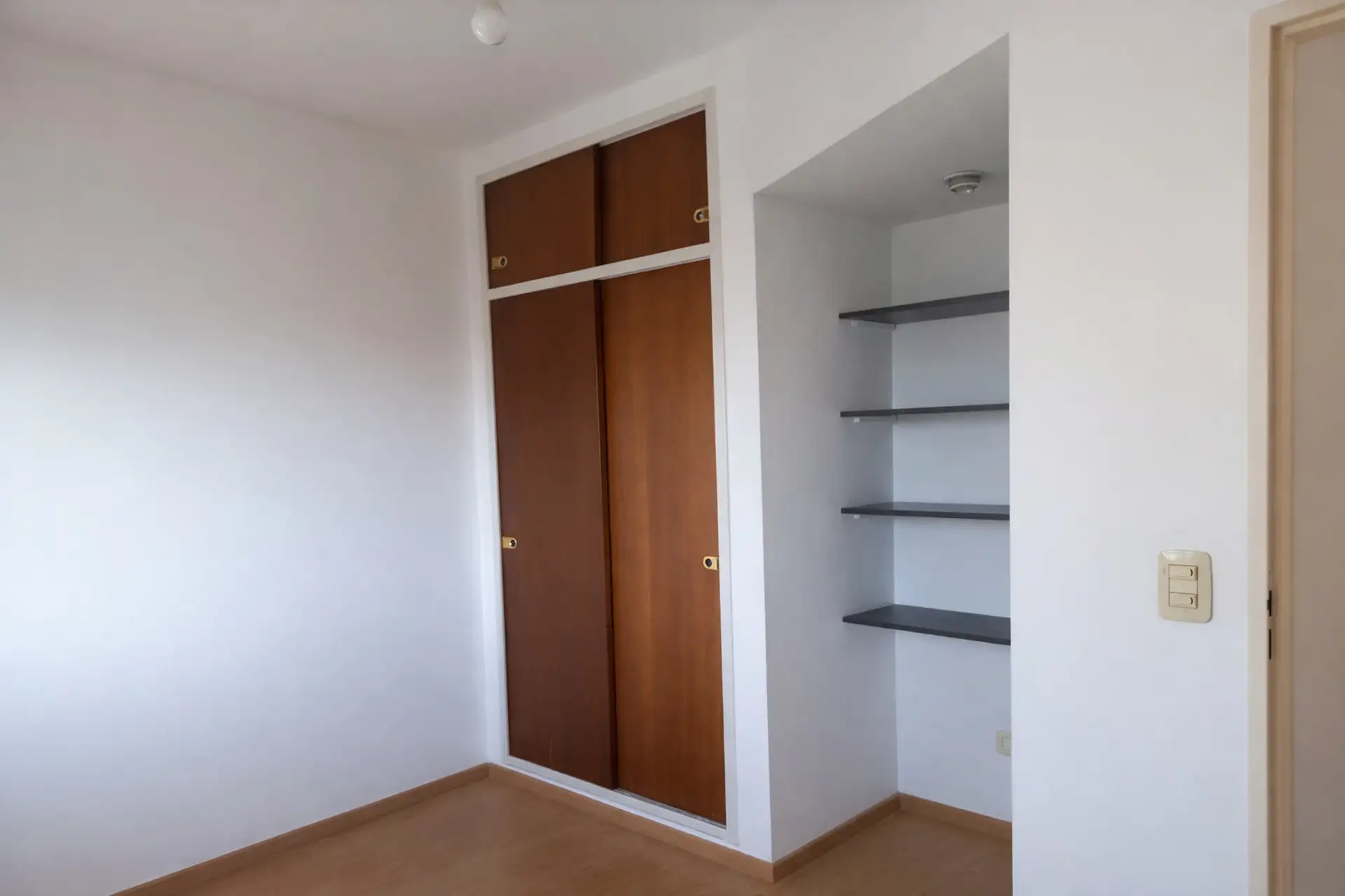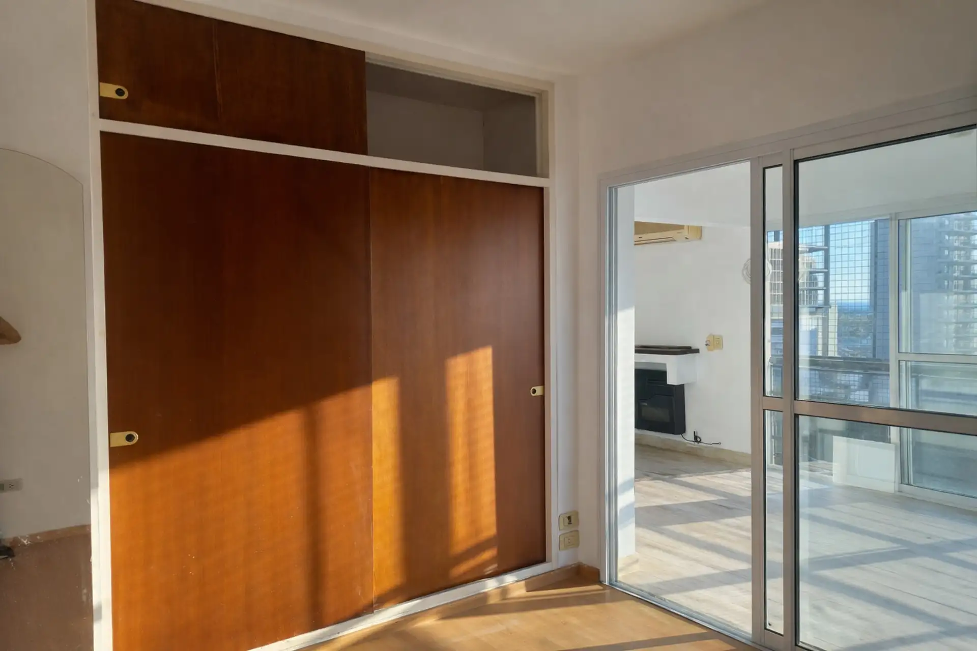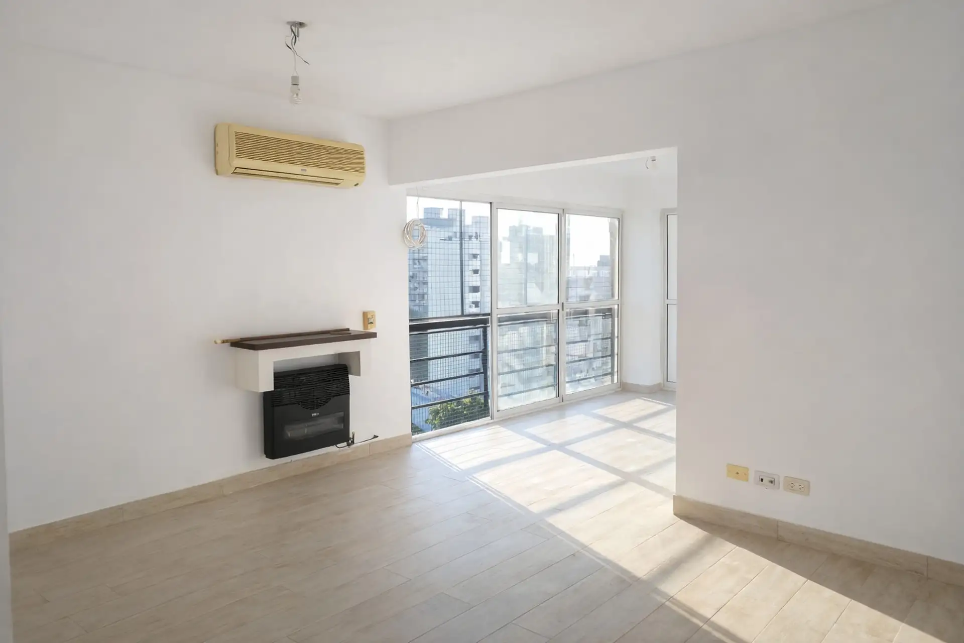 Apartamento de 3 ambientes com 2 quartos no 6º andar, de fundos (contrafrente), com vista aberta, em Lanús Oeste. Inclui sala de jantar com saída para varanda tipo francesa, cozinha semi integrada com janela para o exterior, 1 banheiro completo com janela e área de serviço independente com termocumulador (termotanque) embutido. Conta com ar-condicionado frio/quente e estufa, pisos de porcelanato, armários embutidos nos dois dormitórios e vaga de garagem coberta. O prédio Torre Bahía tem 2 elevad