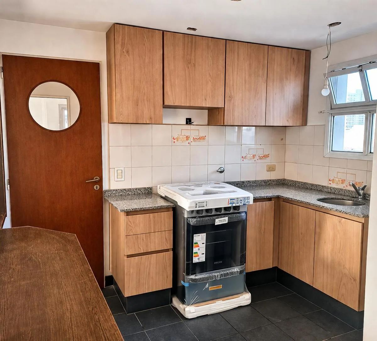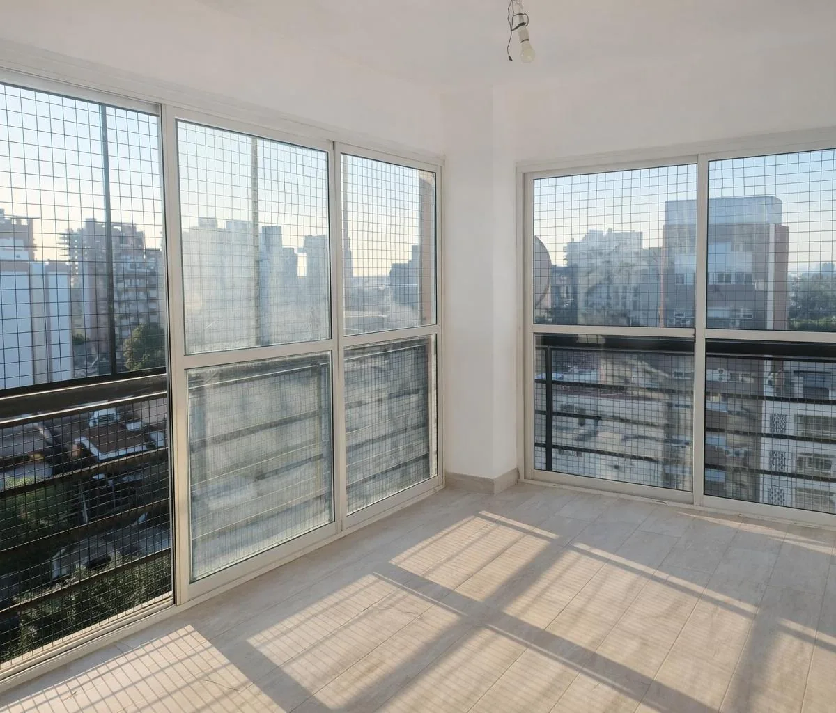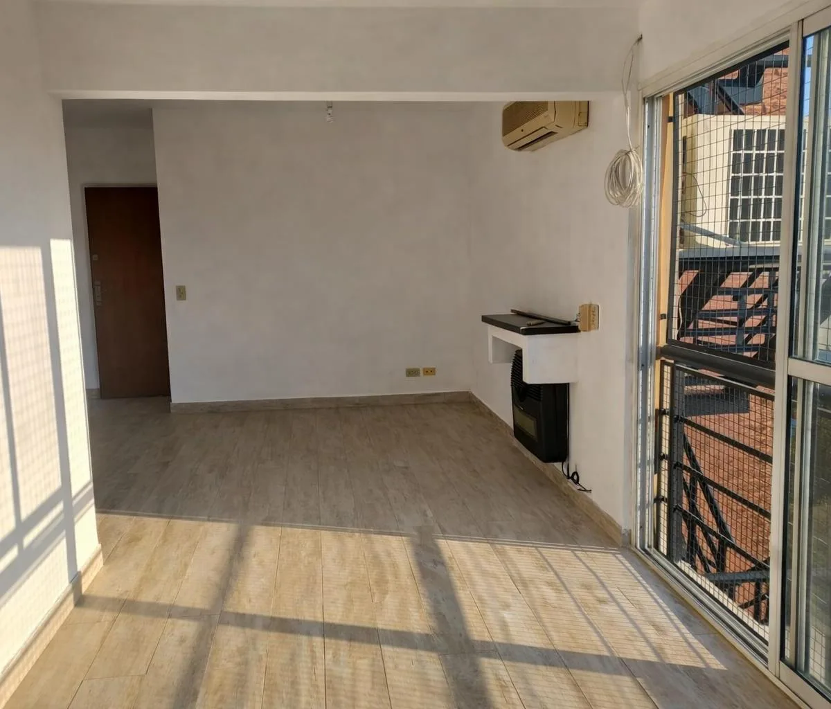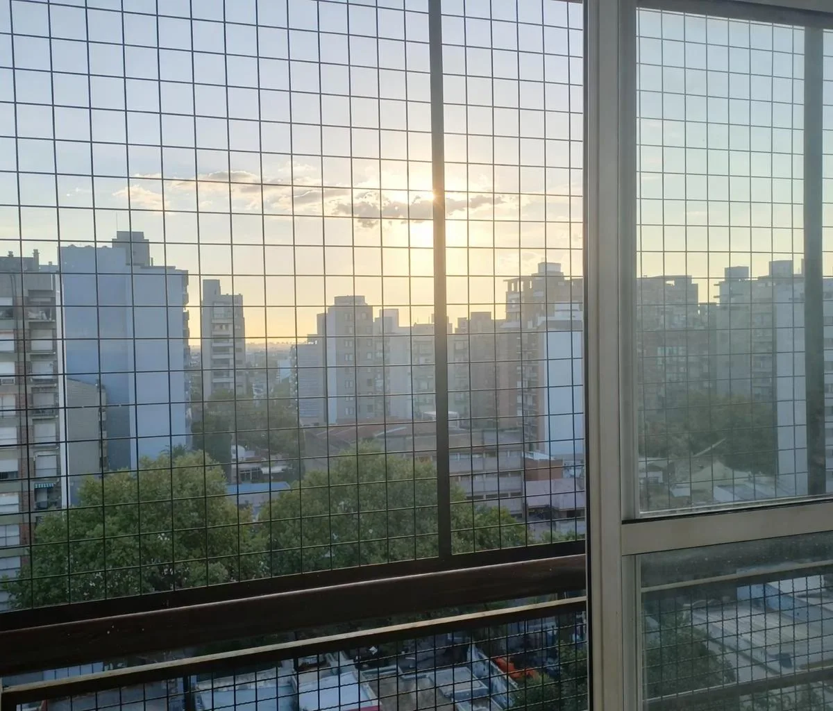 Apartamento de 3 ambientes no 9º andar, de fundos (contrafrente) em Lanús, com vista aberta. Possui sala de jantar com saída para varanda tipo francesa, piso de porcelanato, ar-condicionado frio/calor e estufa. Cozinha semi integrada com janela para o exterior, móveis planejados na parte inferior e superior e bancada divisória. Dois dormitórios com armários de correr, banheiro completo com janela e área de serviço independente com termotanque. O imóvel inclui vaga de garagem coberta. O prédio To