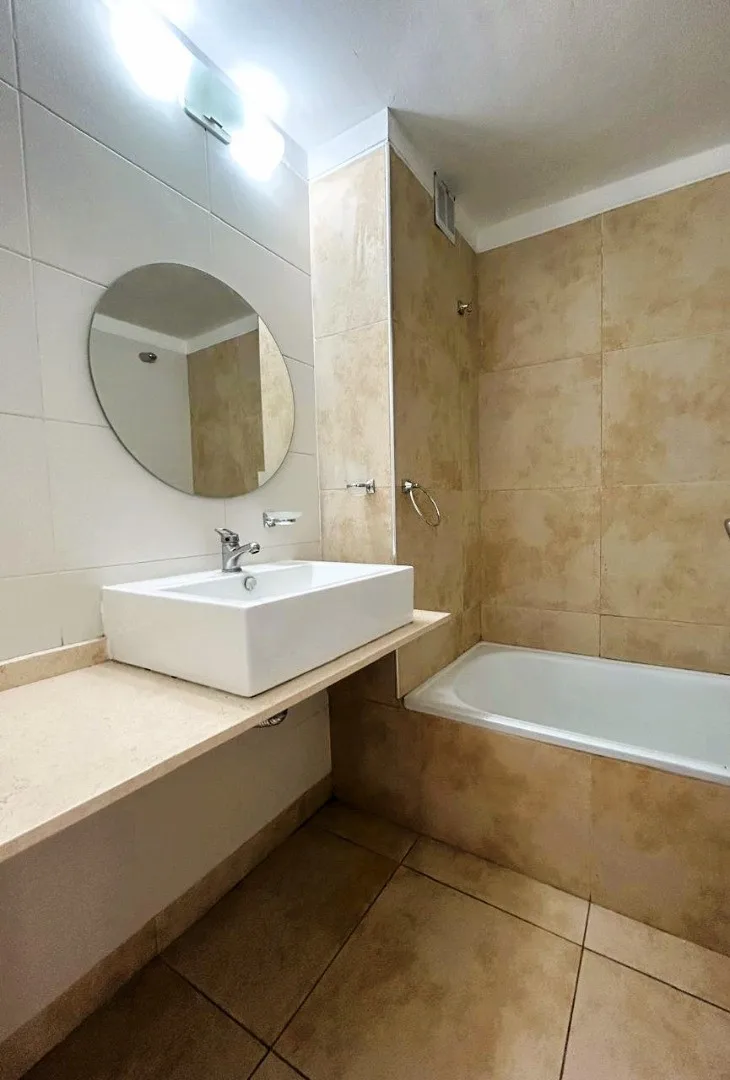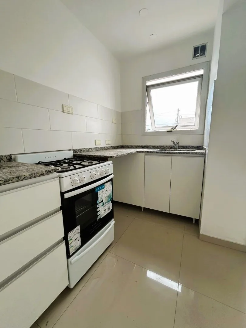 Apartamento de 3 ambientes em Lanús Oeste, com 2 dormitórios com armários embutidos e banheiro completo. A unidade tem entrada por um living com cozinha integrada (fogão instalado e conexão para máquina de lavar), pisos de porcelanato e janelas com vidro duplo (DVH), além de água quente central e orientação norte. Conta com garagem com portão automatizado, fica a três quadras da Av. Hipólito Yrigoyen e a cinco quadras da Av. 25 de Mayo, próximo à Estação Lanús e ao Velódromo Municipal. O aluguel