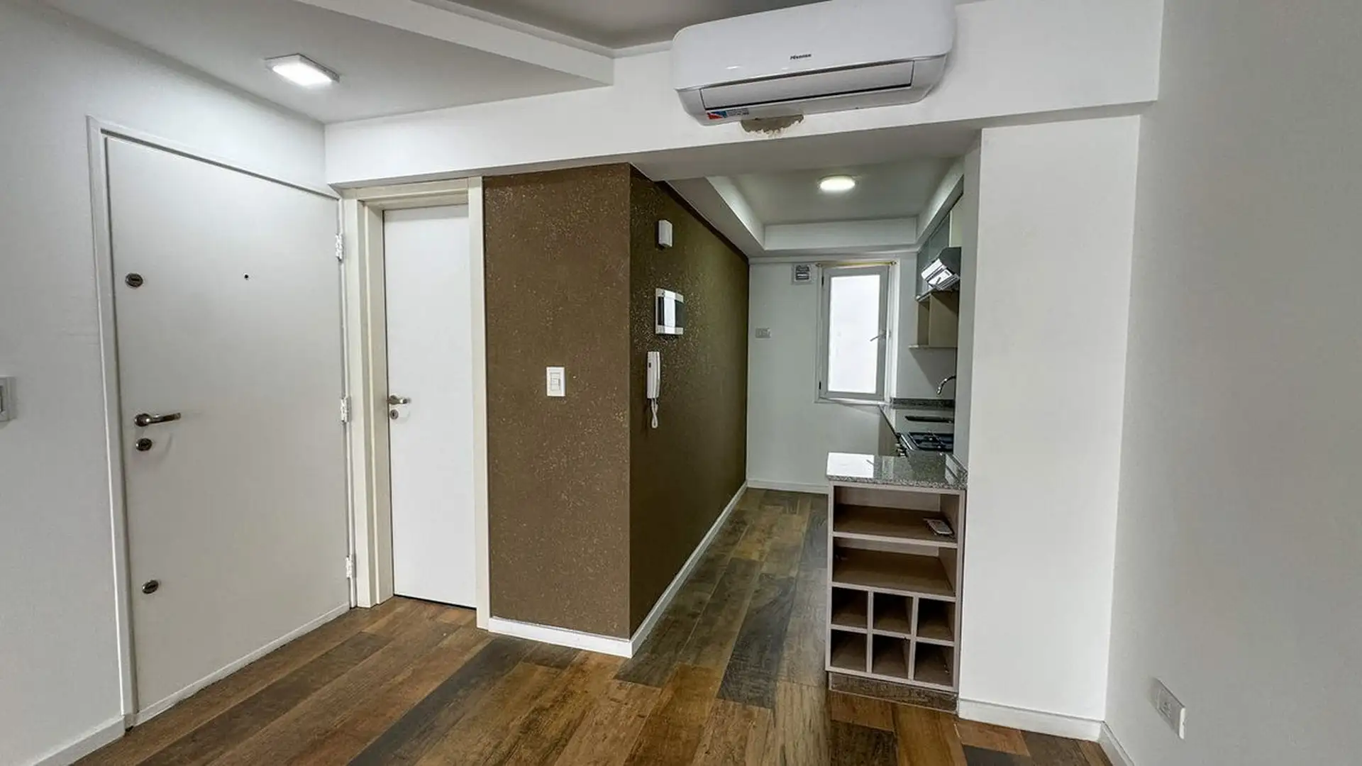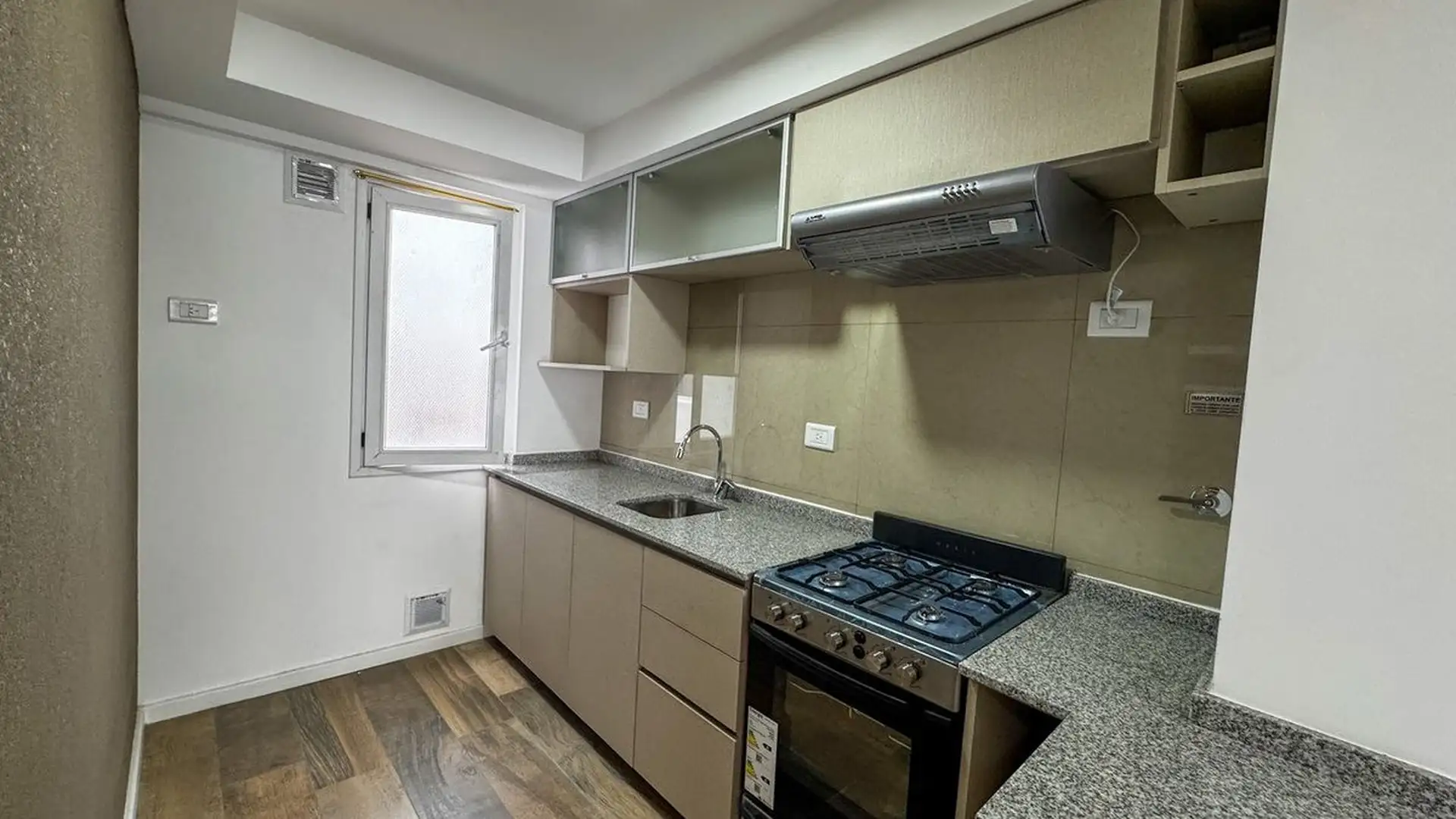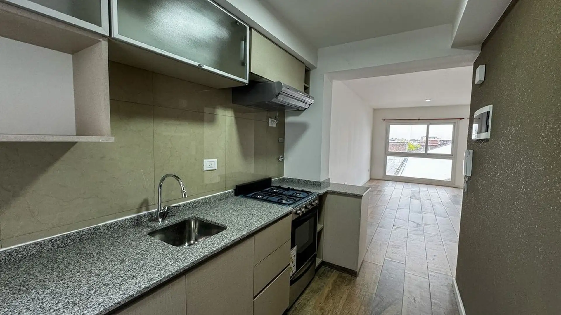 Apartamento novo (nunca habitado) no bairro Gerli, Lanús, com 2 ambientes e entrada de frente para os fundos (contrafrente). Inclui cozinha com armários, bancada inferior, exaustor e fogão a gás, além de ar-condicionado frio/calor e iluminação instalada. O banheiro é completo com box de ducha e o aquecimento de água é feito por termoelétrica individual (fora da unidade). Há área de lavanderia para máquina de lavar e baulera individual no 4º andar; também menciona terraço com churrasqueira, solár