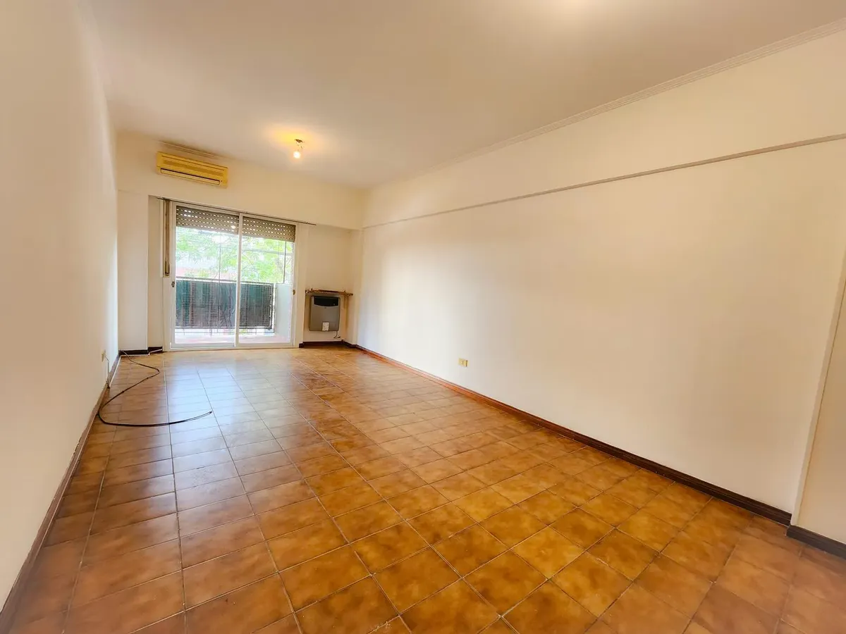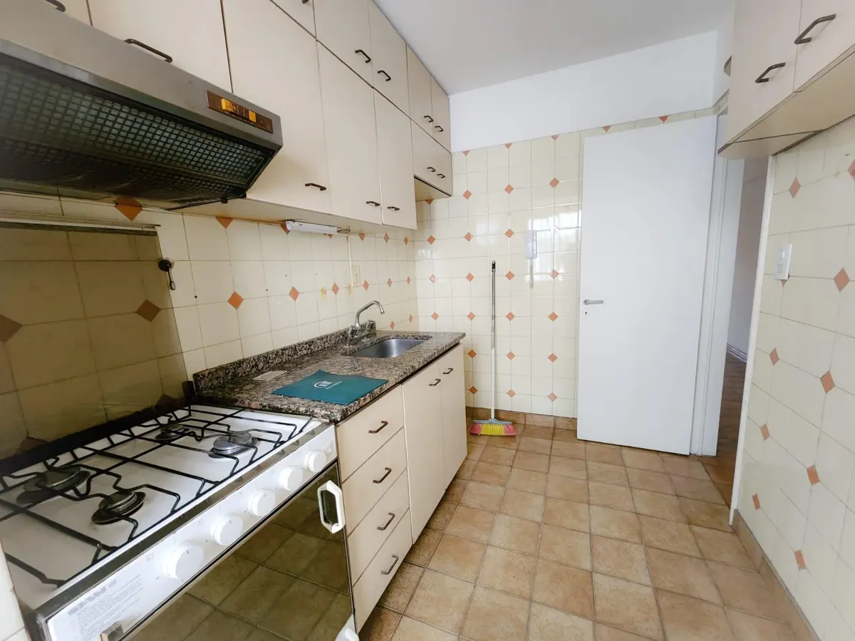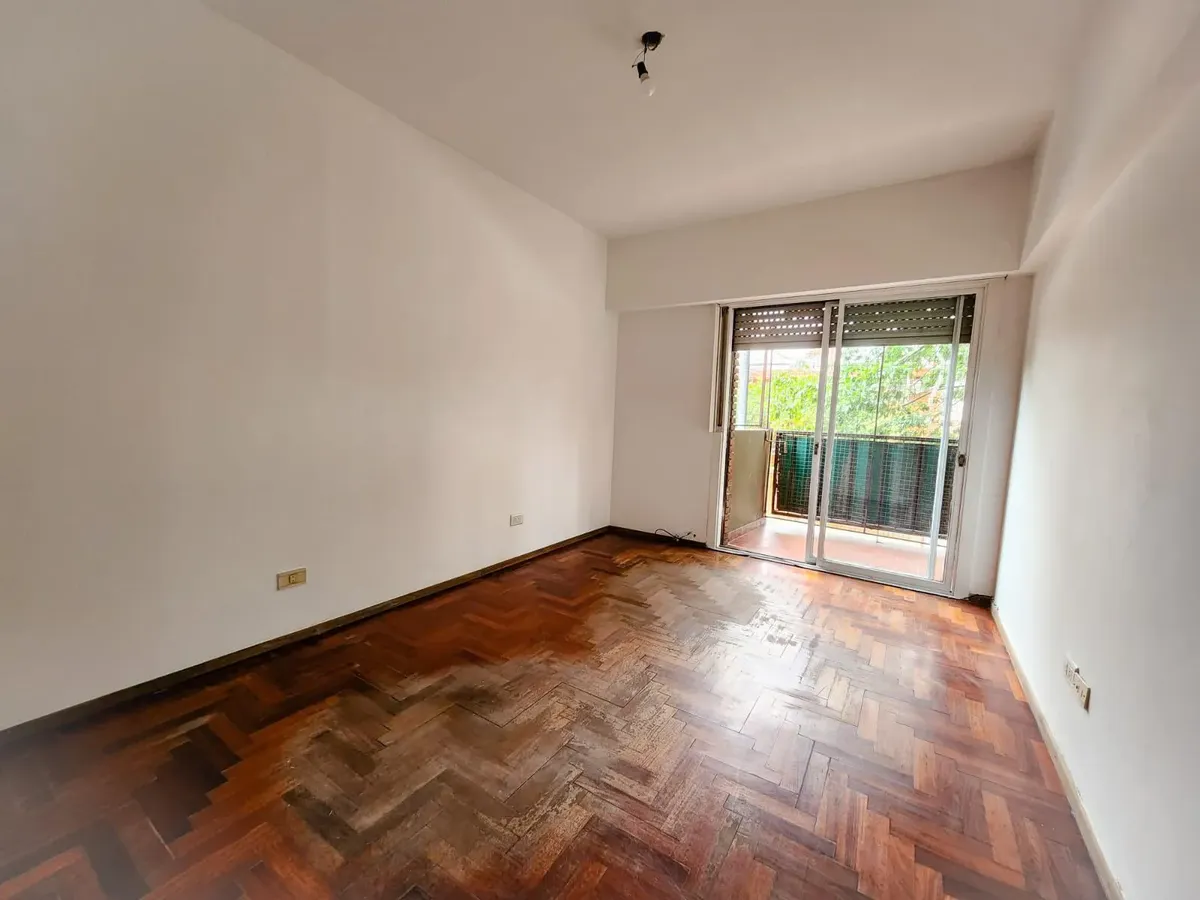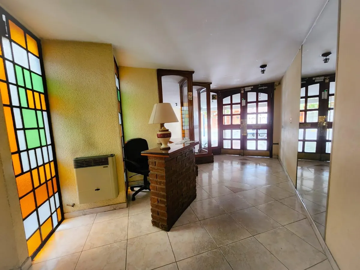 Apartamento de três ambientes em Liniers, com 2 dormitórios e varanda. A varanda percorre a sala e o dormitório. Conta com armários do piso ao teto nos dormitórios, banheiro completo, cozinha com armários superiores e inferiores e área de serviço (lavadero). A sala tem ar-condicionado e estufa.