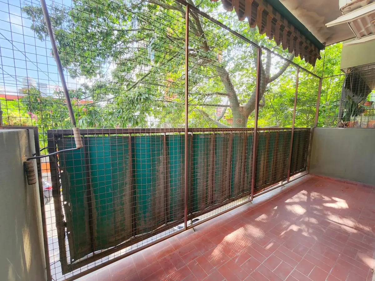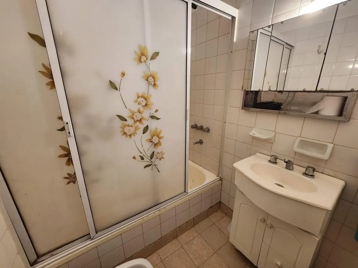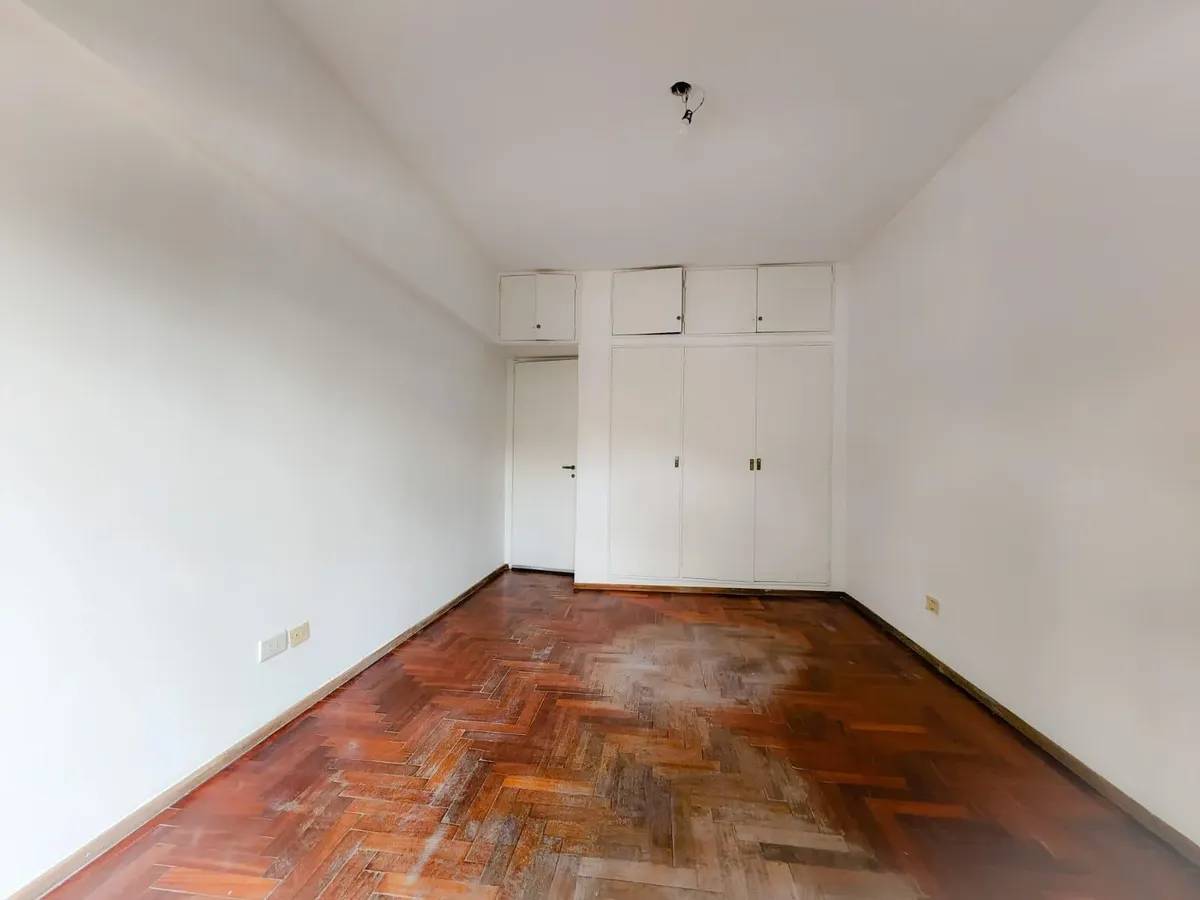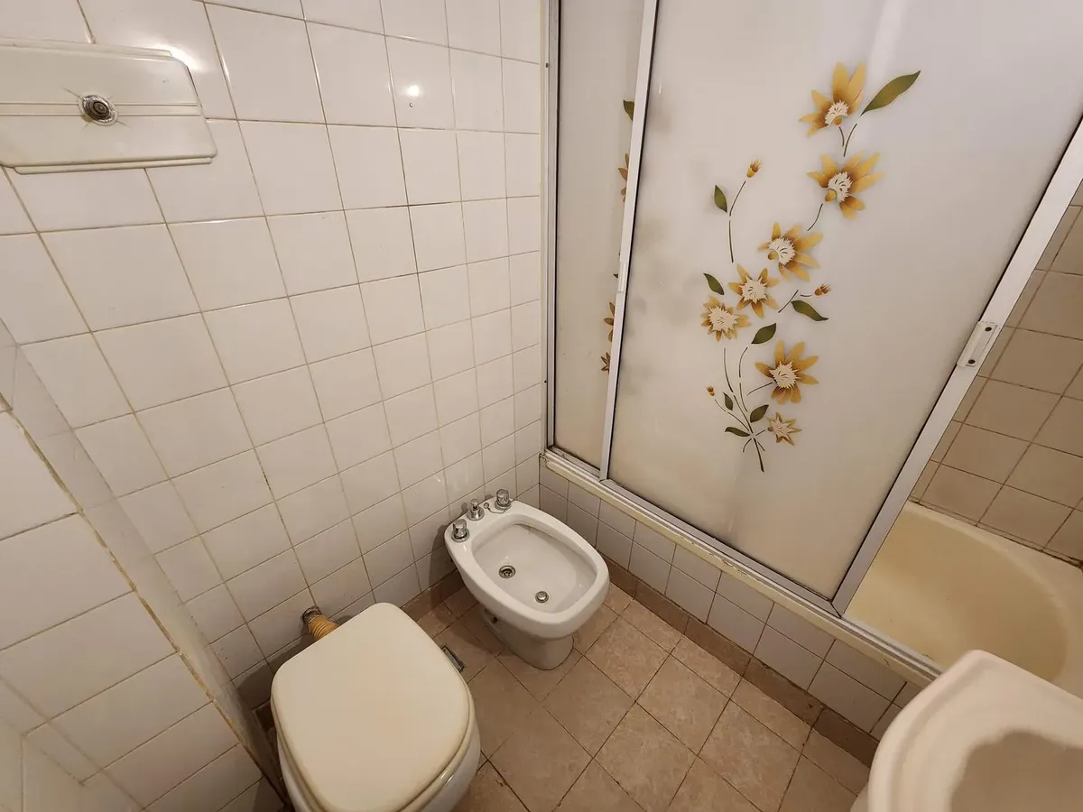 Apartamento de três ambientes em Liniers, com 2 dormitórios e varanda. A varanda percorre a sala e o dormitório. Conta com armários do piso ao teto nos dormitórios, banheiro completo, cozinha com armários superiores e inferiores e área de serviço (lavadero). A sala tem ar-condicionado e estufa.
