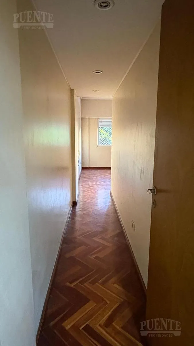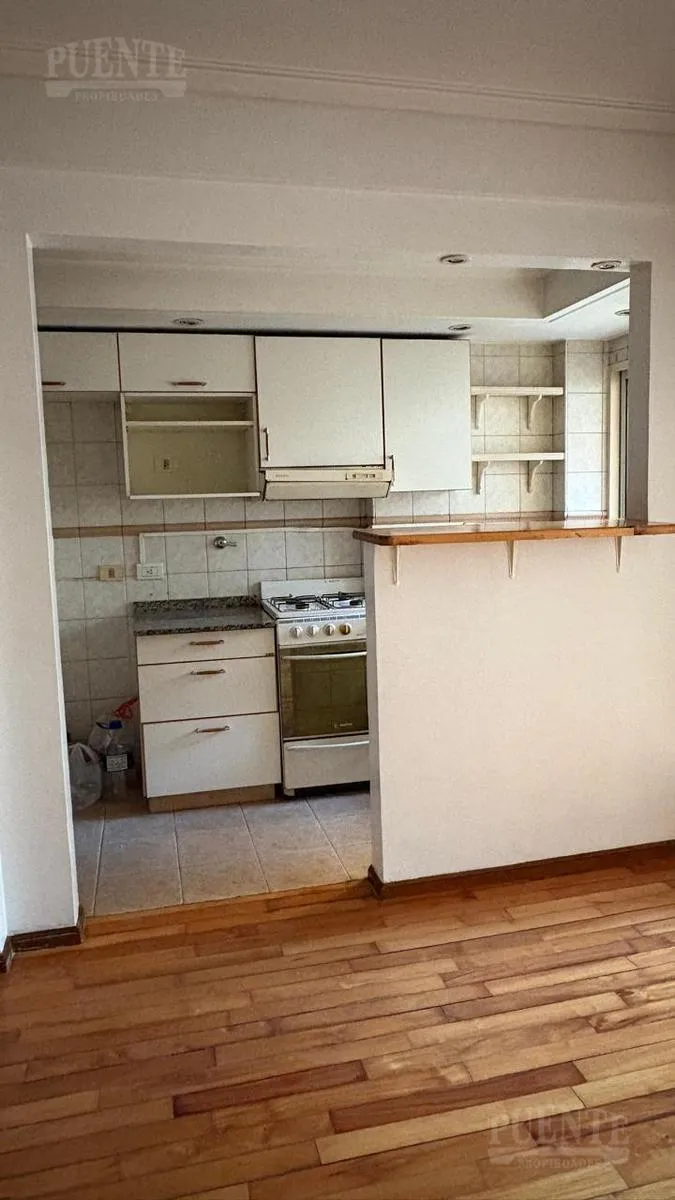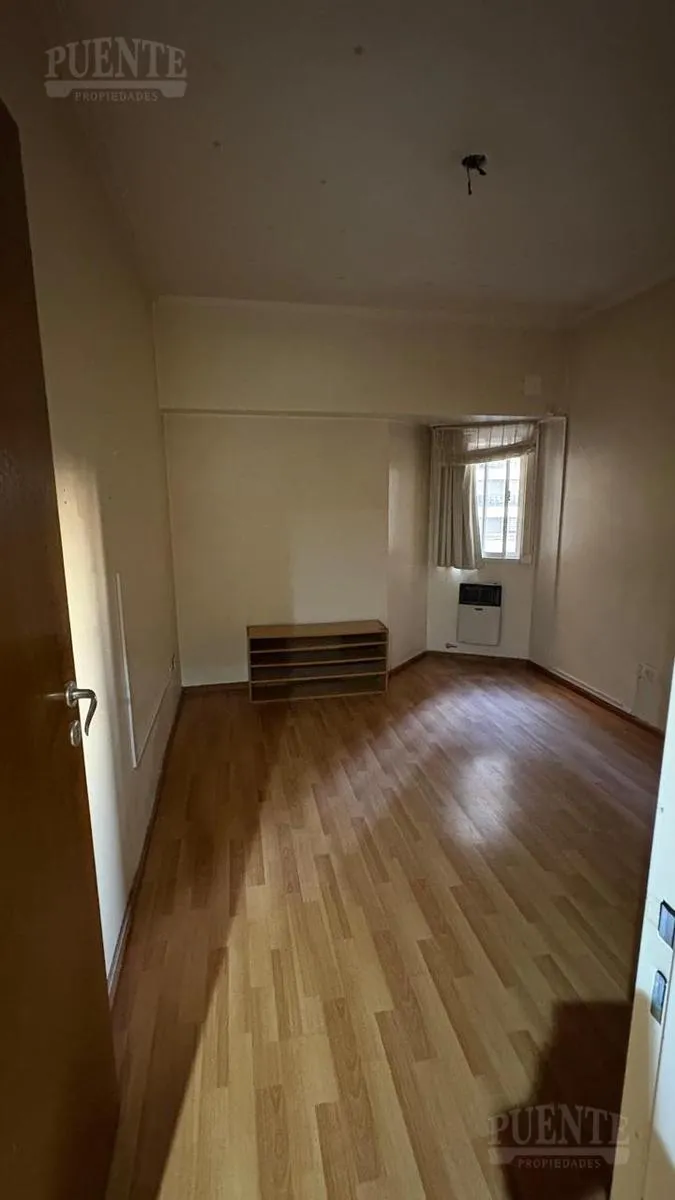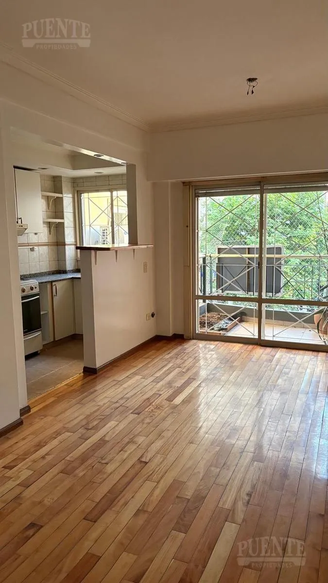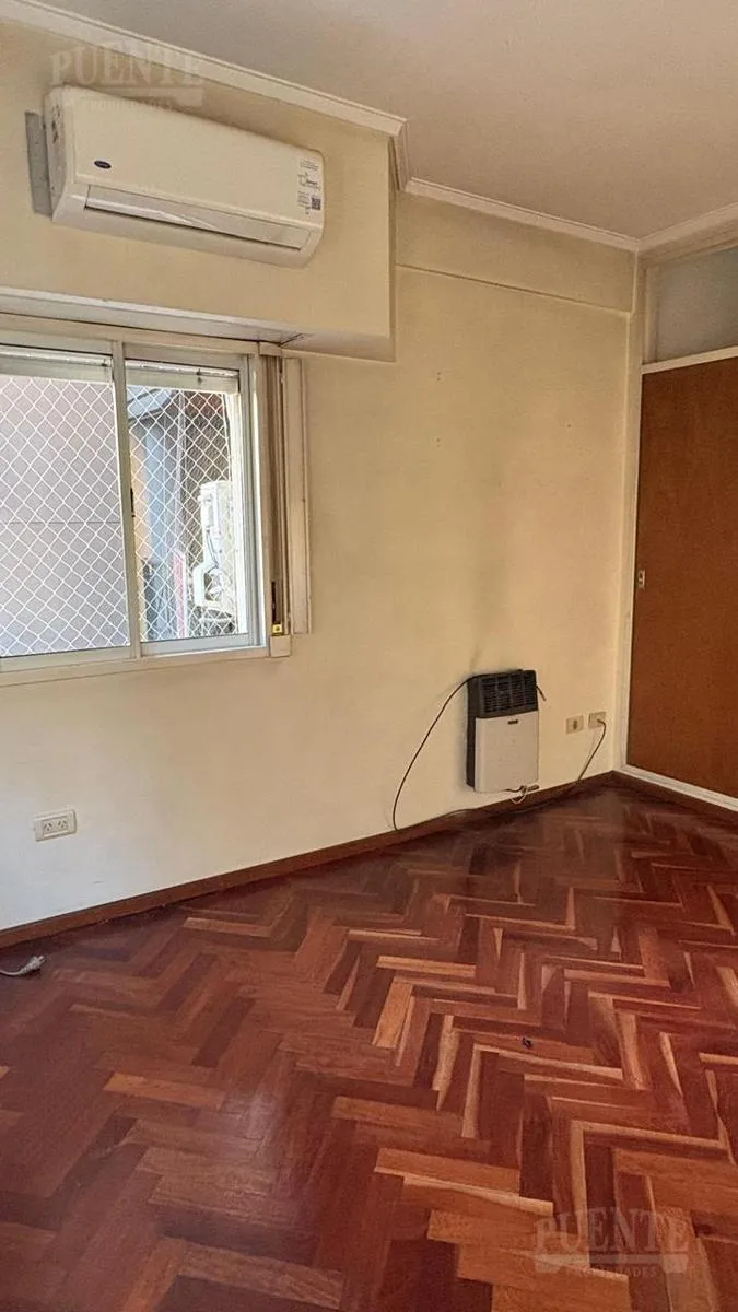 Apartamento para aluguel em Lomas de Zamora, 3 ambientes, em bom estado, pronto para morar. Possui sala e sala de jantar com piso de madeira e acesso à varanda de frente com vista aberta. Cozinha independente com bancada para café da manhã, móveis planejados, fogão a gás e área de armazenamento. Dois dormitórios com armários embutidos e ar-condicionado instalado no dormitório principal; banheiro completo com banheira e bidê. Inclui vaga de garagem fixa semicoberta e depósito. Aluguel de $950.000