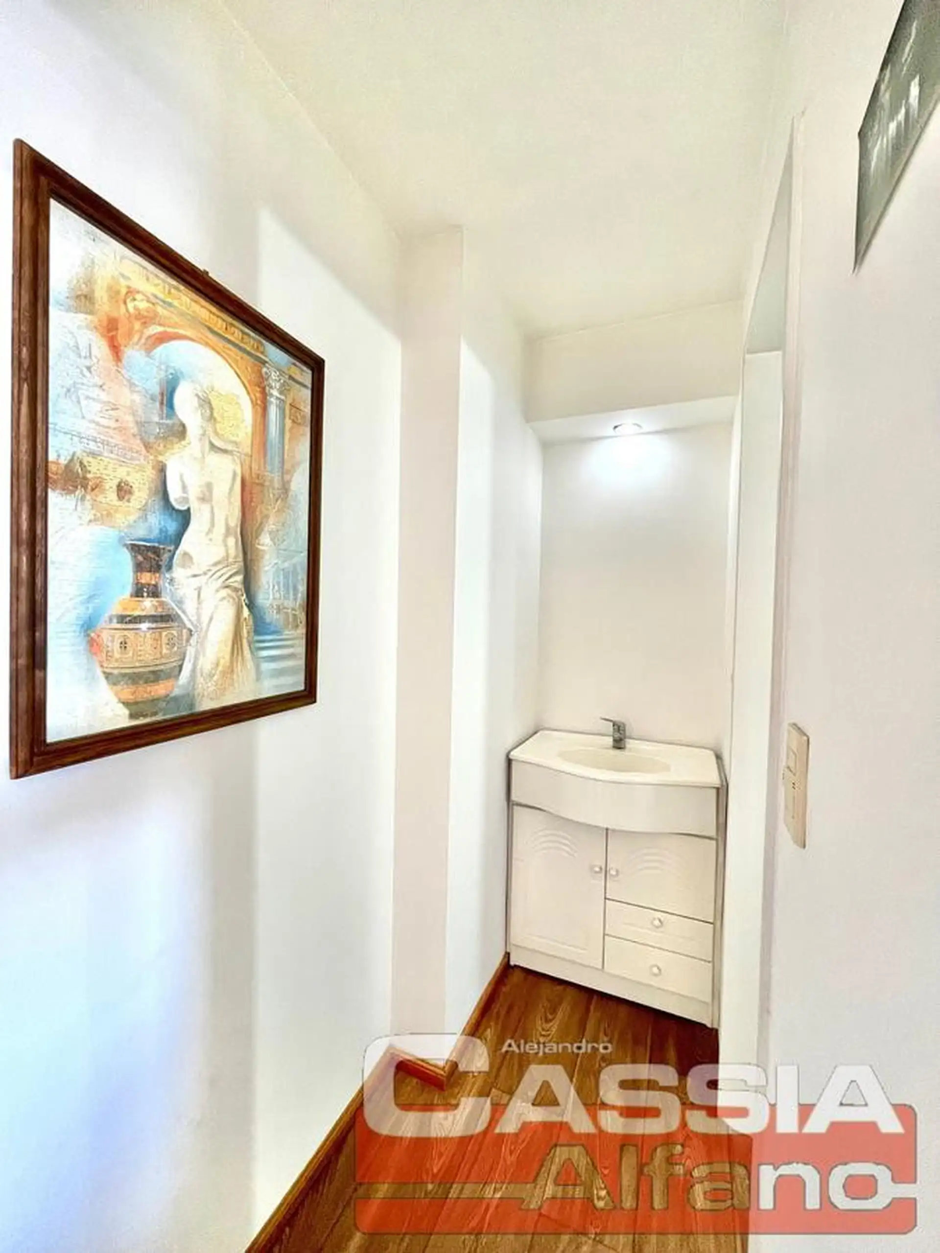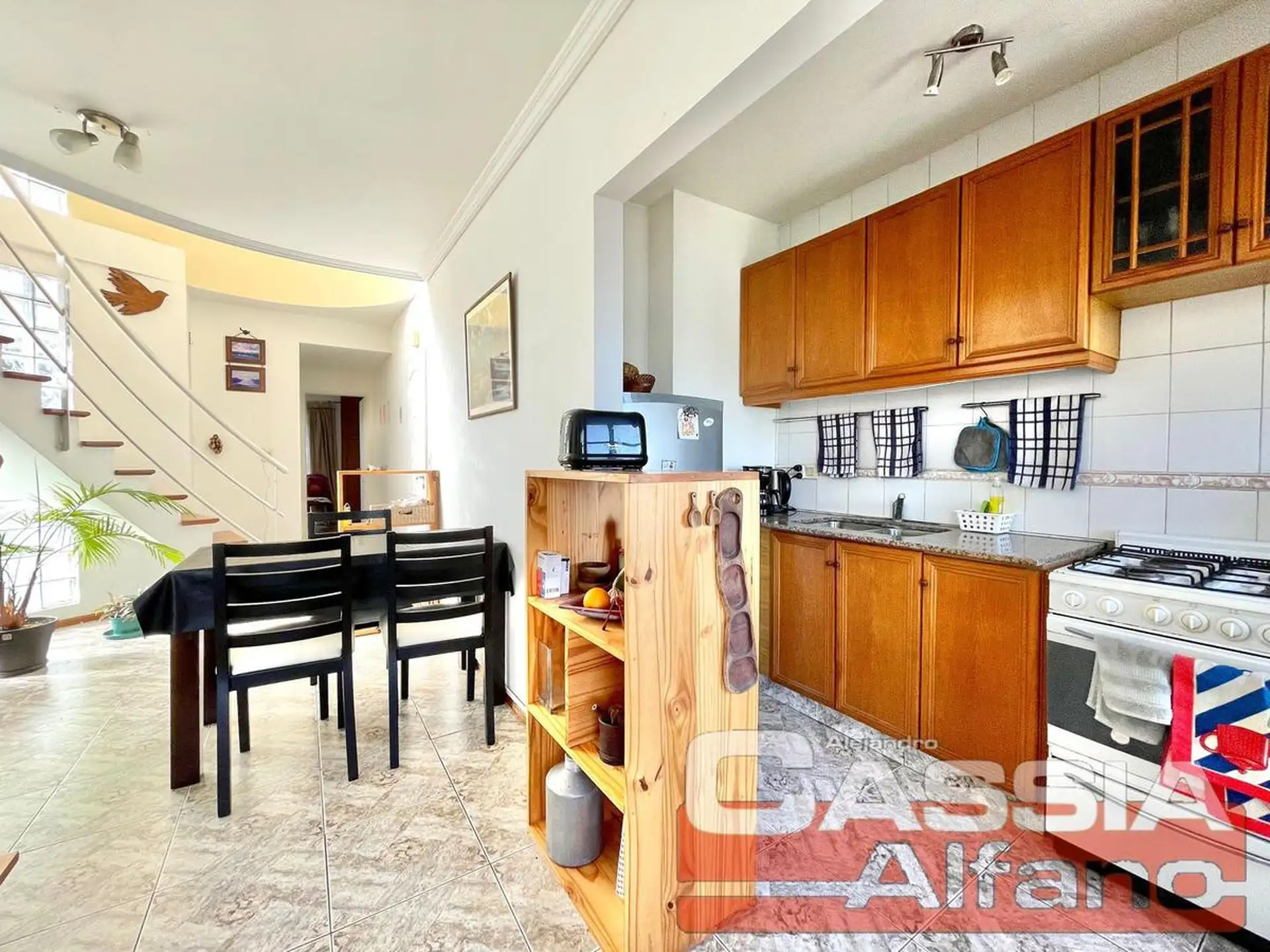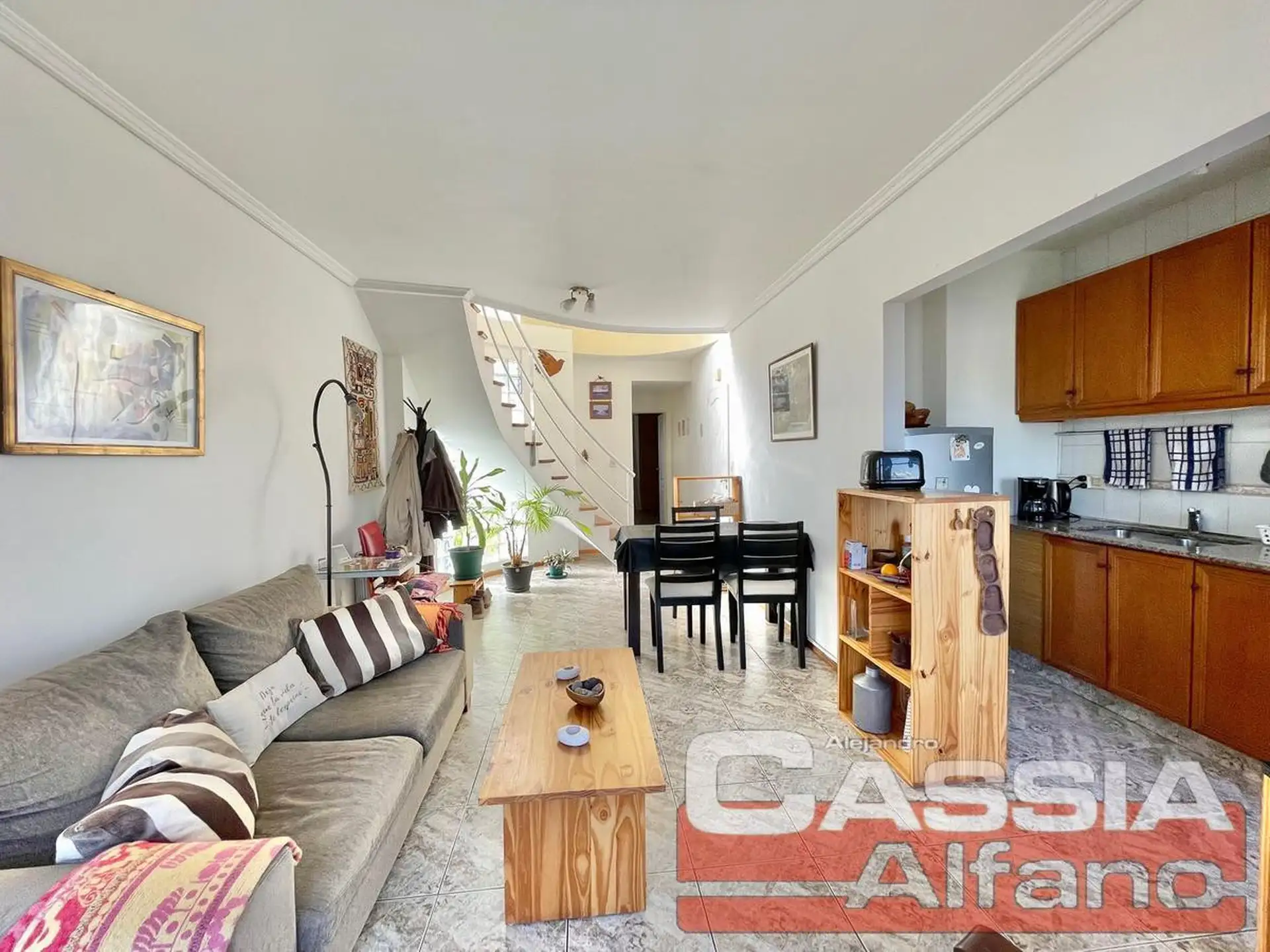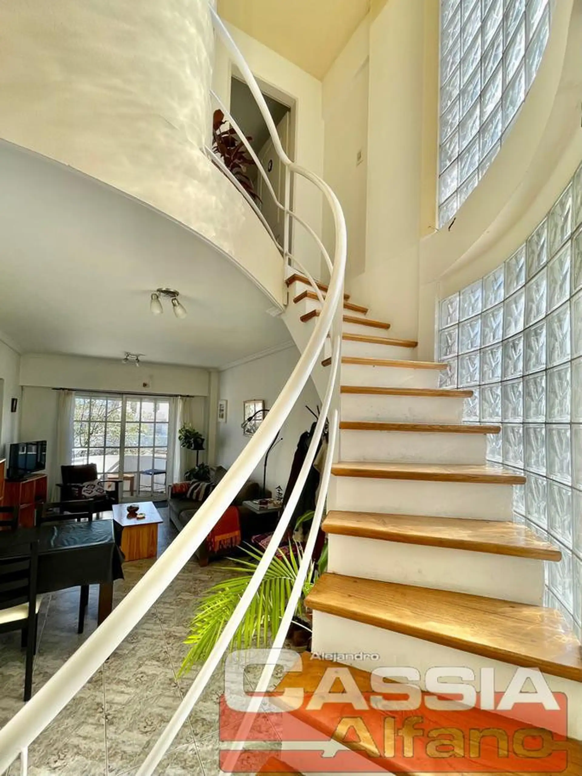 Apartamento duplex de 3 ambientes, de frente e com vista para a frente e os fundos, no 4º andar com elevador. Possui vaga de garagem fixa e descoberta na planta baixa, incluída no valor do aluguel, além de varanda-terraço e escadas de madeira. Inclui living-comedor com piso cerâmico, cozinha semi integrada com passaplato e armários planejados, fogão a gás natural de 4 bocas e forno, caldeira a gás natural com radiadores e espaço para micro-ondas. No piso superior, hall com armário, quarto princi