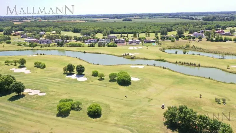 Apartamento de 3 ambientes mobiliado com 2 dormitórios em Estancias Golf, com vista aberta para a cancha de golf, varanda e área de churrasco. A planta inclui amplo living-comedor, cozinha integrada e 1 banheiro completo. Aluguel temporário com valores por mês: novembro USD 2.000, dezembro USD 2.500, janeiro USD 2.500 e fevereiro USD 2.000.
