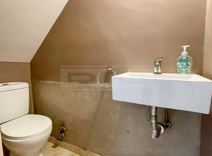Unidade em PH em Martínez com 3 ambientes e 85 m² cobertos. O acesso é pela rua, por um pequeno pátio frontal. No piso térreo há um hall com lavabo e um espaço versátil que pode ser usado como escritório, sala ou depósito. No piso superior ficam o living com área de jantar, cozinha totalmente equipada sem iintegração parcial com o living por meio de uma barra e 2 dormitórios, além de 2 banheiros completos. A cozinha tem espaço de armazenamento e conexão para lavadora; aquecimento individual por