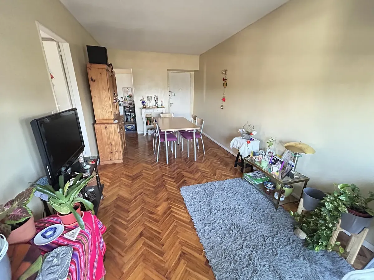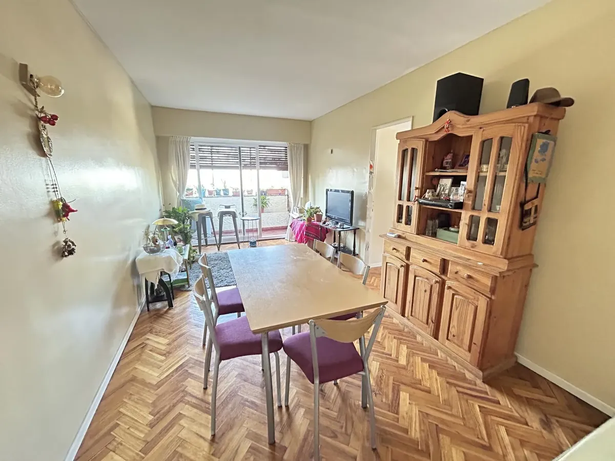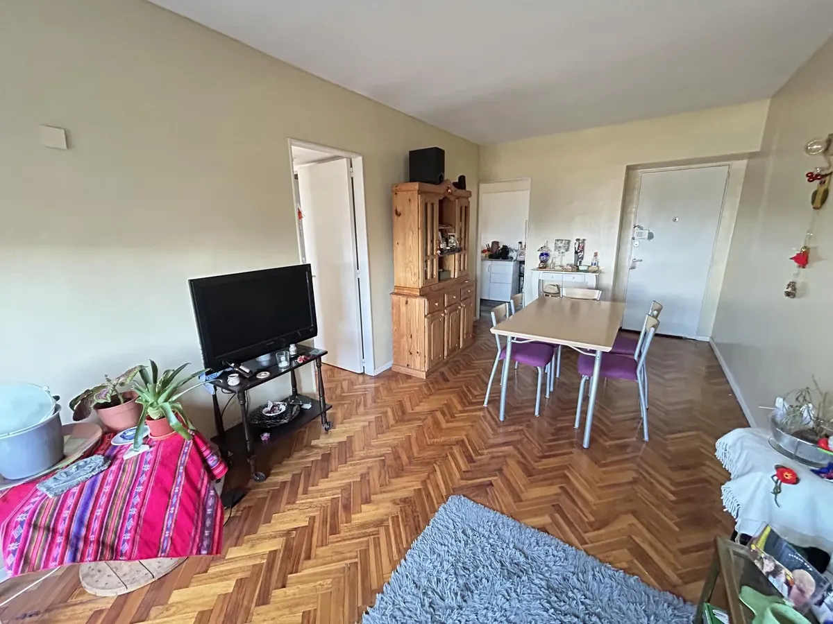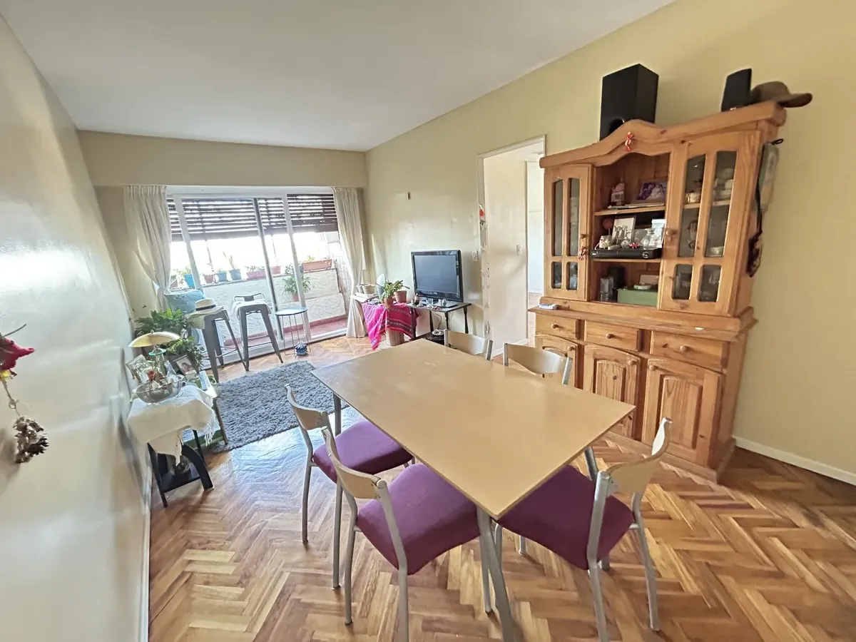Apartamento de três ambientes no centro de Martínez, em prédio com encarregado. O imóvel tem ampla sala de estar e jantar com piso de madeira e acesso à varanda. Cozinha independente, com área de serviço separada, além de 2 dormitórios com armários e 1 banheiro completo. Condomínio de $165.000 (março de 2026), com AySA incluído. As medidas e valores informados são aproximados.