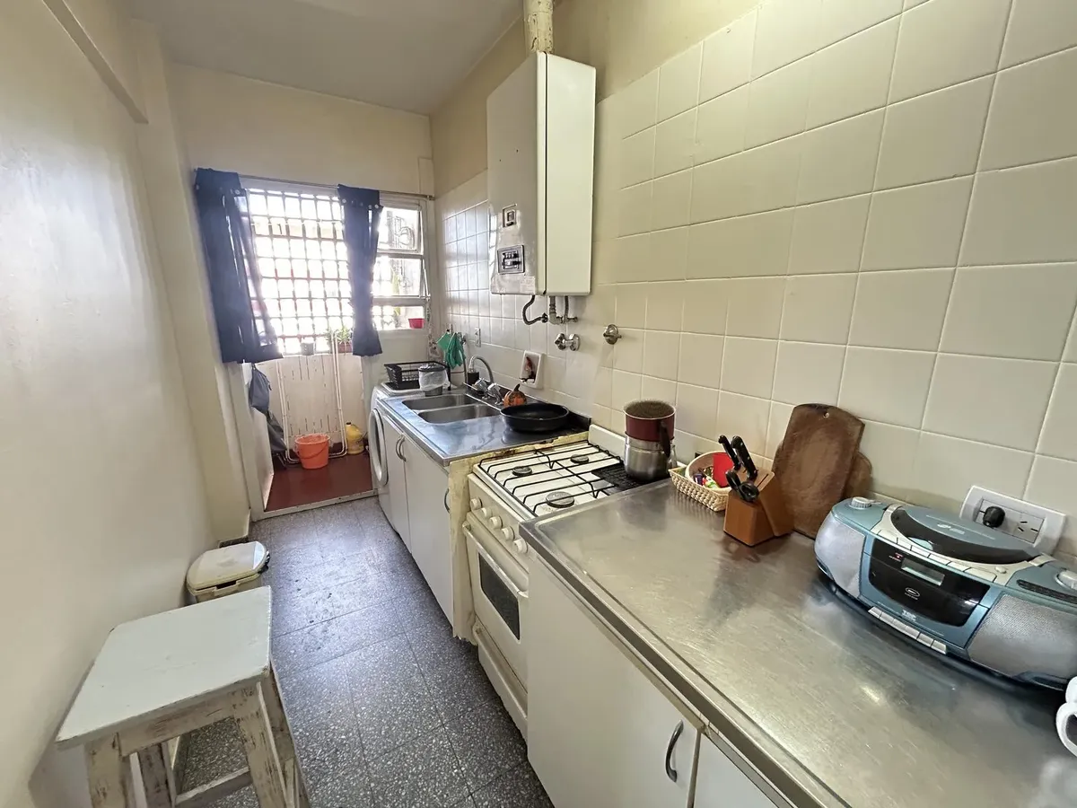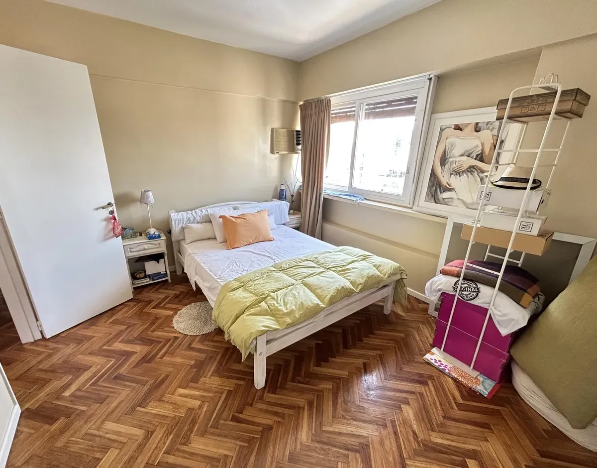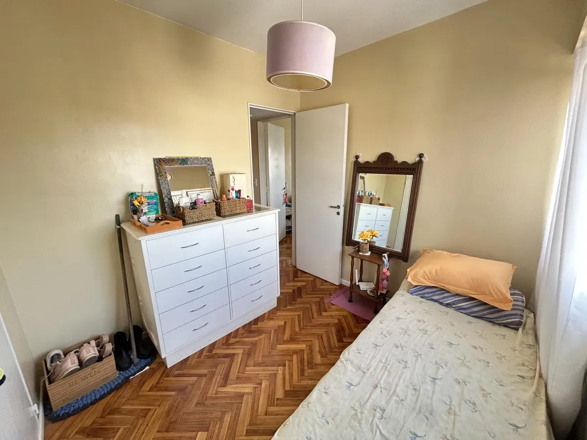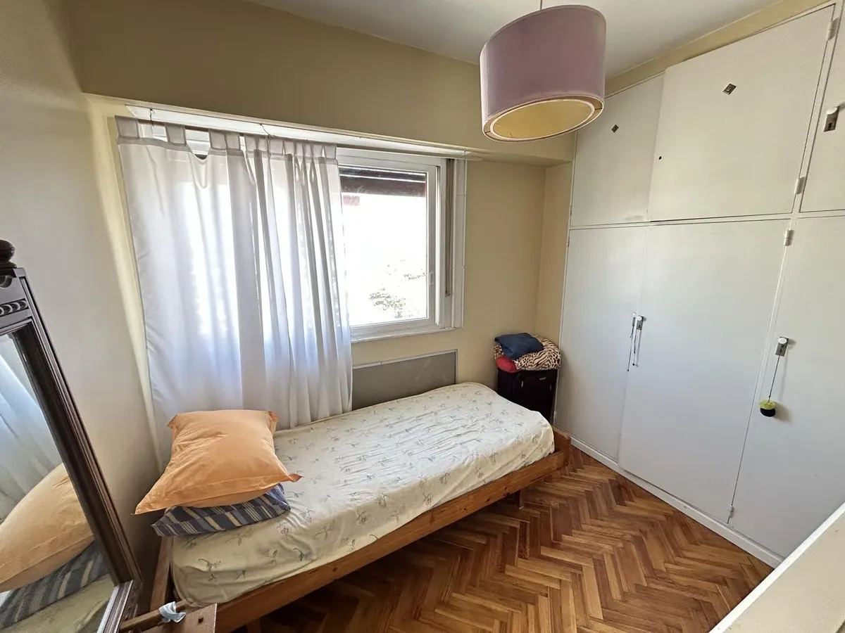 Apartamento de três ambientes no centro de Martínez, em prédio com encarregado. O imóvel tem ampla sala de estar e jantar com piso de madeira e acesso à varanda. Cozinha independente, com área de serviço separada, além de 2 dormitórios com armários e 1 banheiro completo. Condomínio de $165.000 (março de 2026), com AySA incluído. As medidas e valores informados são aproximados.