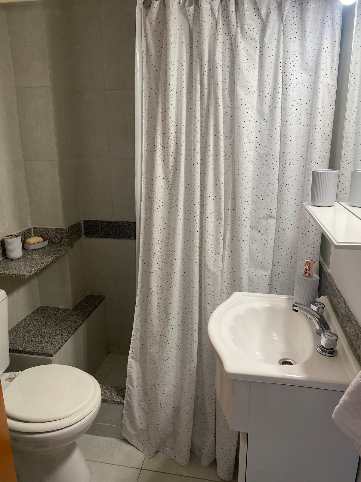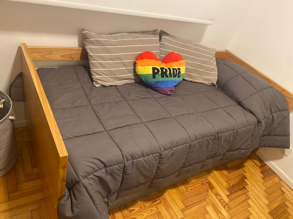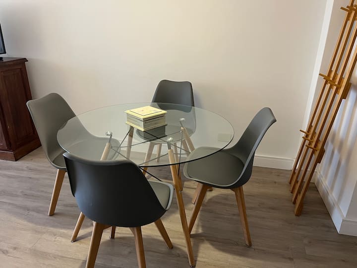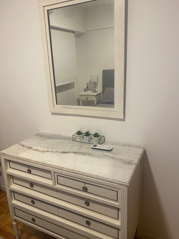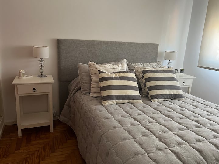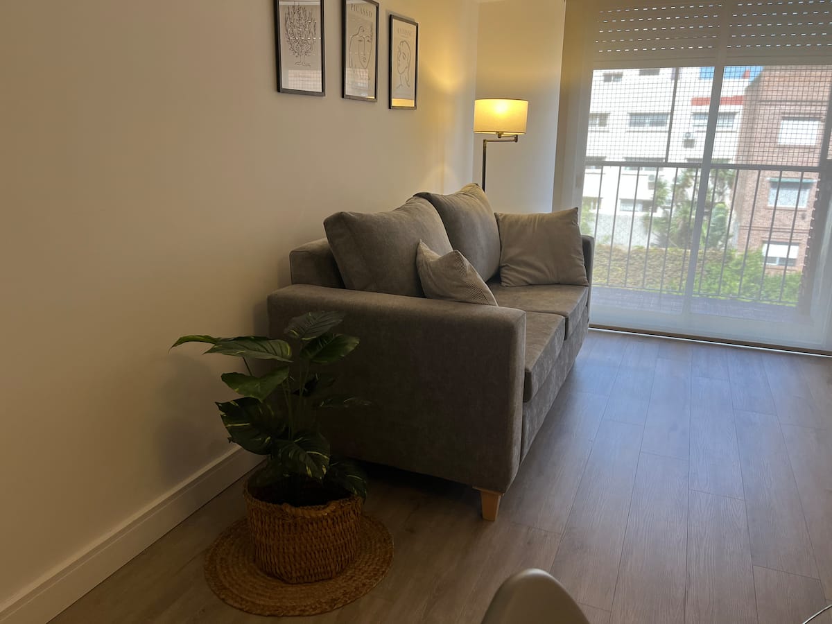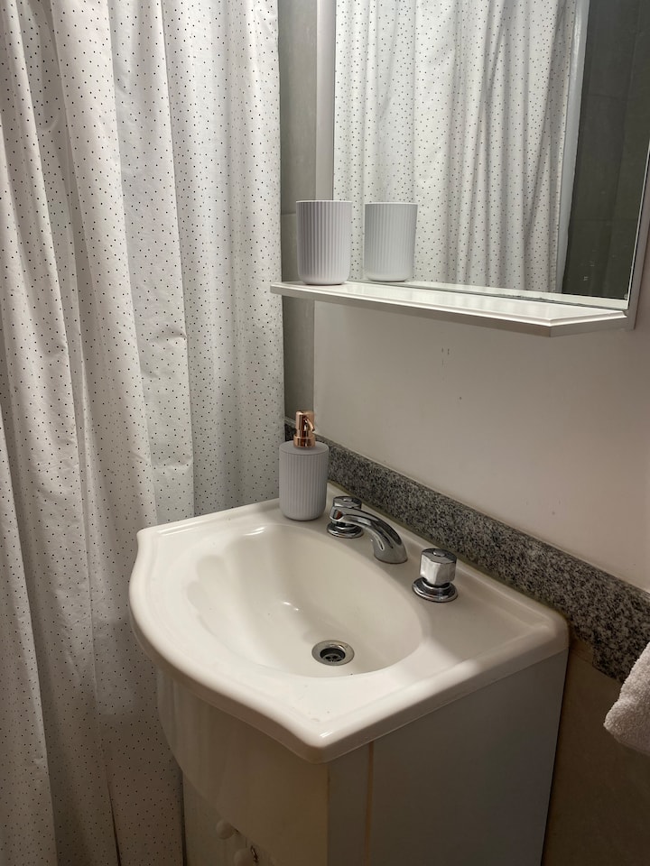 Apartamento de 3 ambientes em Martínez, com 2 quartos. É mobiliado e totalmente equipado, com quarto com cama de casal e segundo quarto com escrivaninha e cama de solteiro. A cozinha é totalmente equipada, com lavanderia que inclui máquina de lavar. Há Netflix e TV online.
