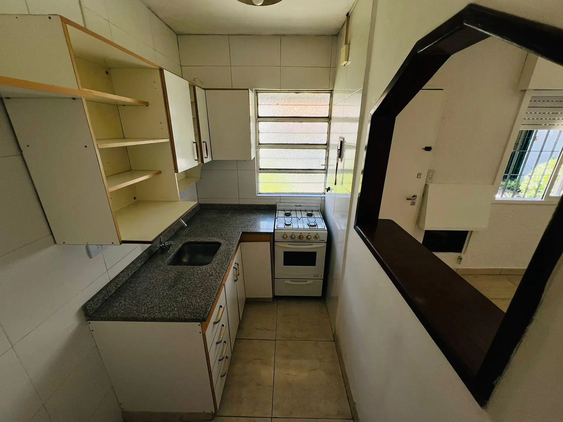 PH de 3 ambientes para alugar em Martínez, com living e sala de jantar, cozinha com passa-pratos, 2 dormitórios e 1 banheiro completo. A unidade tem um pequeno pátio com área de lavanderia e piso de porcelanato no living, cozinha e banheiro, além de piso de madeira flutuante nos dormitórios. Não aceita animais de estimação; contrato de 2 anos e reajuste trimestral pelo IPC; aceita seguro fiança.
