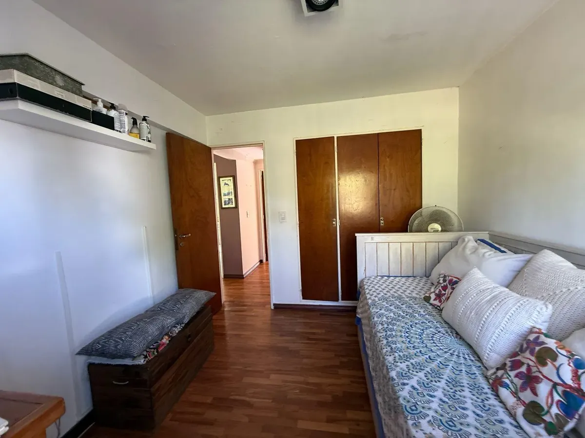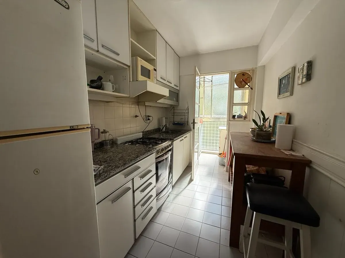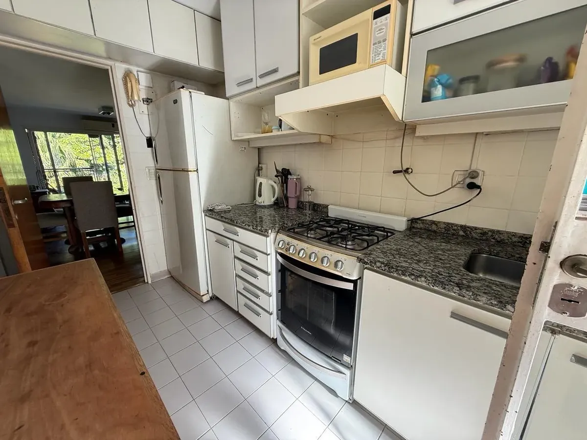 Apartamento de três ambientes para alugar, em Acassuso, no 2º andar com acesso por escada. Unidade de fundos, com varanda. Possui sala de estar e jantar, 2 dormitórios com armários embutidos até o teto, banheiro completo reformado e cozinha em bom estado. Conta ainda com área de serviço e vaga de garagem coberta no edifício.
