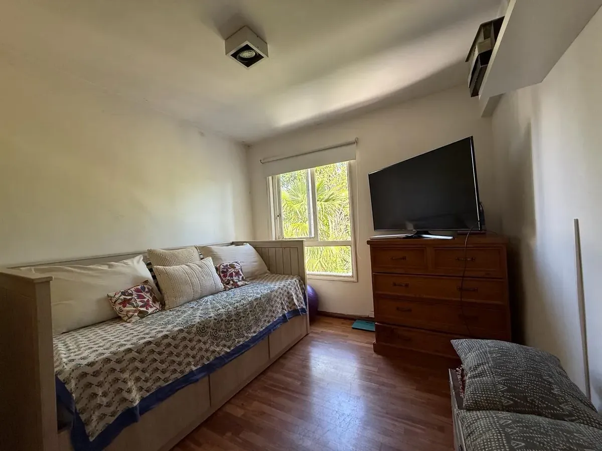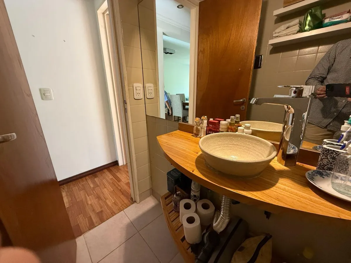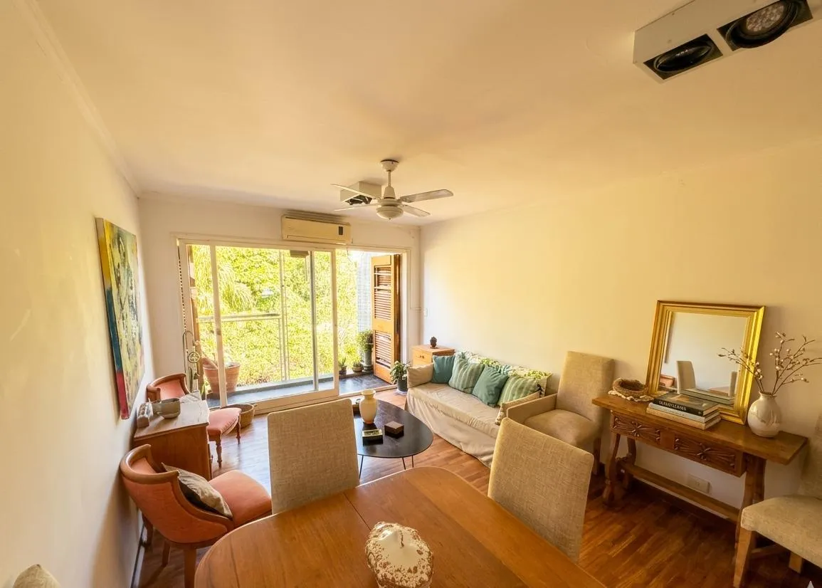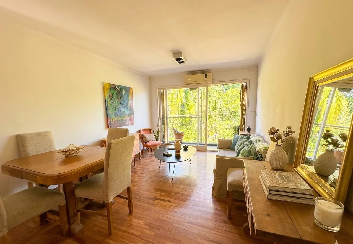 Apartamento de três ambientes para alugar, em Acassuso, no 2º andar com acesso por escada. Unidade de fundos, com varanda. Possui sala de estar e jantar, 2 dormitórios com armários embutidos até o teto, banheiro completo reformado e cozinha em bom estado. Conta ainda com área de serviço e vaga de garagem coberta no edifício.