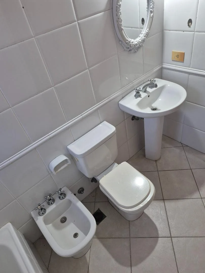 Apartamento de 3 ambientes com estúdio em San Isidro, com vaga de garagem coberta. O hall de entrada tem lavabo, e a sala de estar e jantar tem uma janela voltada para a varanda. Há cozinha com área de lavanderia tipo corredor; dormitórios com armários embutidos e janelas para o jardim, além de banheiro completo com banheira. Fica a 4 quadras de Centenario e a 1 quadra da Plaza Castiglia.