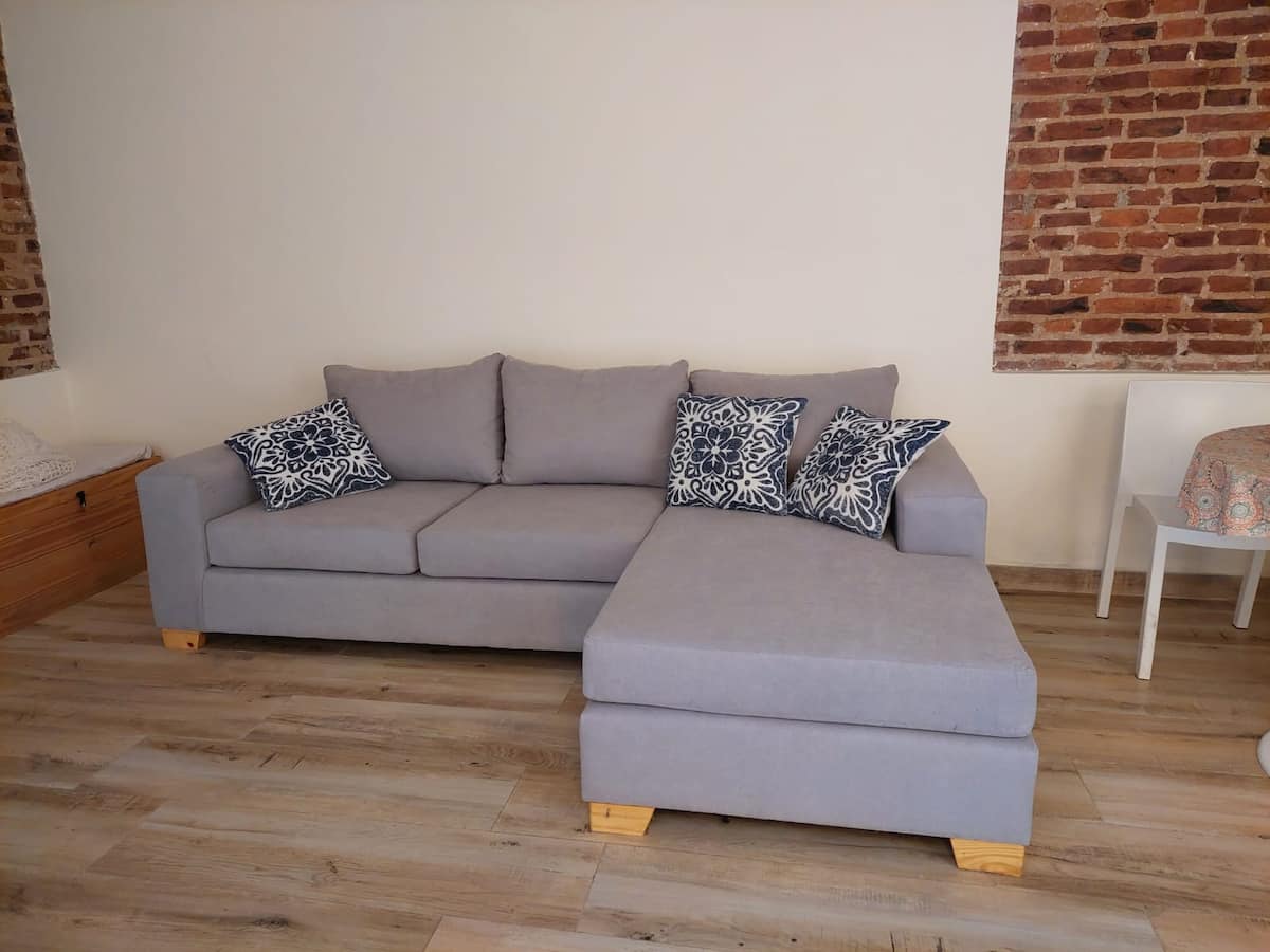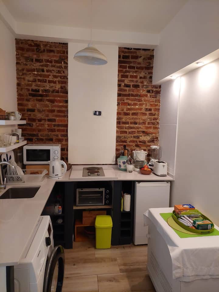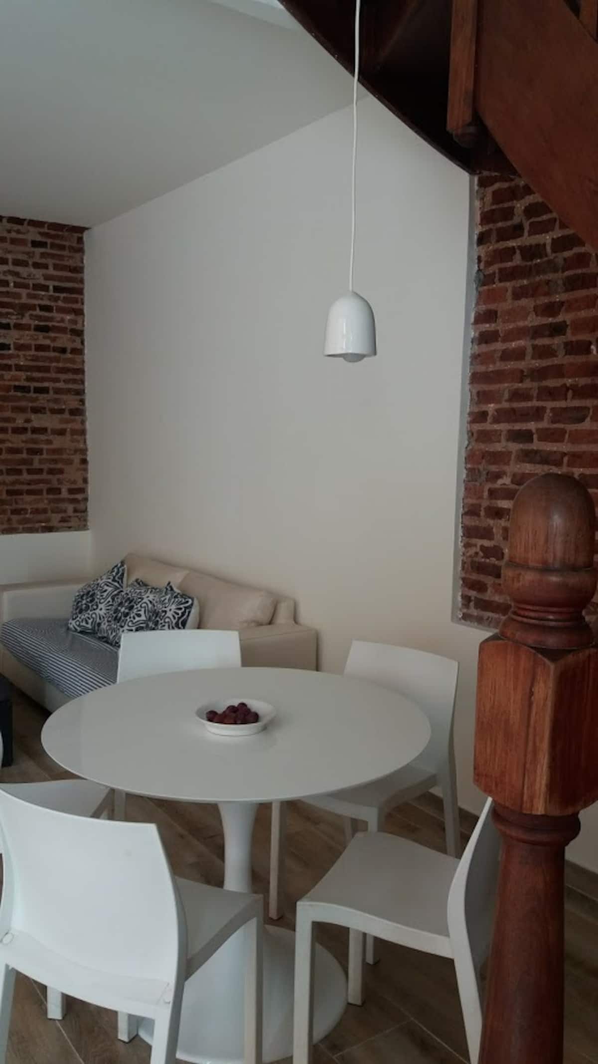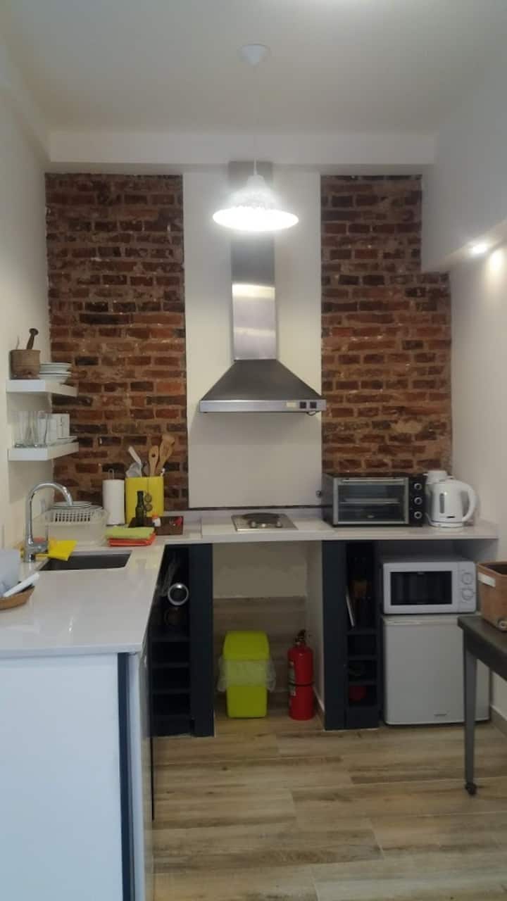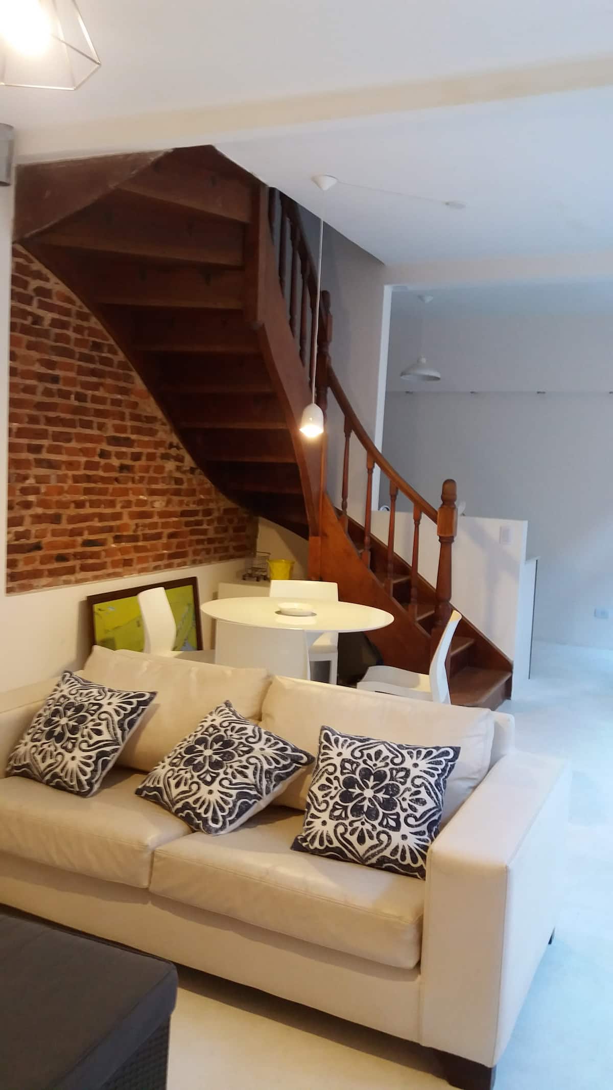 Apartamento com 2 quartos em dois andares, com pátio privativo e terraço. O piso térreo integra cozinha e sala, com vista para o pátio. O pátio tem cerca de 20 m² e o terraço é privativo e fica ao lado do quarto principal. Há Wi-Fi de 24 megabytes; canais a cabo e lock box. No apartamento há cafeteira, micro-ondas, forno elétrico e torradeira. São disponibilizados café, chá, açúcar, adoçante e leite em pó para preparo de chocolates. No quarto principal há máquina Nespresso com kit de cápsulas. T