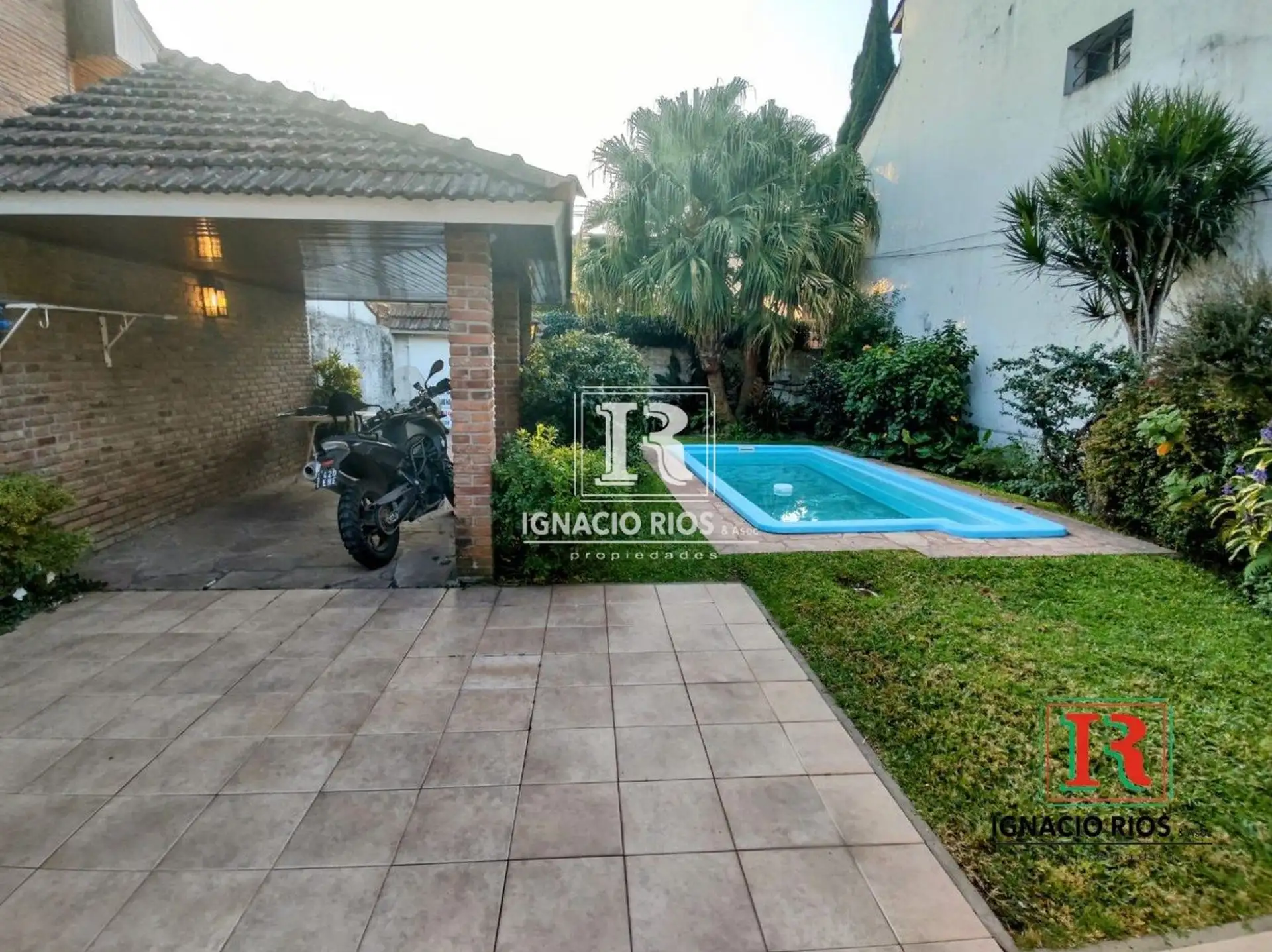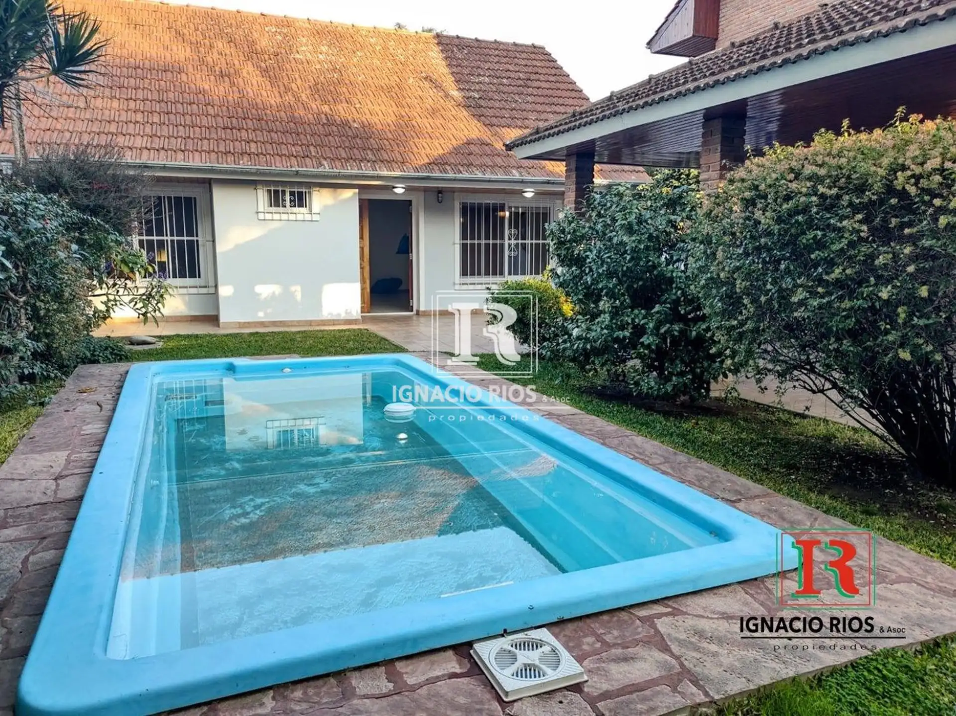 Casa em uma planta para aluguel em Martínez, com 2 dormitórios. Jardim na frente com entrada para 1 carro coberta e espaço para outro com portão automático. Piscina de 5 x 2,5 m com filtro, além de living e sala de jantar integrados à cozinha por uma barra; cozinha com área de refeições diária e ar-condicionado split frio e quente, com conexão para lavarropas. No fundo, jardim, área de churrasco com quincho e um quarto tipo estúdio, além de dormitório principal com banheiro completo e ar-condici