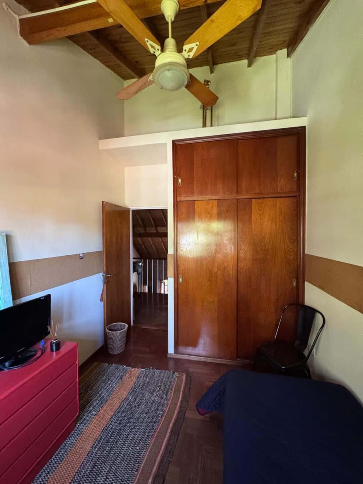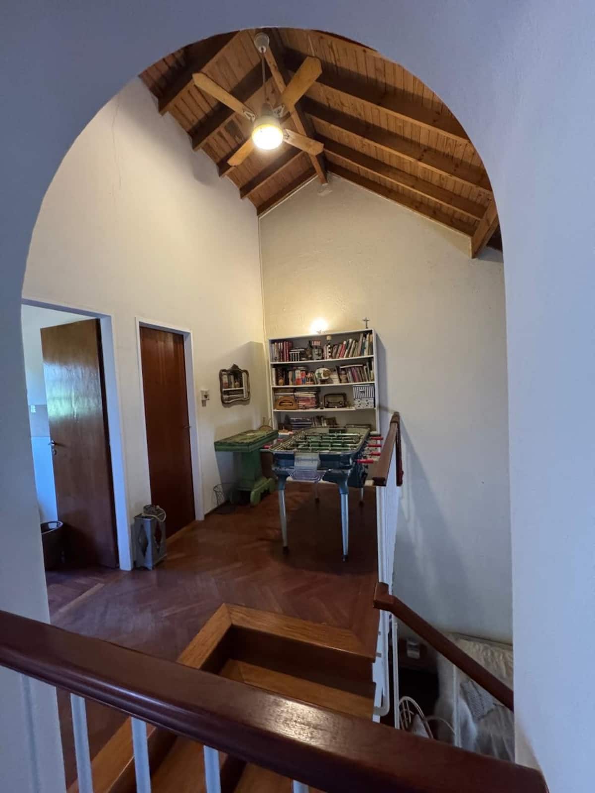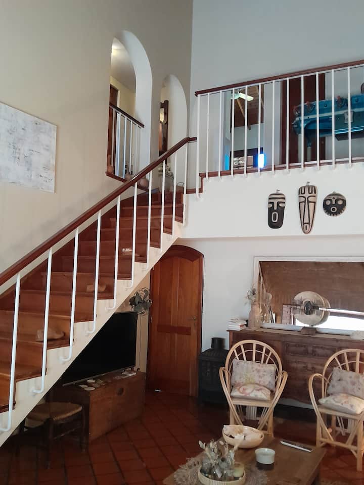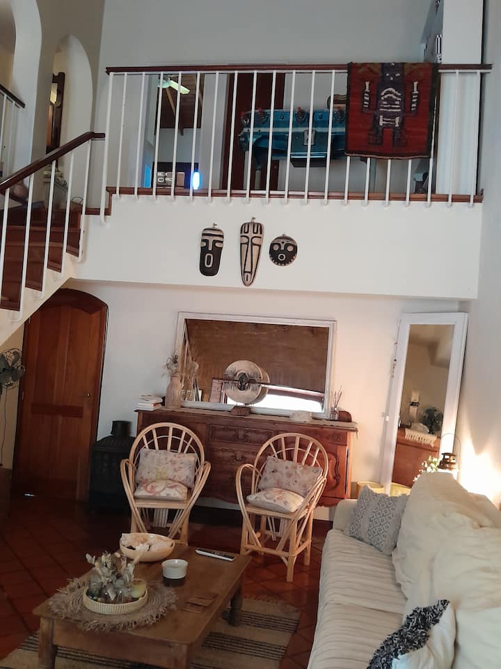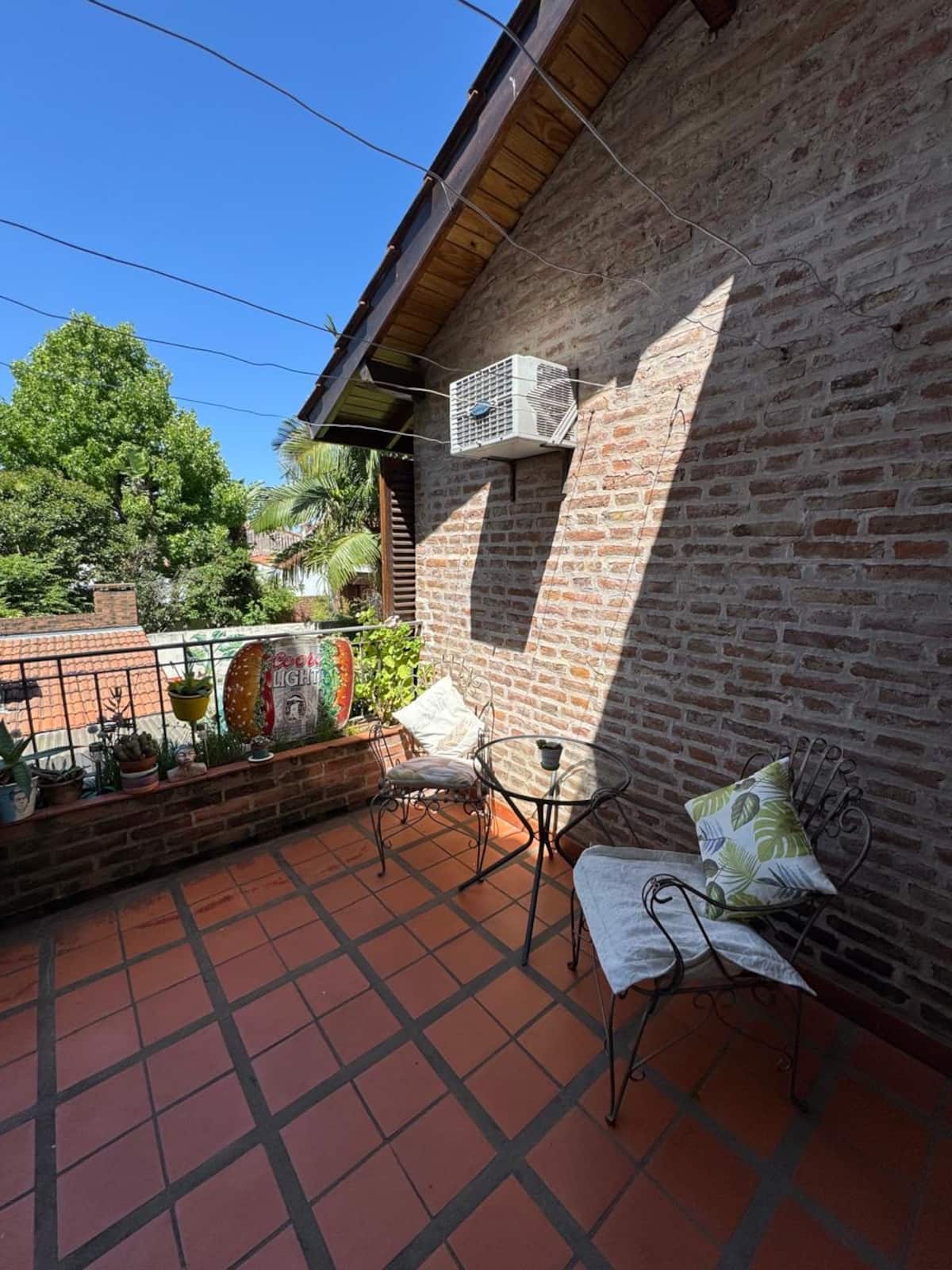 Casa em Martínez com 2 quartos em 2 andares e vaga de garagem. No térreo há sala de estar e sala de jantar. No piso superior há 2 quartos (1 cama de casal e 1 cama de solteiro), banheiro completo, kitchenette e área com mesa de futebol profissional, além de biblioteca e terraço com vista. Há ar-condicionado nos quartos; animais não são permitidos. O acesso é individual, com check-in por portão compartilhado com a hospedagem próxima.
