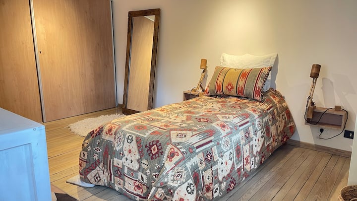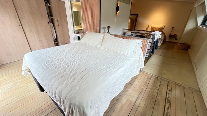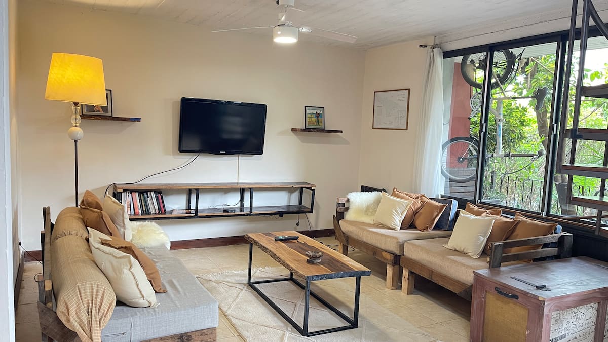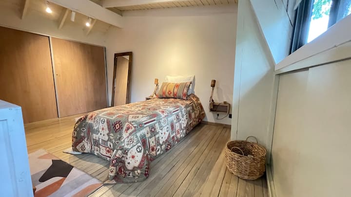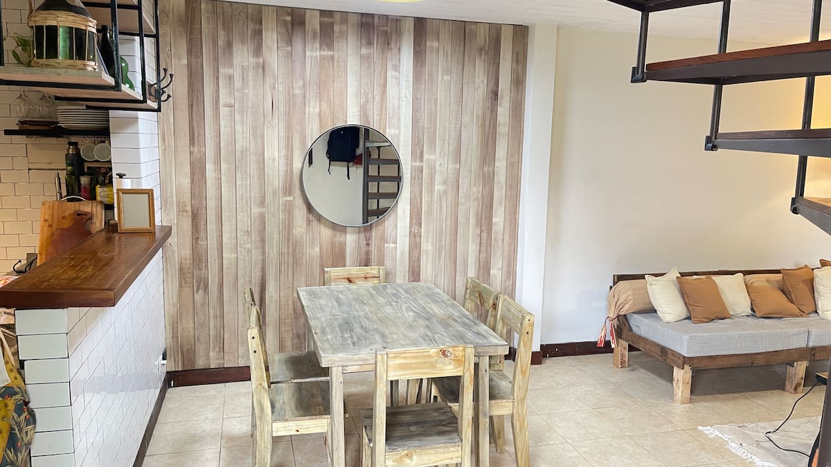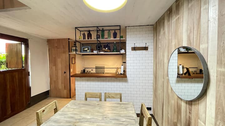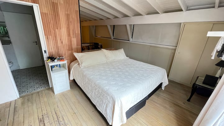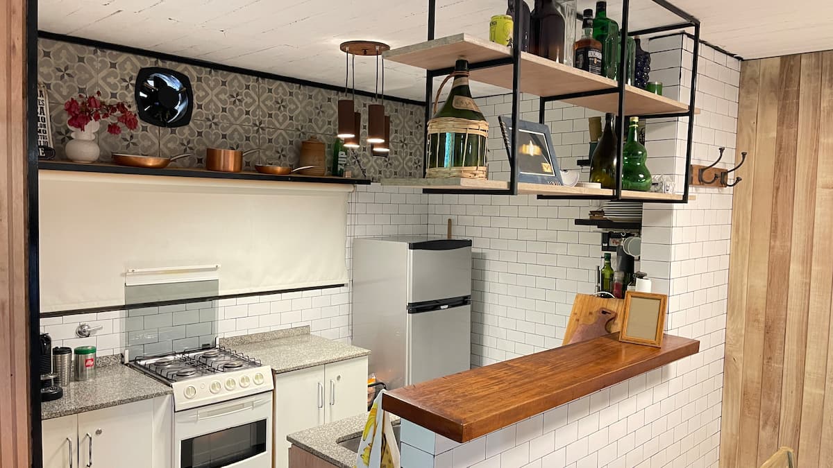 Casa Stud reformada, em dois pavimentos, com sala no piso inferior e cômodos abertos no piso superior. Os ambientes são conectados por banheiro e há terraço com varanda. Tem Wi-Fi, pava elétrica, máquina de café Nesspreso, torradeira, micro-ondas, liquidificador e máquina de lavar. Possui pátio com área de churrasco.