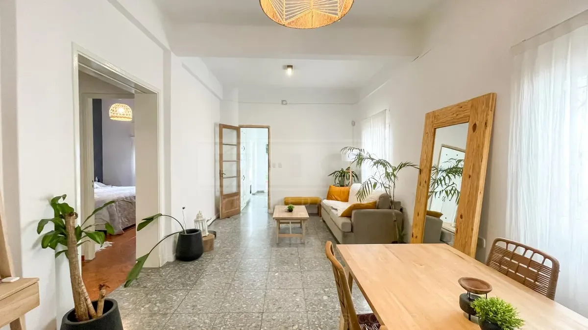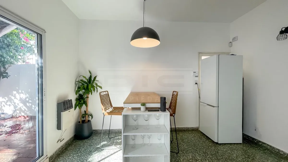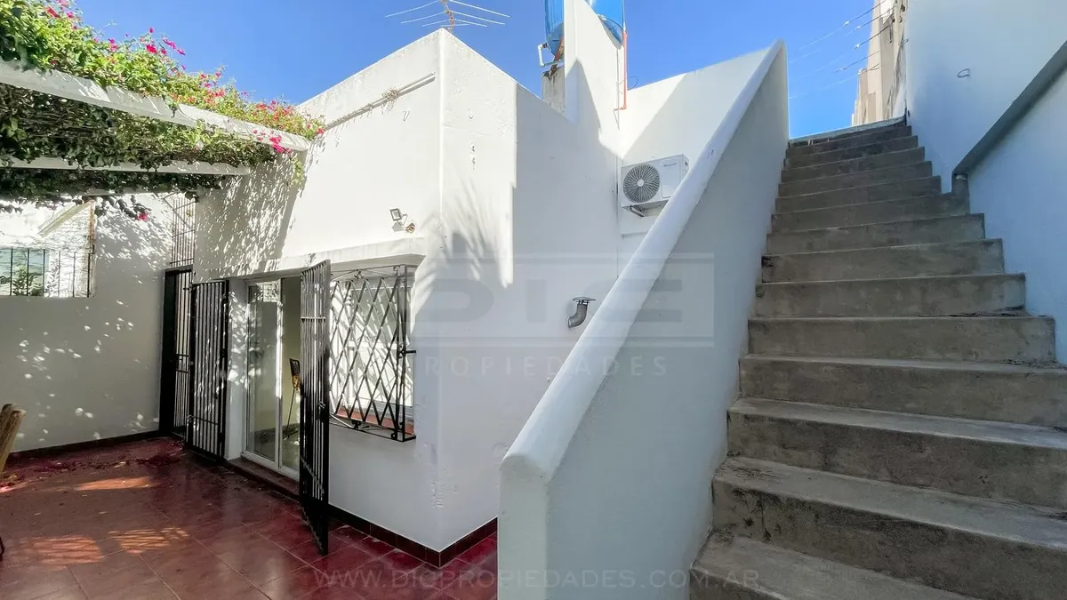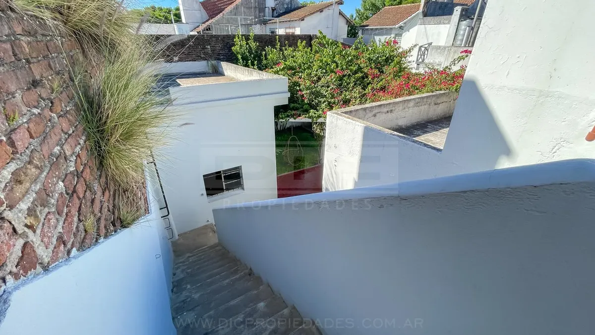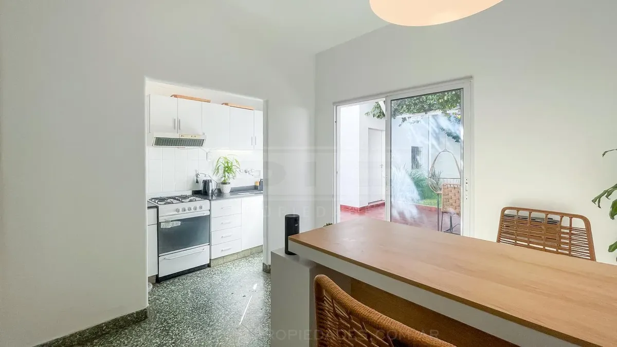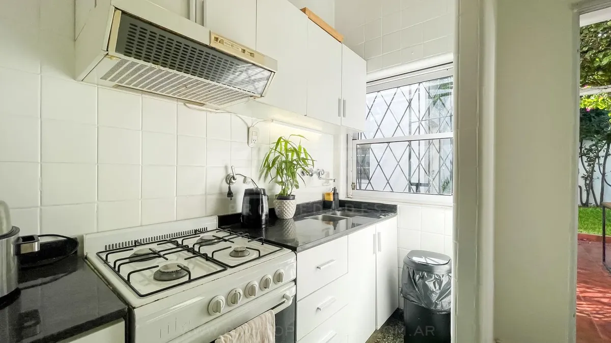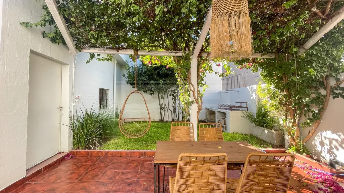 Casa de 3 ambientes em um único piso, em um lote de 8,66 x 25,33, com boa iluminação por sua orientação. Tem jardim na frente, garagem para 2 autos, entrada principal e de serviço, living com área de jantar, 2 dormitórios, banheiro completo, cozinha com armários e espaço para refeições no dia a dia, além de saída para um pátio e jardim com área de churrasco. Inclui área de serviço com lavanderia, depósito que pode ser usado como um ambiente adicional e ampla varanda/terraço.