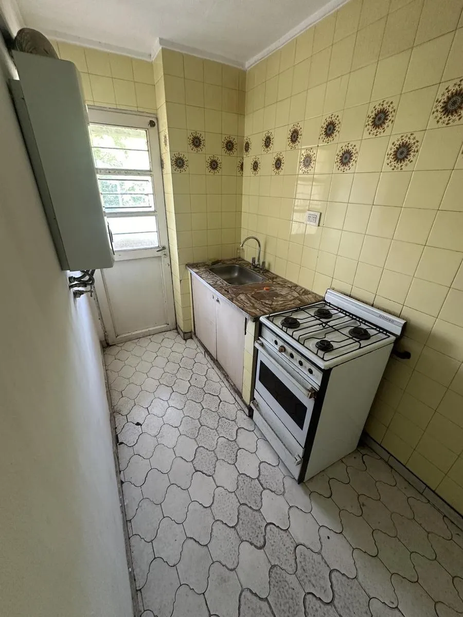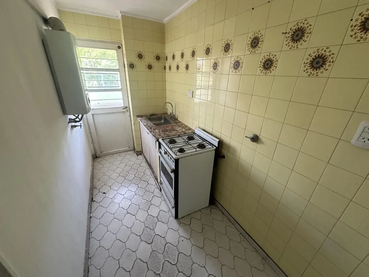Apartamento com 2 dormitórios com armários embutidos, living-comedor e cozinha. A cozinha inclui artefato de cozinha, calefón e móveis sob a pia. Há 1 banheiro e área de lavadero.