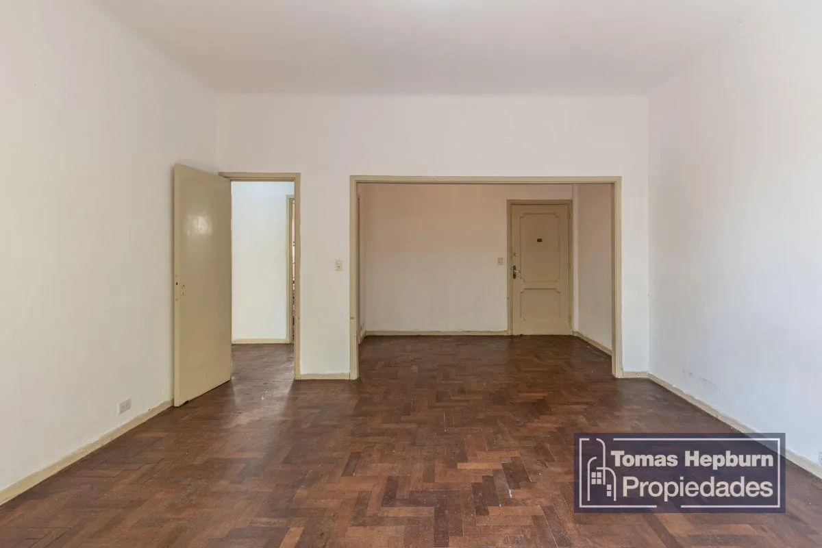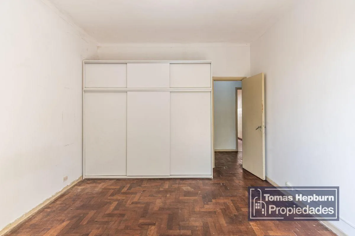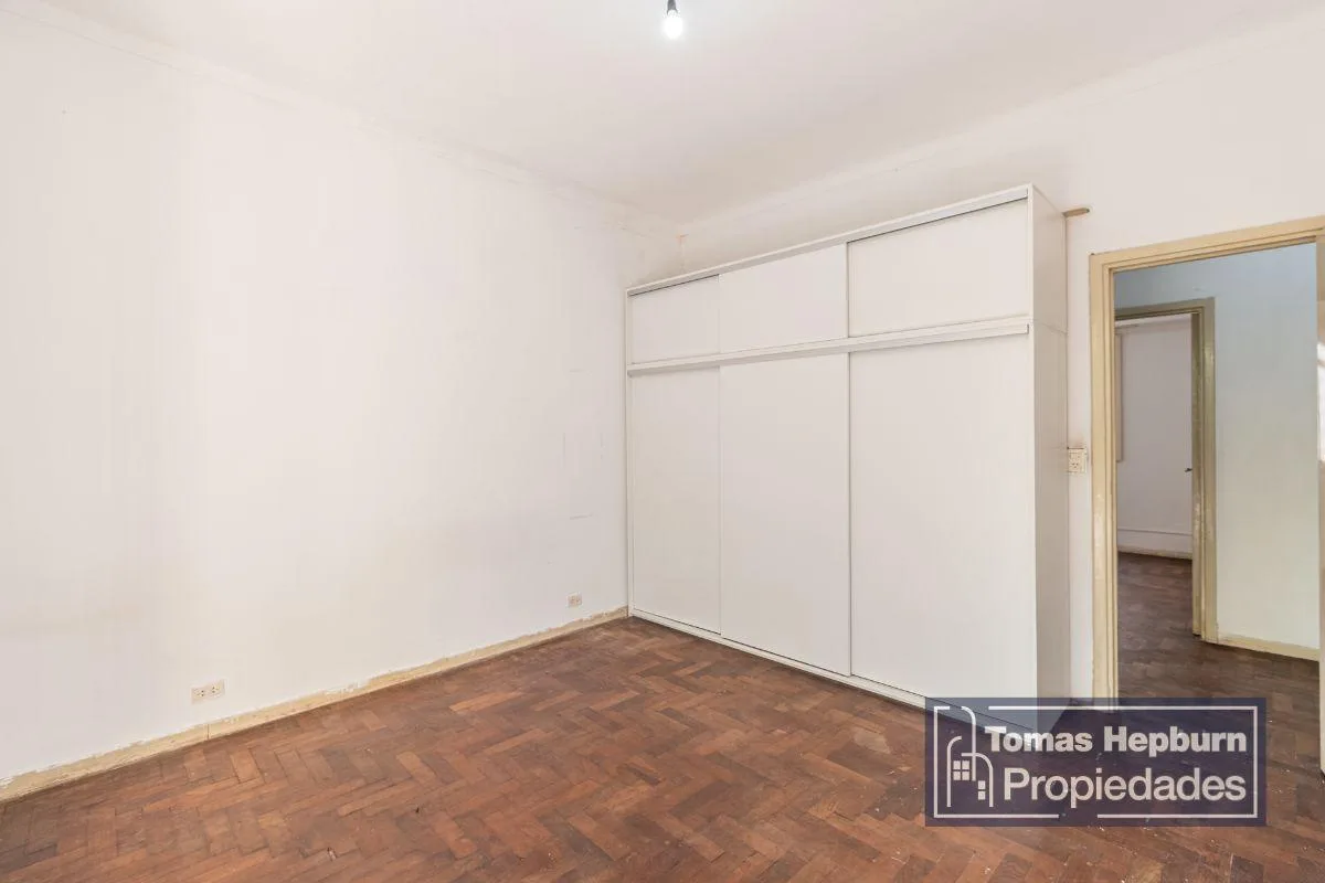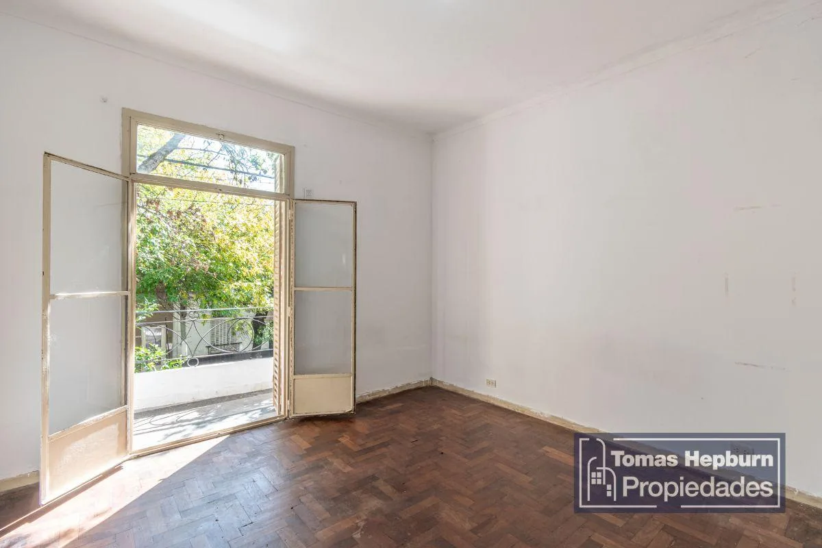 Apartamento semipiso de 3 ambientes com varanda de frente. A unidade fica em um prédio de época com 2 andares e apenas 4 unidades (2 por andar). A entrada é por um primeiro andar por escada; a planta liga hall, sala de estar e jantar, 2 dormitórios, banheiro e cozinha com área de lavanderia separada. Há varanda corrida na frente, acessada pela sala e pelo dormitório principal. O imóvel é 100% elétrico e não tem gás natural; o condomínio é de aproximadamente $90.000, incluindo AYSA. Contrato de 2