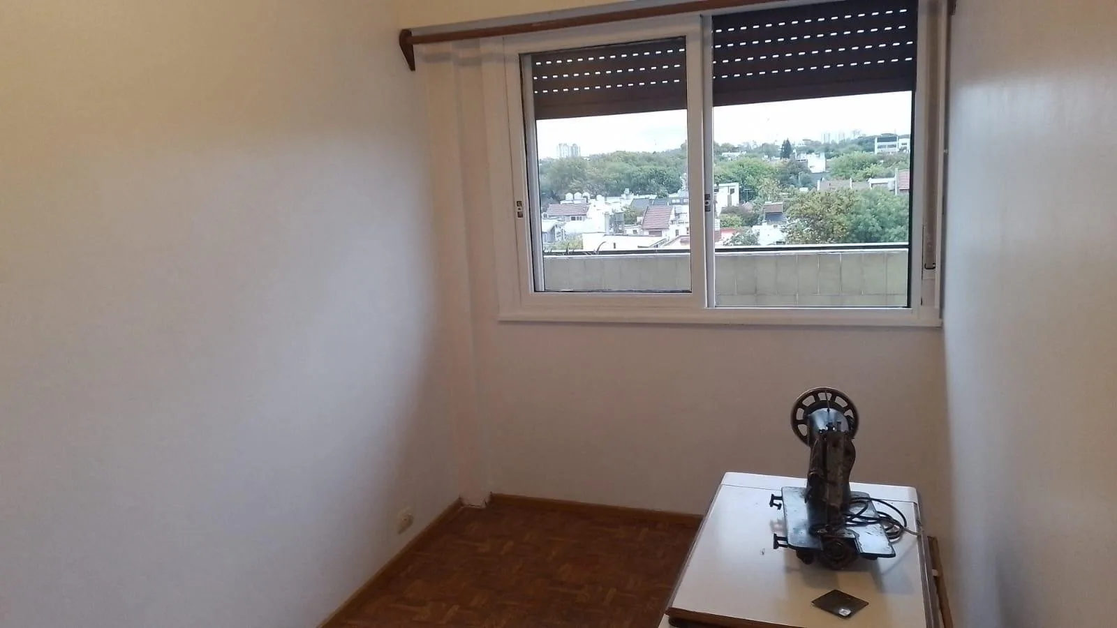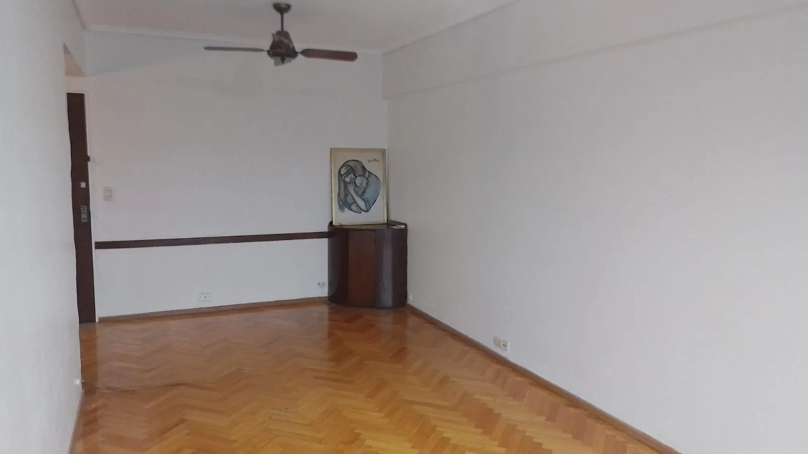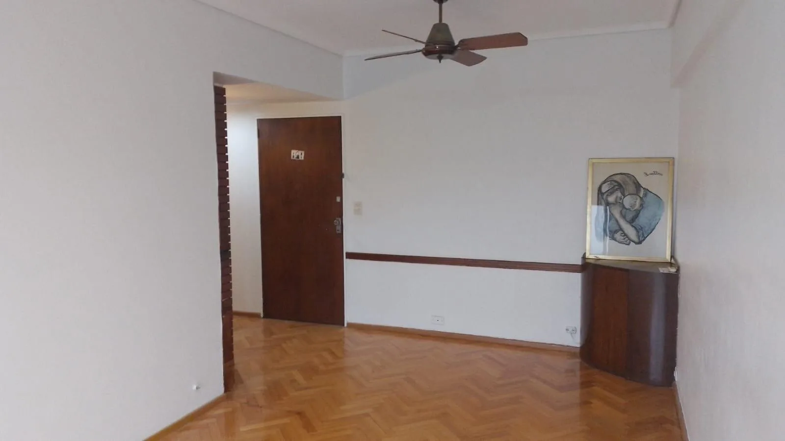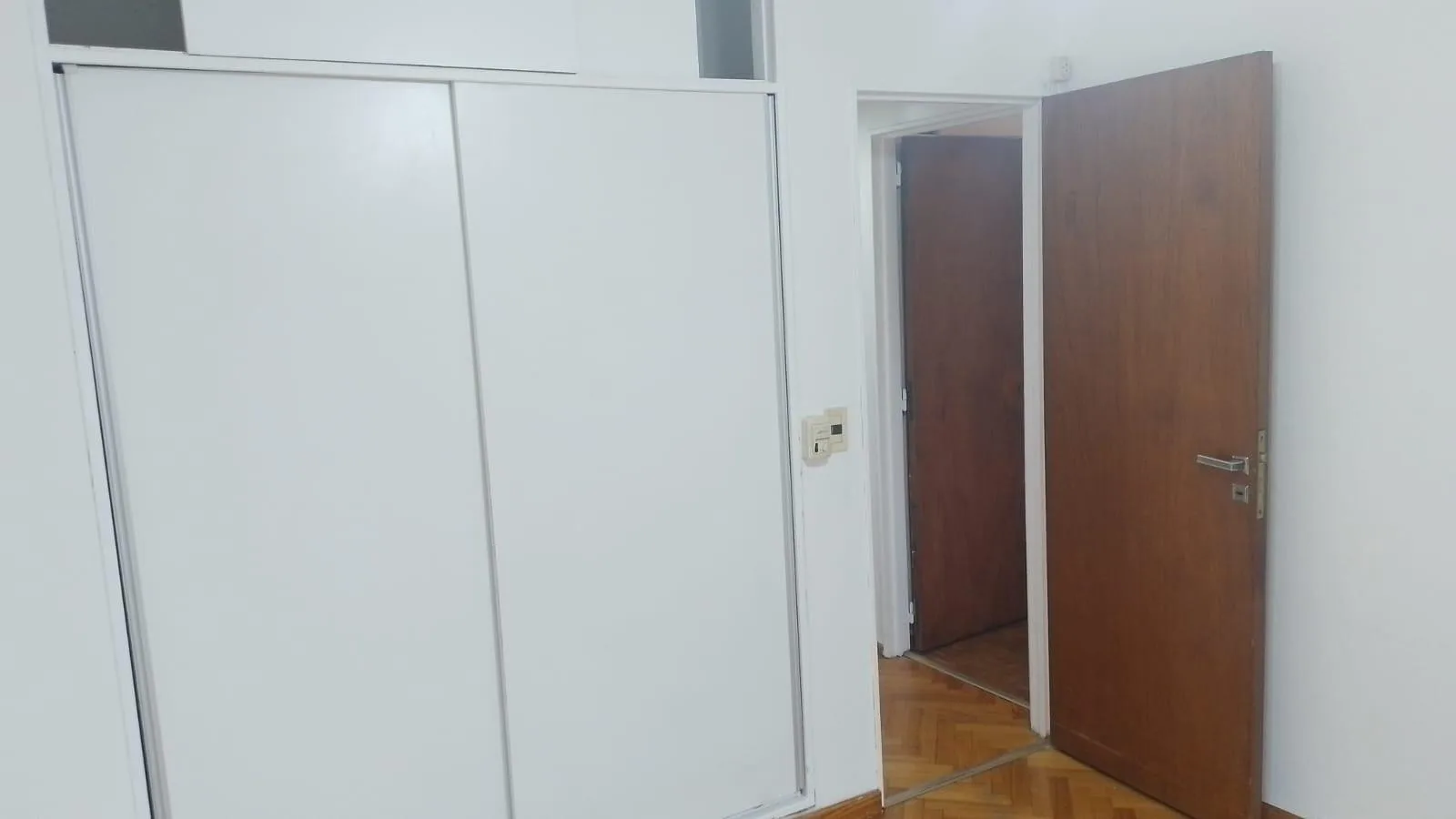 Apartamento de 3 ambientes de frente, com 2 dormitórios e varanda. Fica na Av. Álvarez Jonte, 5400, entre Calle Moliere e Calle Virgilio. O living e sala de jantar mede 5,70 x 2,80, há hall de distribuição de 3,00 x 1,00 e cozinha completa com lavadero independente de 3,80 x 1,70; banheiro completo de 1,80 x 2,20. O dormitório principal tem armários embutidos e piso de parquet (3,30 x 3,00) e o segundo dormitório tem ventilador de teto e piso de parquet (3,70 x 3,00). A varanda mede 7,50 x 1,20.