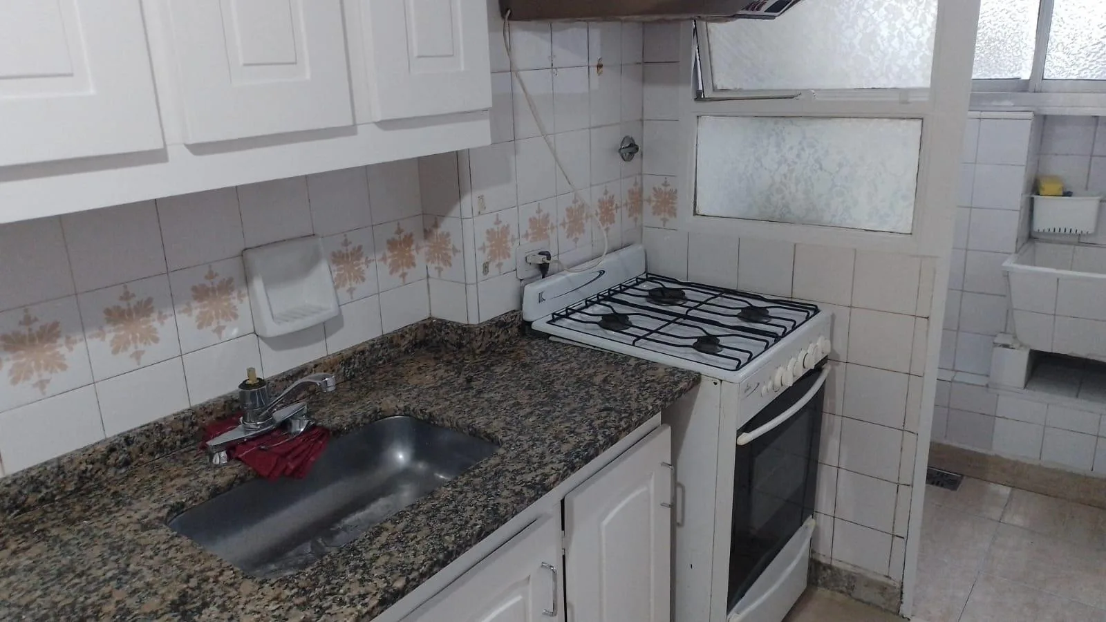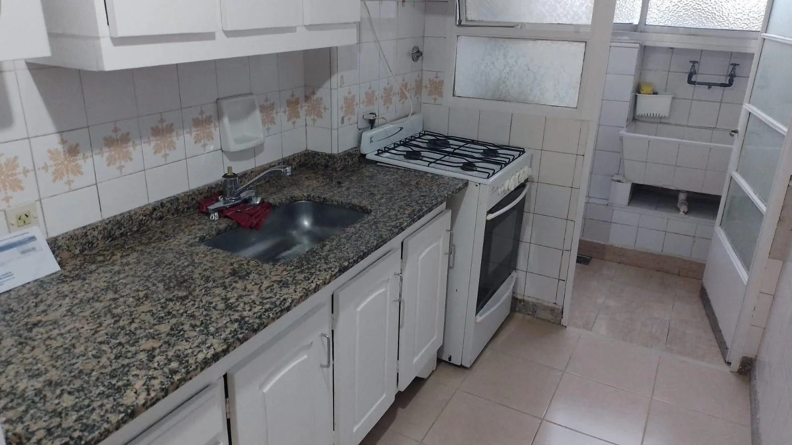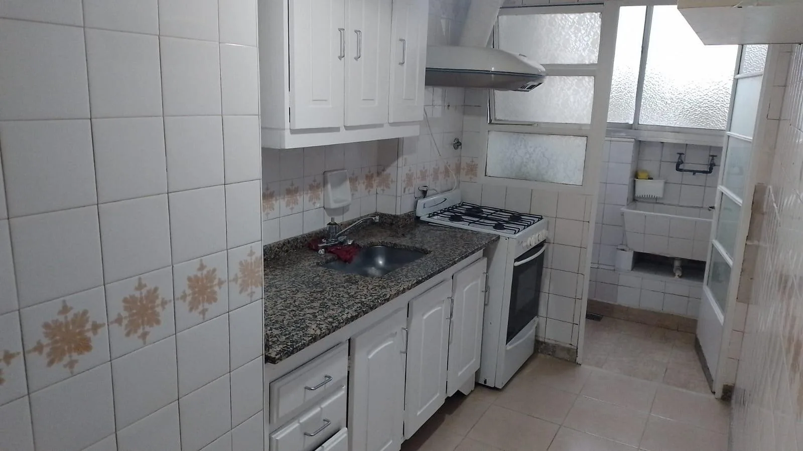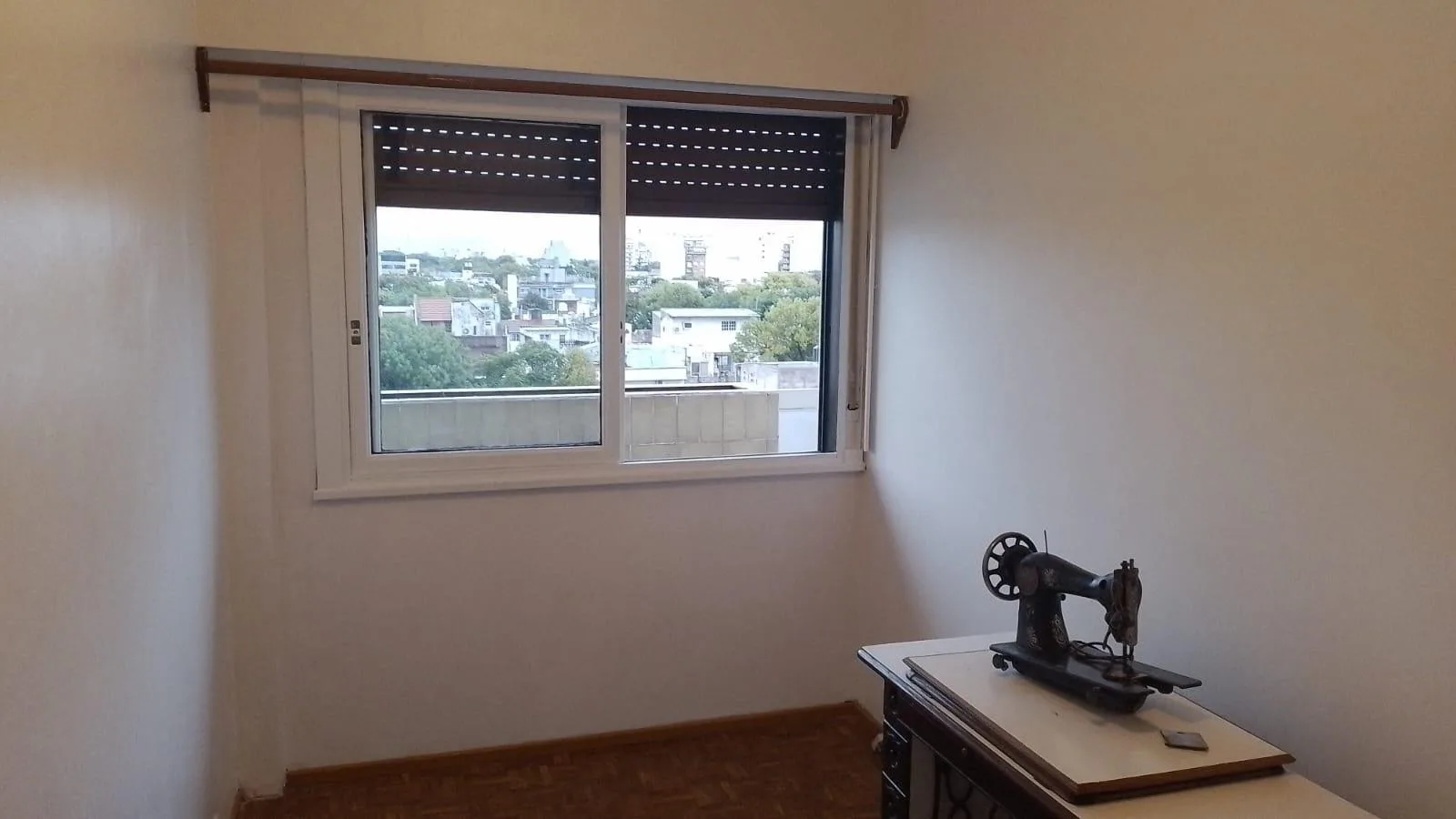 Apartamento de 3 ambientes de frente, com 2 dormitórios e varanda. Fica na Av. Álvarez Jonte, 5400, entre Calle Moliere e Calle Virgilio. O living e sala de jantar mede 5,70 x 2,80, há hall de distribuição de 3,00 x 1,00 e cozinha completa com lavadero independente de 3,80 x 1,70; banheiro completo de 1,80 x 2,20. O dormitório principal tem armários embutidos e piso de parquet (3,30 x 3,00) e o segundo dormitório tem ventilador de teto e piso de parquet (3,70 x 3,00). A varanda mede 7,50 x 1,20.