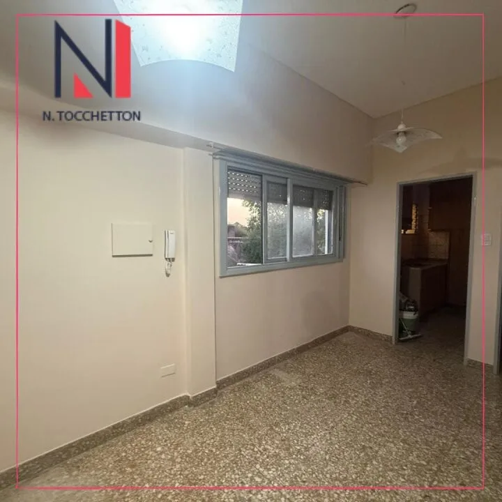 Apartamento de 3 ambientes em Castelar, Morón, no 1º andar, com living, cozinha com área de refeições, 2 quartos e 1 banheiro completo. Há varanda contínua com acesso pelo quarto e pelo living, além de porta principal e de serviço. No segundo nível, conta com terraço privado para área de varal e banheiro com área de lavanderia. Serviços individuais de luz e gás. São 2 unidades no prédio, com acesso por escada compartilhado e porta de entrada compartilhada. Regras de locação: garantia por proprie